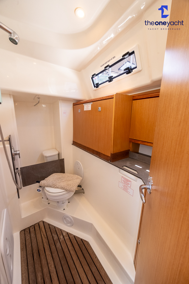 The Bavaria 33 Cruiser “Calypso” offers a cleverly designed and highly practical two-cabin layout that maximises comfort and usability within a compact cruising platform. Accommodation includes two spacious double cabins, making her ideal for couples, small families, or guests, while the bright saloon provides a welcoming seating and dining area with excellent headroom and natural light throughout. A well-appointed galley and practical chart table/navigation station ensure comfort and convenience for longer stays aboard, while the single heads compartment with shower provides all essential amenities for comfortable Mediterranean cruising. Her layout offers an impressive balance of interior volume and liveability for a yacht of her size.