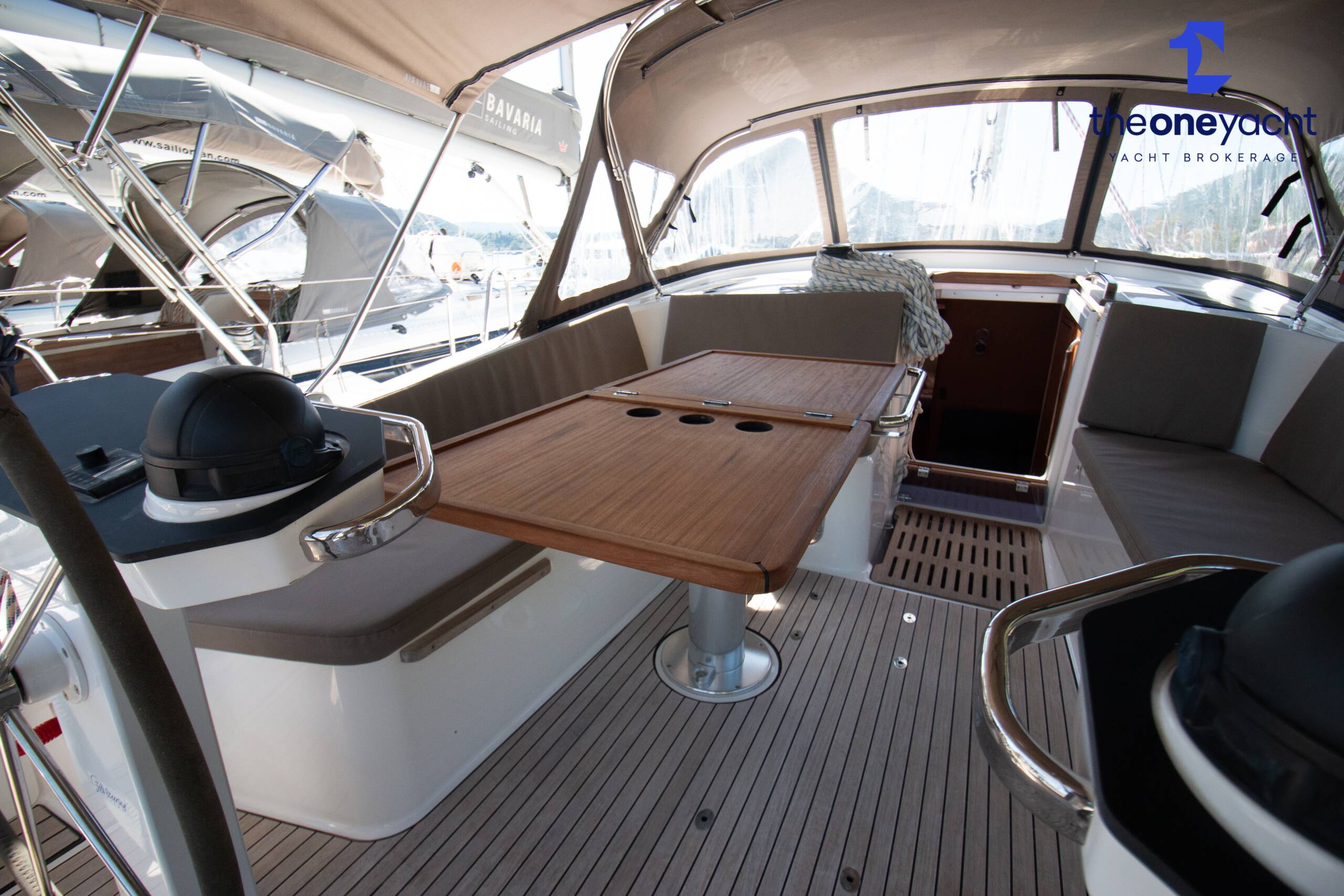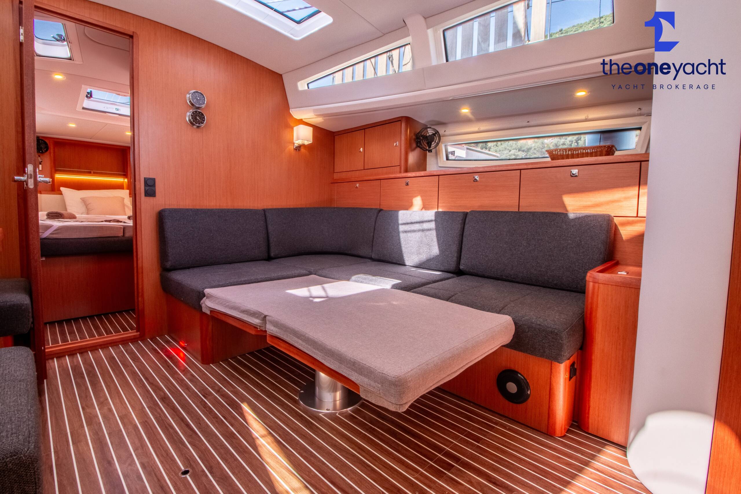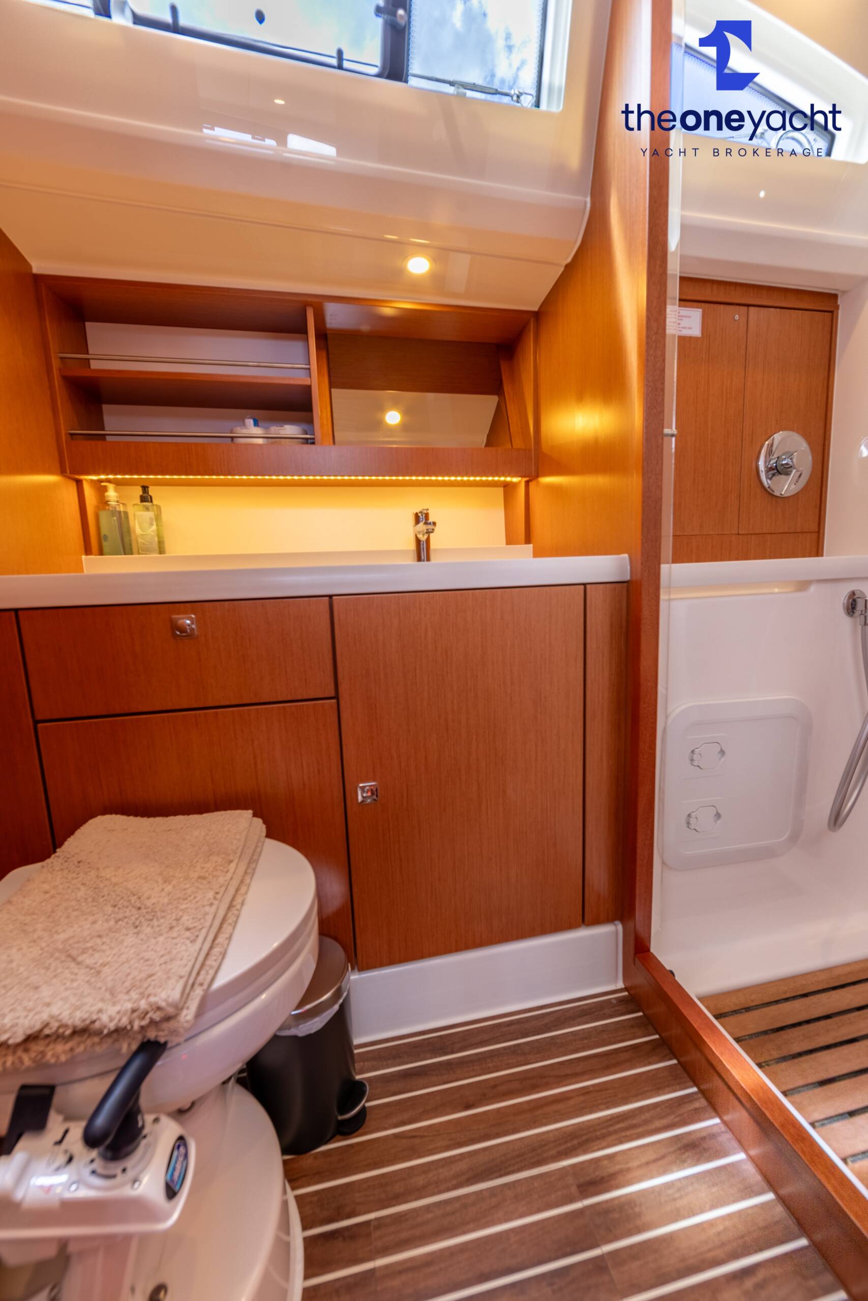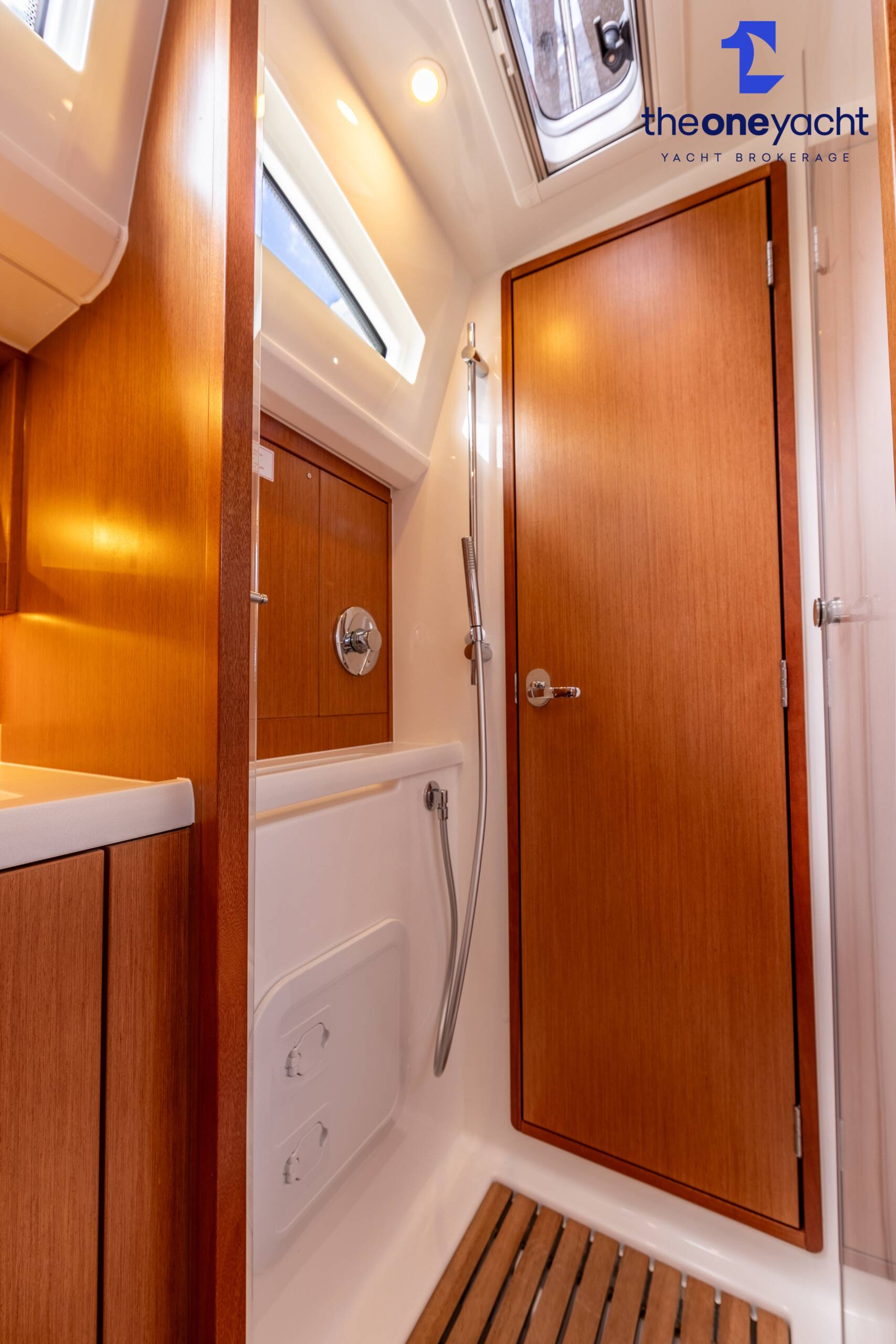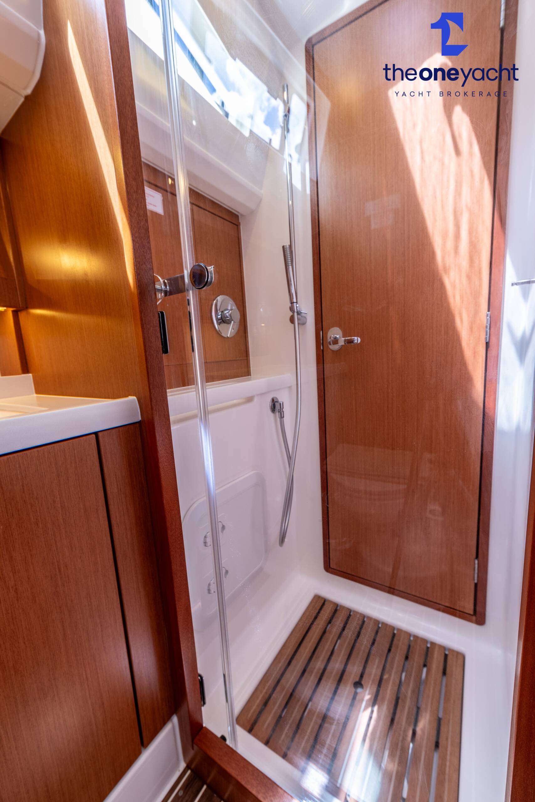 The Bavaria 42 Vision offers an exceptionally spacious and intelligently designed two-cabin layout, delivering the comfort and practicality of a much larger yacht. Accommodation includes two generous double cabins, ideal for owners and guests alike, alongside a convertible electric saloon table that provides additional sleeping space when required. The bright and airy saloon benefits from excellent headroom, panoramic windows, refined mahogany finishes, and electric adjustable dining arrangements, creating a luxurious social space for relaxing or entertaining onboard. Two heads and two showers are fitted, including a highly desirable separate enclosed aft shower compartment and transom shower, making the Bavaria 42 Vision one of the most practical and comfortable cruisers in her class for extended liveaboard or Mediterranean cruising.