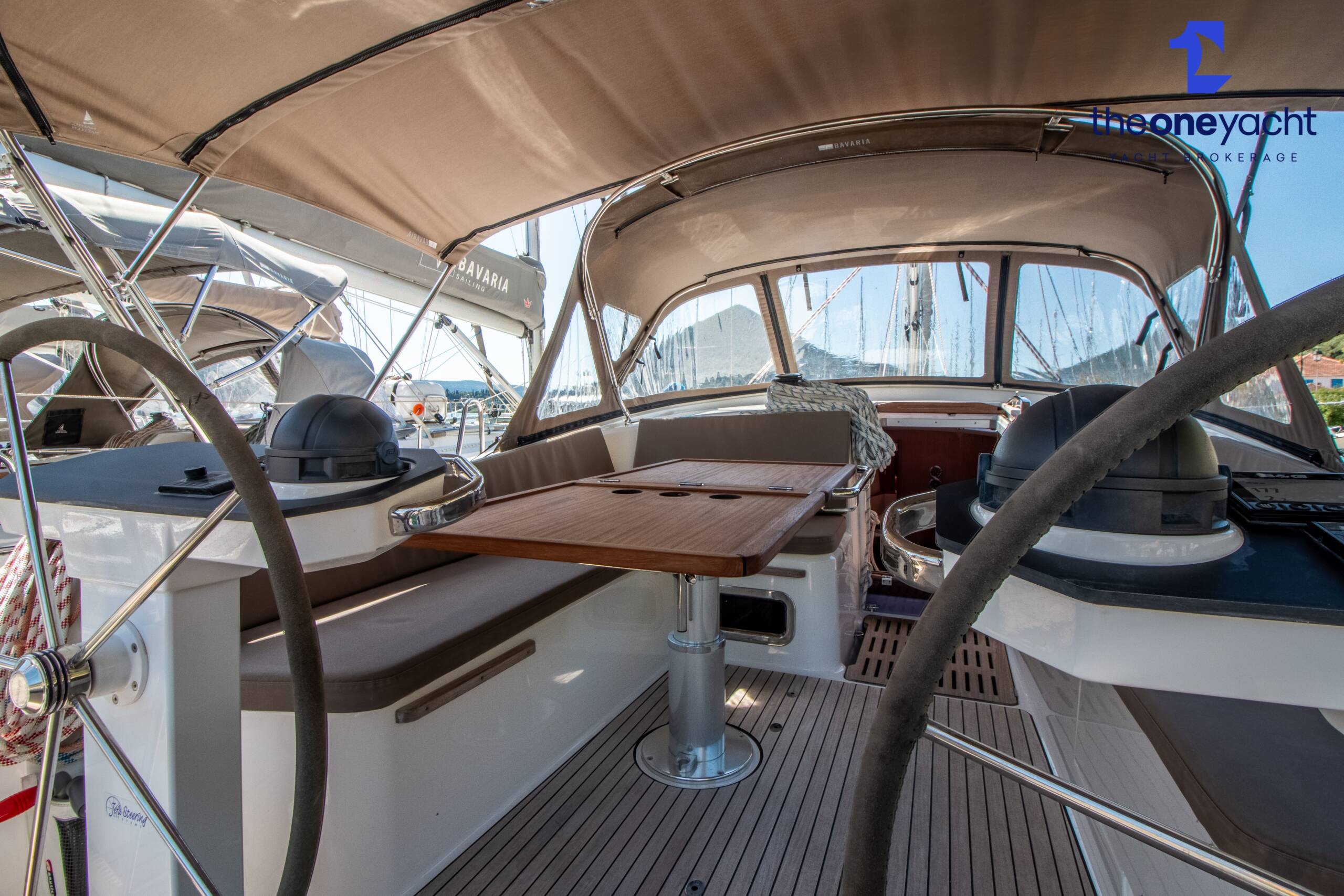 Bavaria 42 Vision – ‘Windjammer’ Price: €274,950 Ex. VAT * Registration: Greek Registered Location: Lefkada, Greece The Bavaria 42 Vision “Windjammer” is a beautifully maintained cruising yacht that perfectly combines comfort, performance, and practical Mediterranean sailing. Currently Greek registered and located in Lefkada, Greece, this well-equipped yacht is ideal for private cruising, extended liveaboard adventures, or charter operations in the Ionian. Designed with ease of handling in mind, Windjammer features in-mast furling, powerful self-tailing winches, and a reliable Volvo Penta D2-50 engine delivering 51hp, complemented by a bow thruster for effortless manoeuvring in tight marinas. The yacht offers a spacious and practical layout with two generous double cabins, a convertible electric saloon table berth, and two heads with showers, including a separate enclosed shower aft-a rare and highly desirable feature in this class. Her cockpit is designed for comfort and entertaining, finished with premium teak decking, a height-adjustable electric cockpit table, and full sprayhood and bimini protection. A bespoke stainless-steel gantry with new solar panels installed in 2024 provides excellent off-grid capability, ideal for extended cruising. Navigation is comprehensive with a modern B&G electronics suite, including a Zeus S 9″ multifunction display, Triton2 displays, autopilot with wireless remote, AIS receiver, and integrated Wi-Fi connectivity. Configured with 2 cabins, 2 heads, 12.80 m.