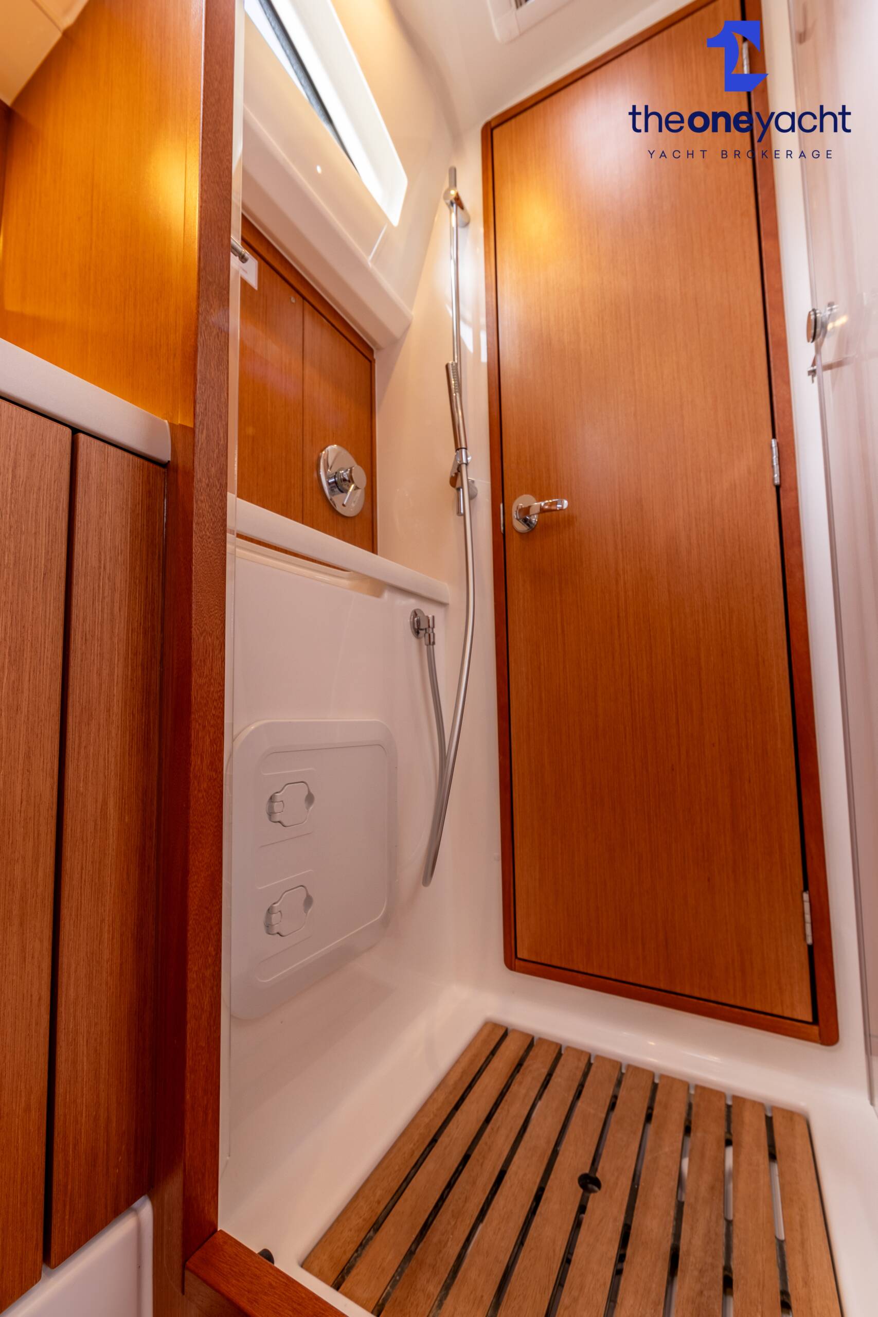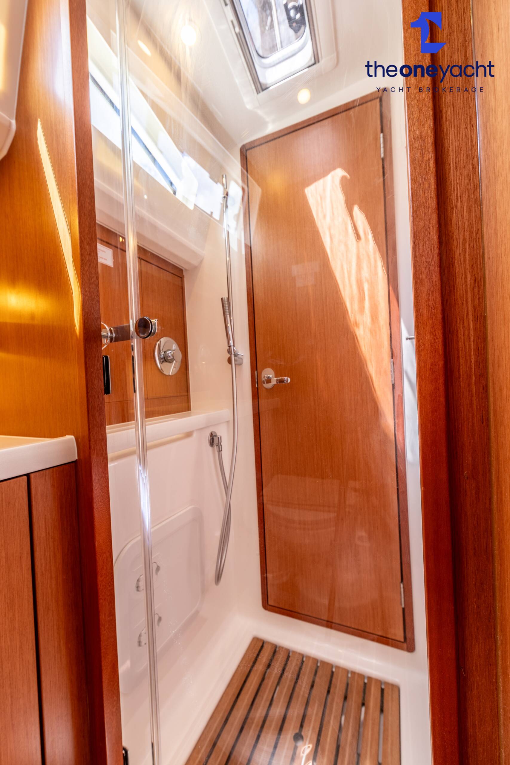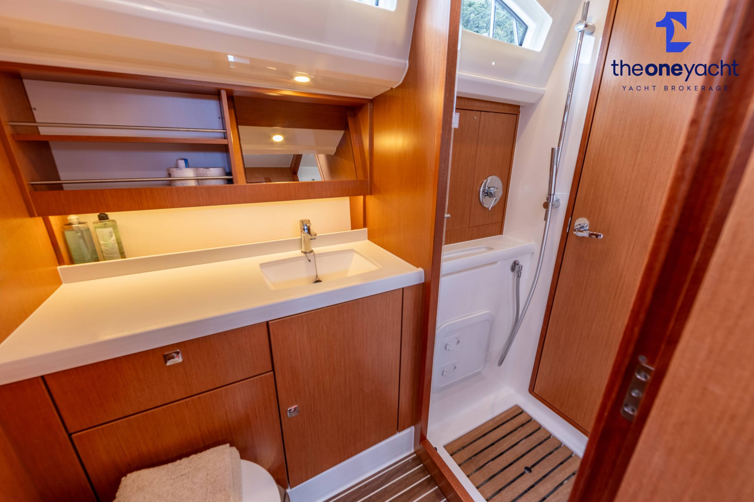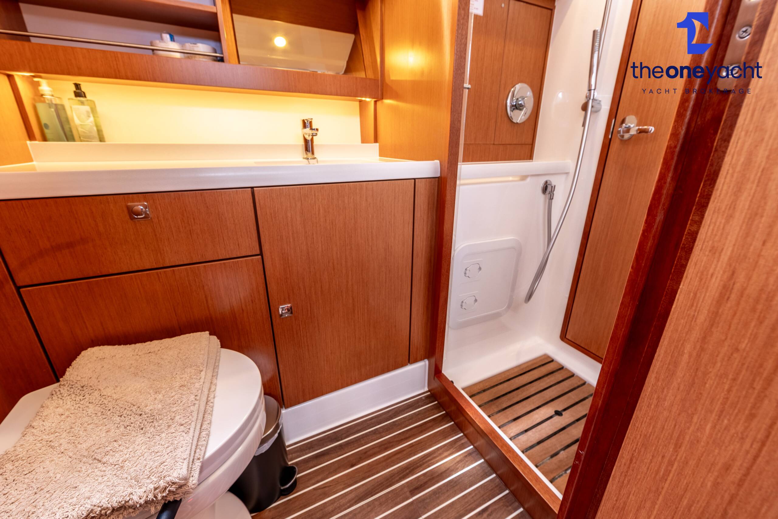 Notable onboard equipment and features include 2 Double Cabins + Electric Table Conversion, 2 Heads and 2 Showers (Inc. 1 Standalone shower enclosure starboard aft), In- mast Reefing, Volvo Penta D2-50 engine, Bow thruster.