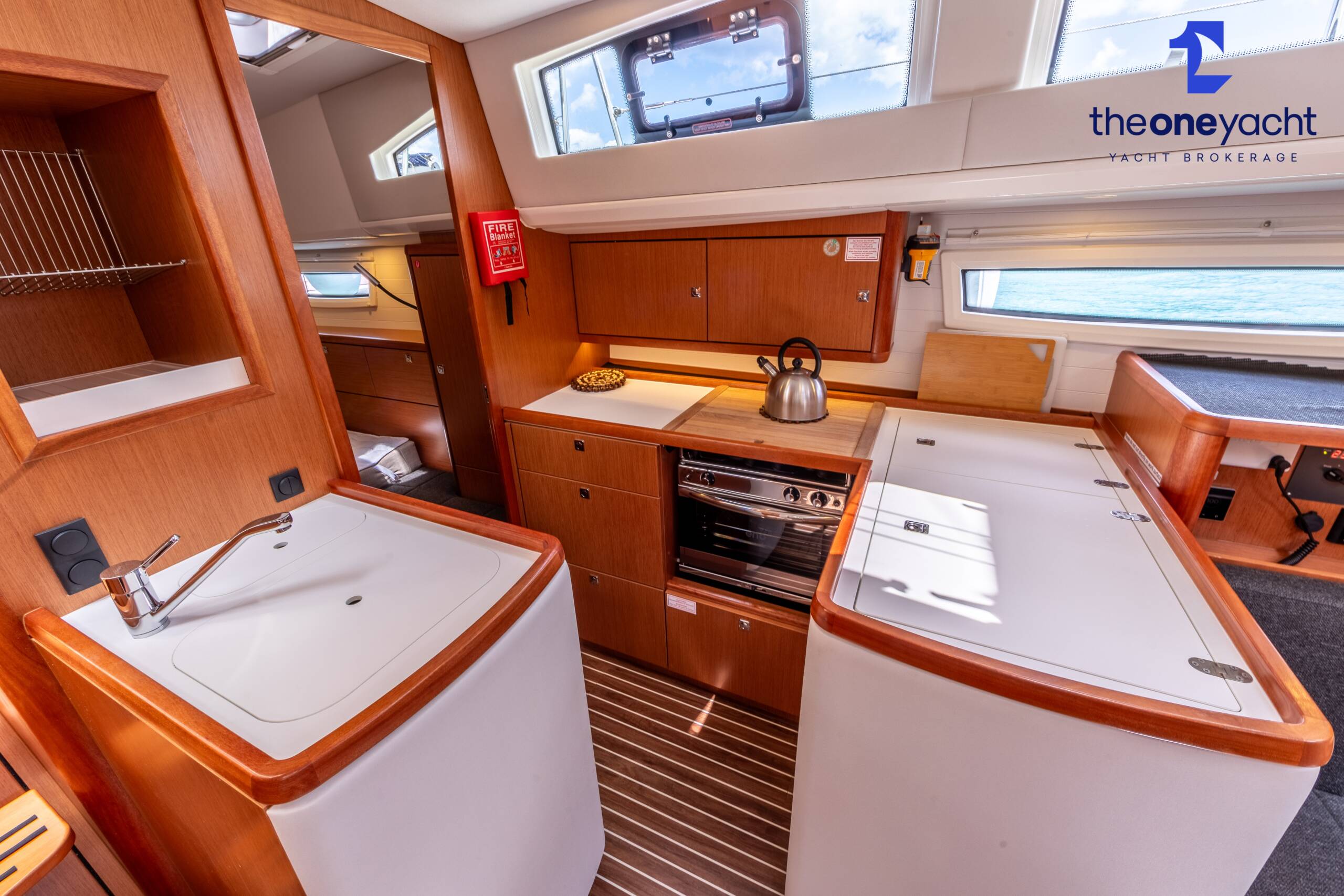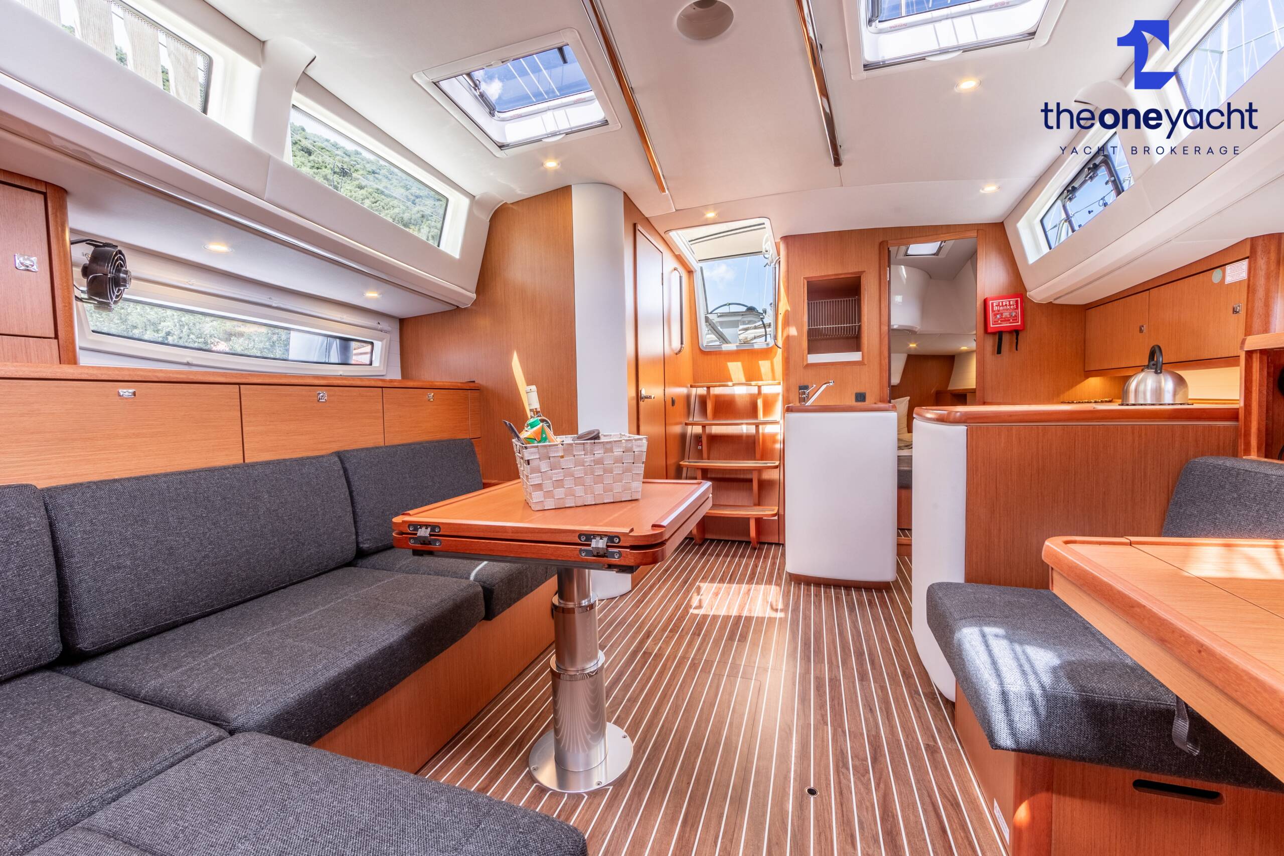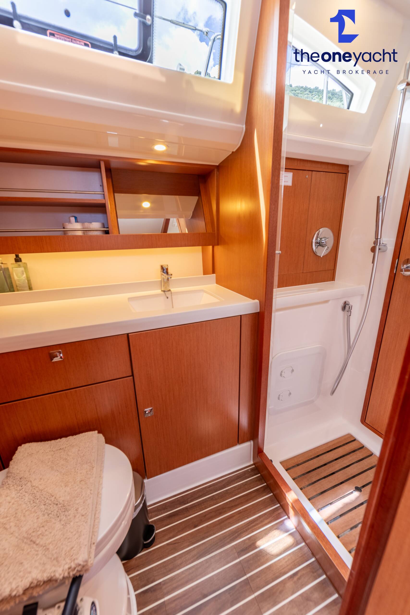 Notable onboard equipment and features include 2 Double Cabins + Electric Table Conversion, 2 Heads and 2 Showers (Inc. 1 Standalone shower enclosure starboard aft), In- mast Reefing, Volvo Penta D2-50 engine, Bow thruster.