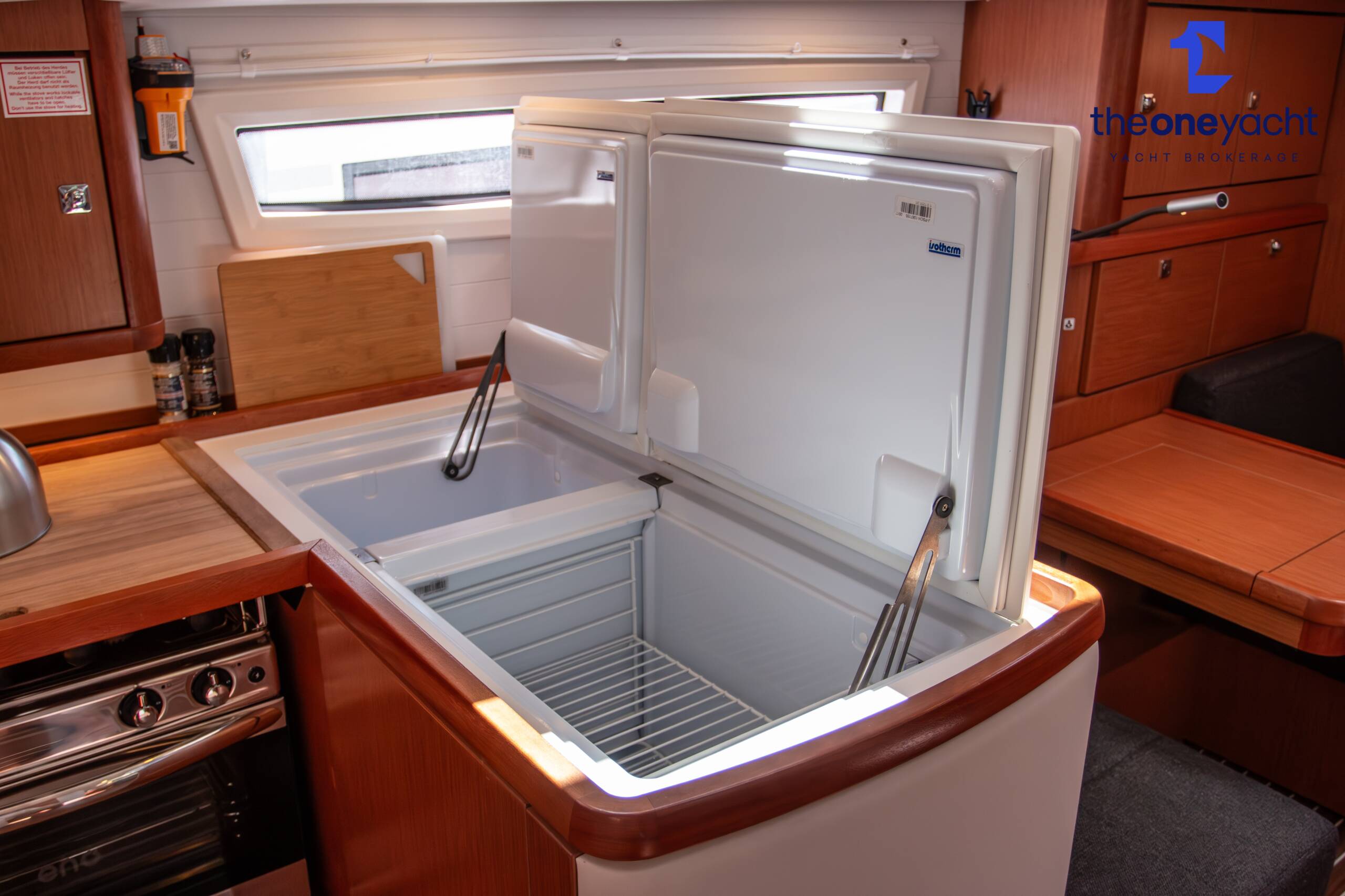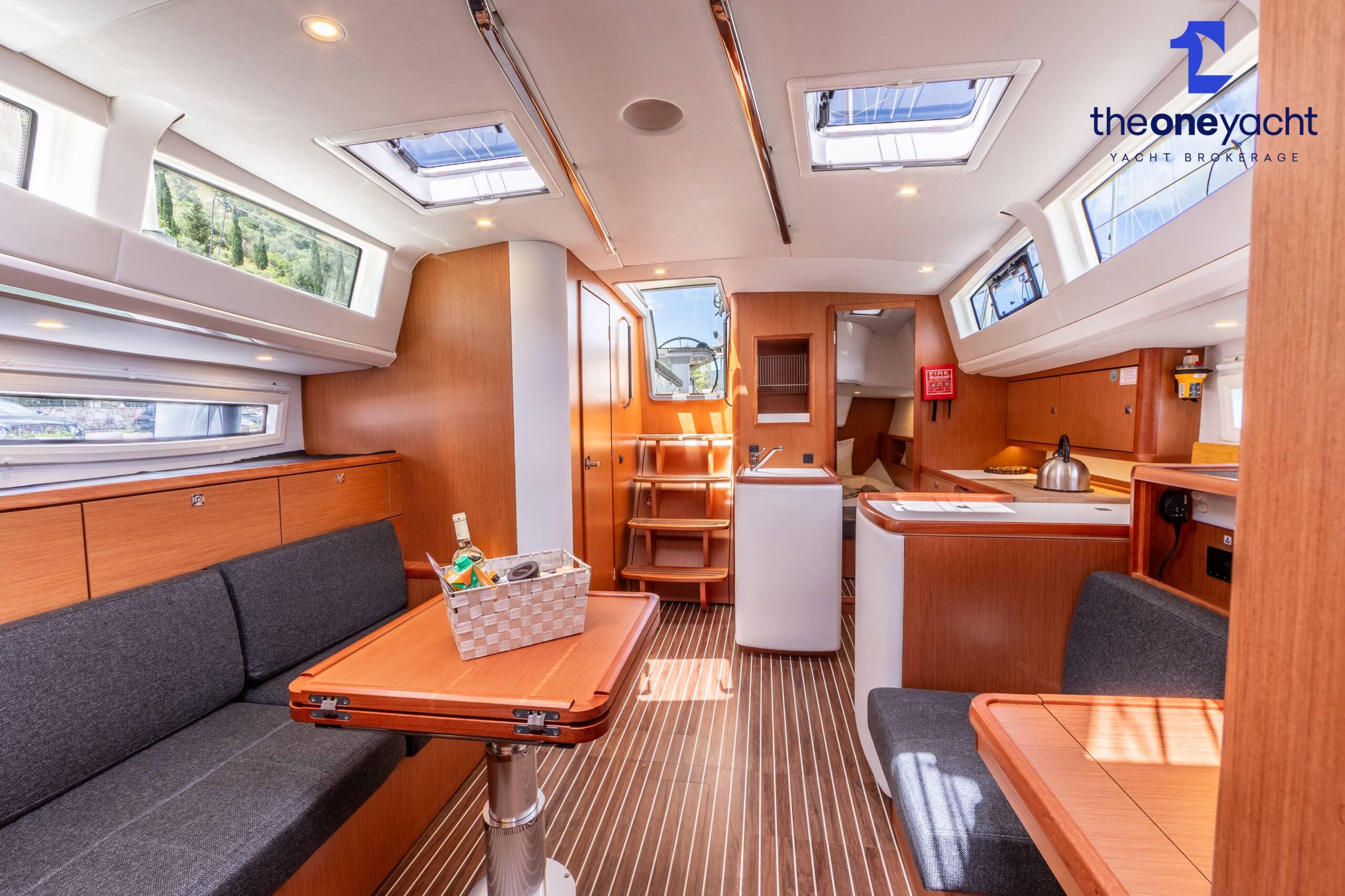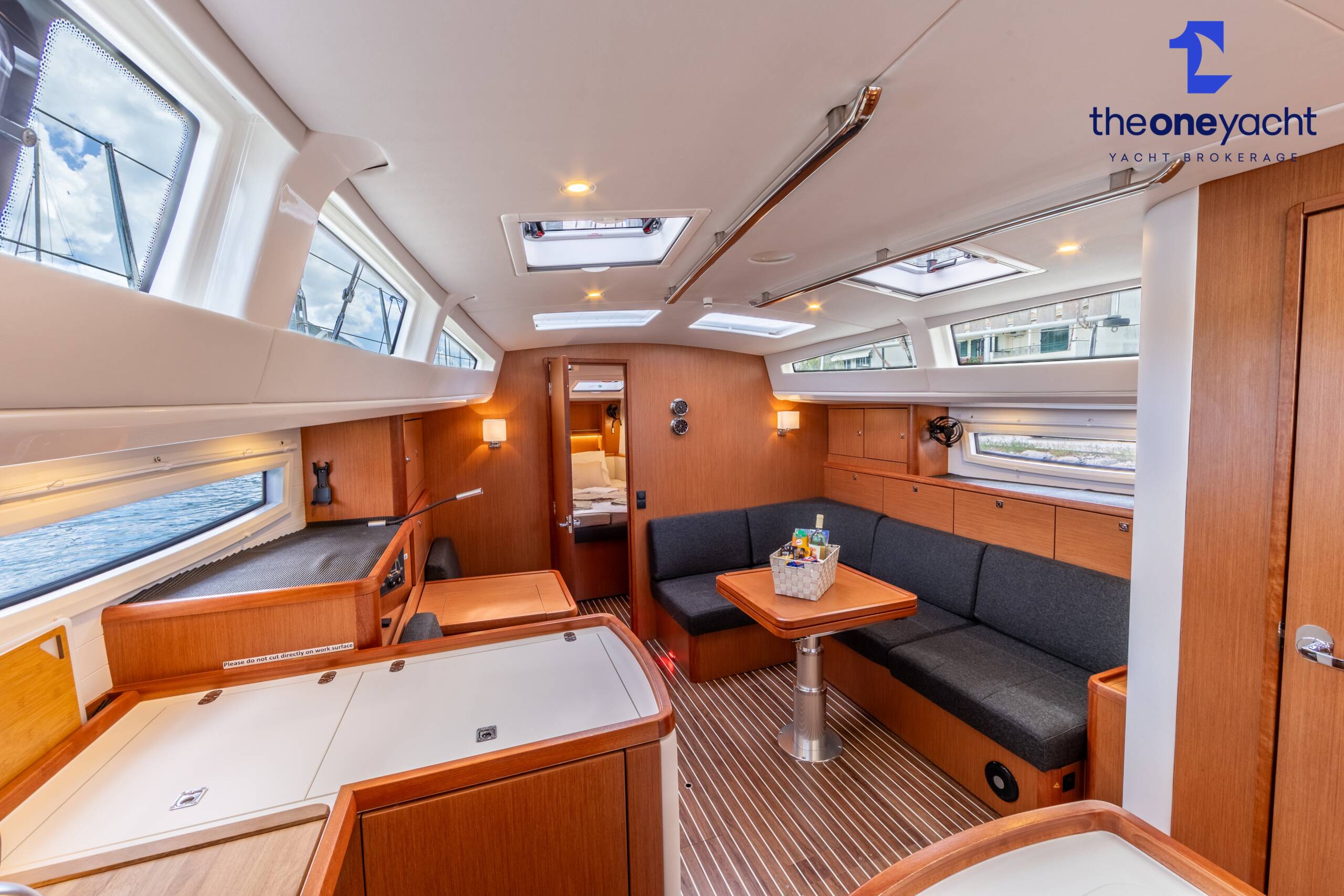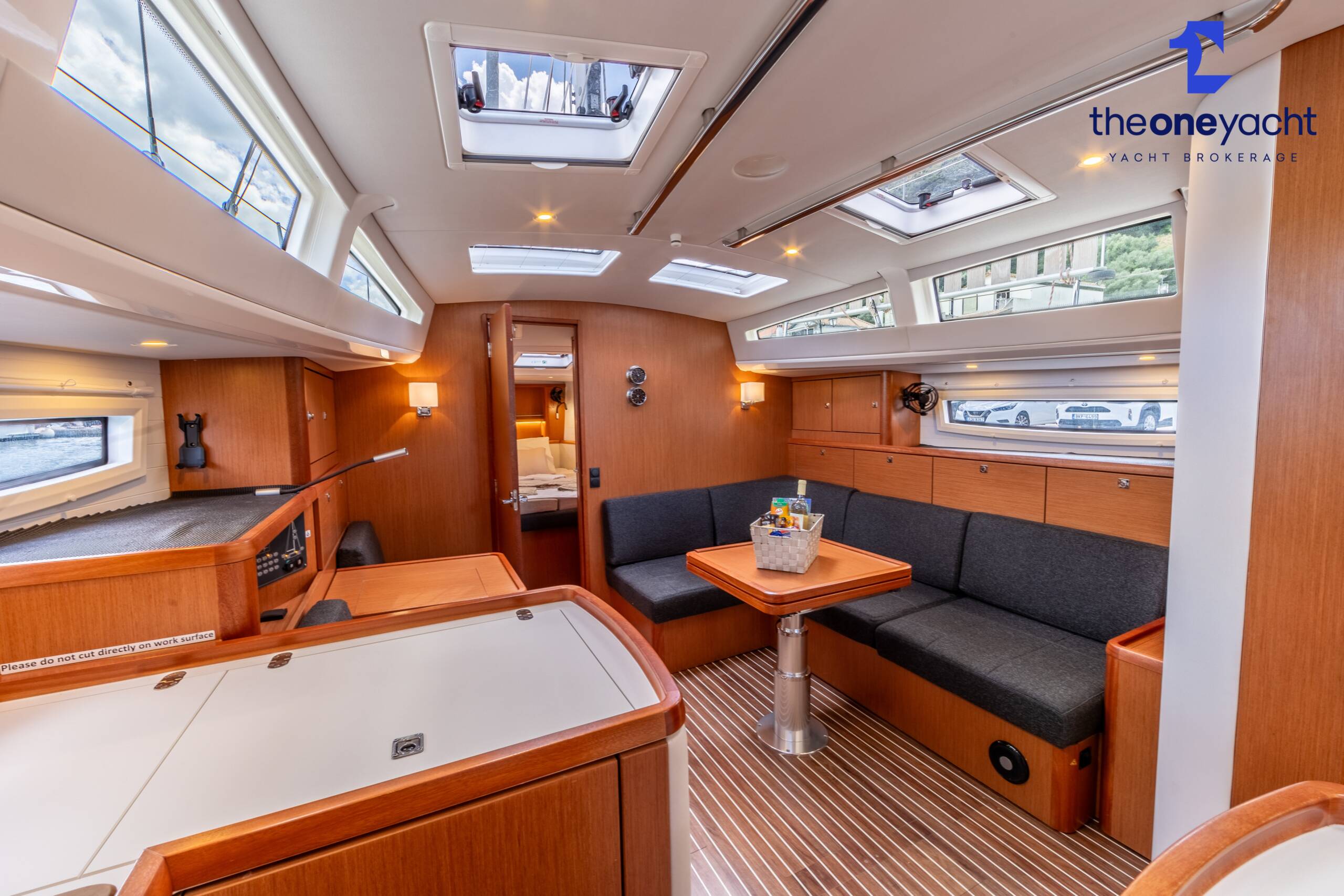 Notable onboard equipment and features include 2 Double Cabins + Electric Table Conversion, 2 Heads and 2 Showers (Inc. 1 Standalone shower enclosure starboard aft), In- mast Reefing, Volvo Penta D2-50 engine, Bow thruster.