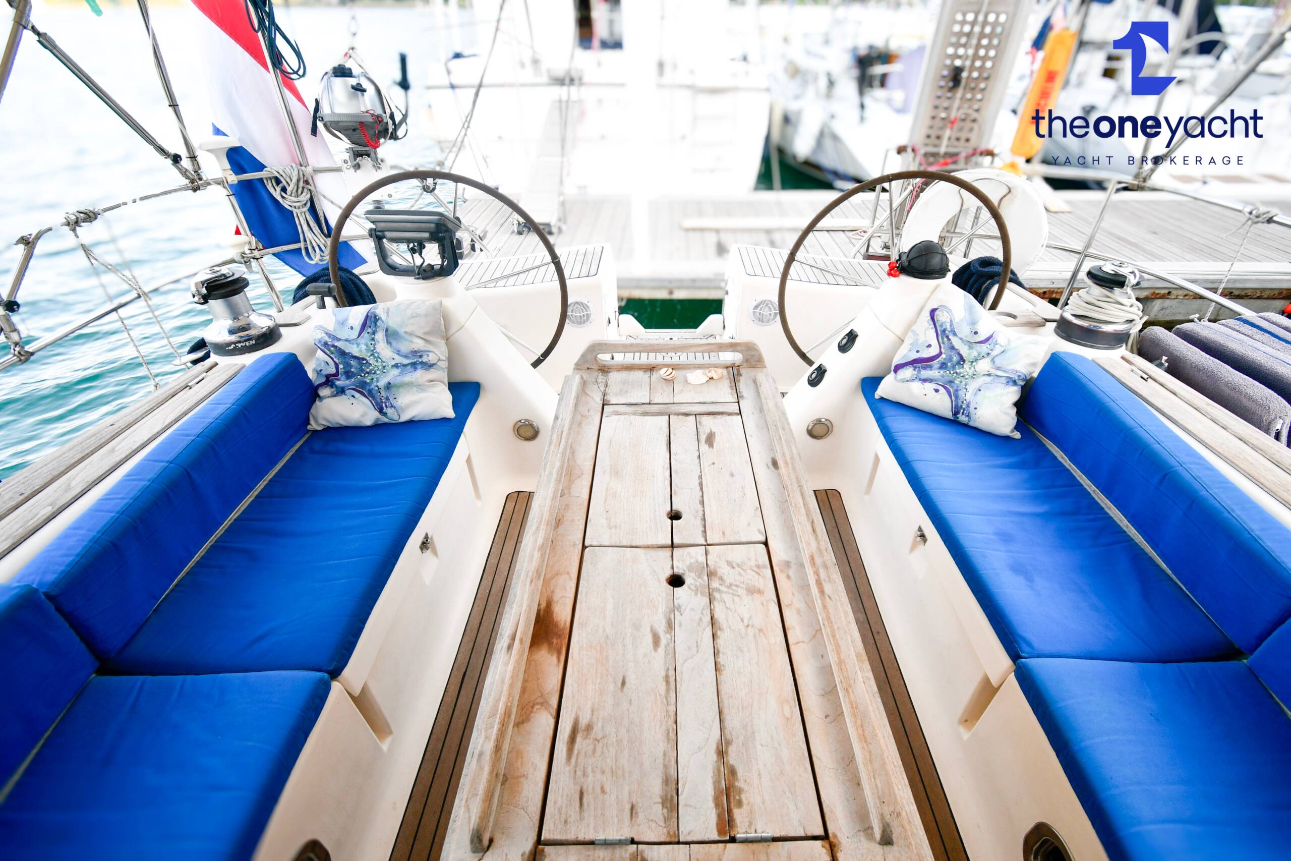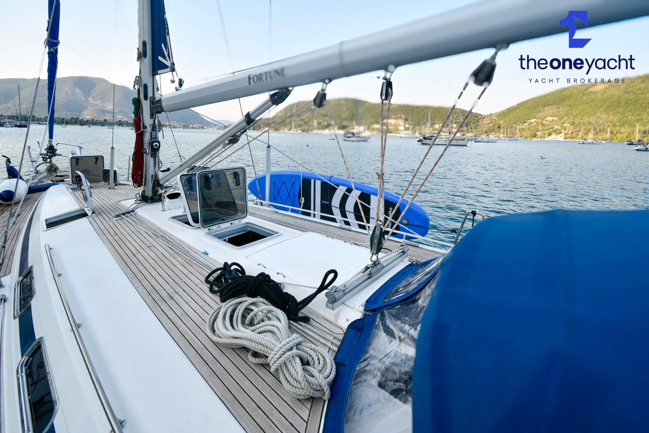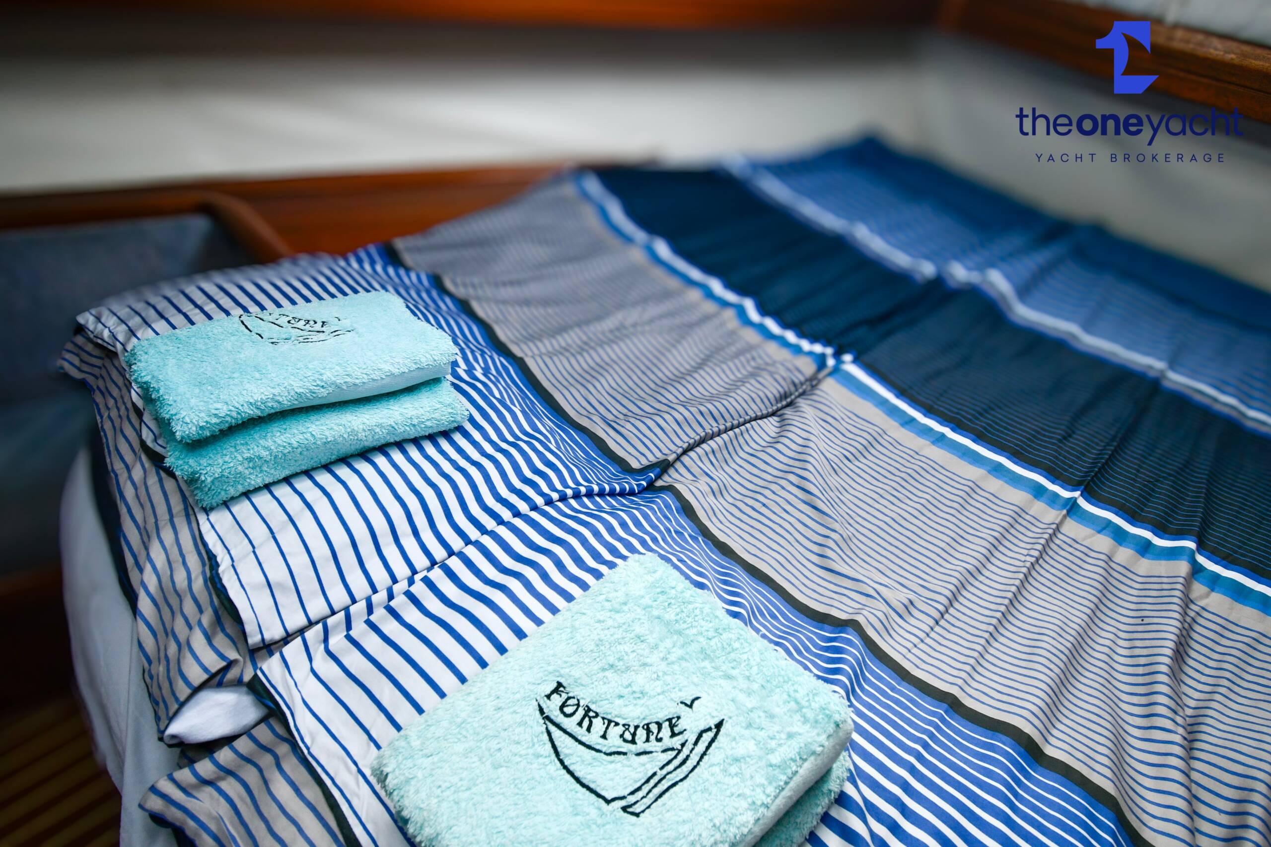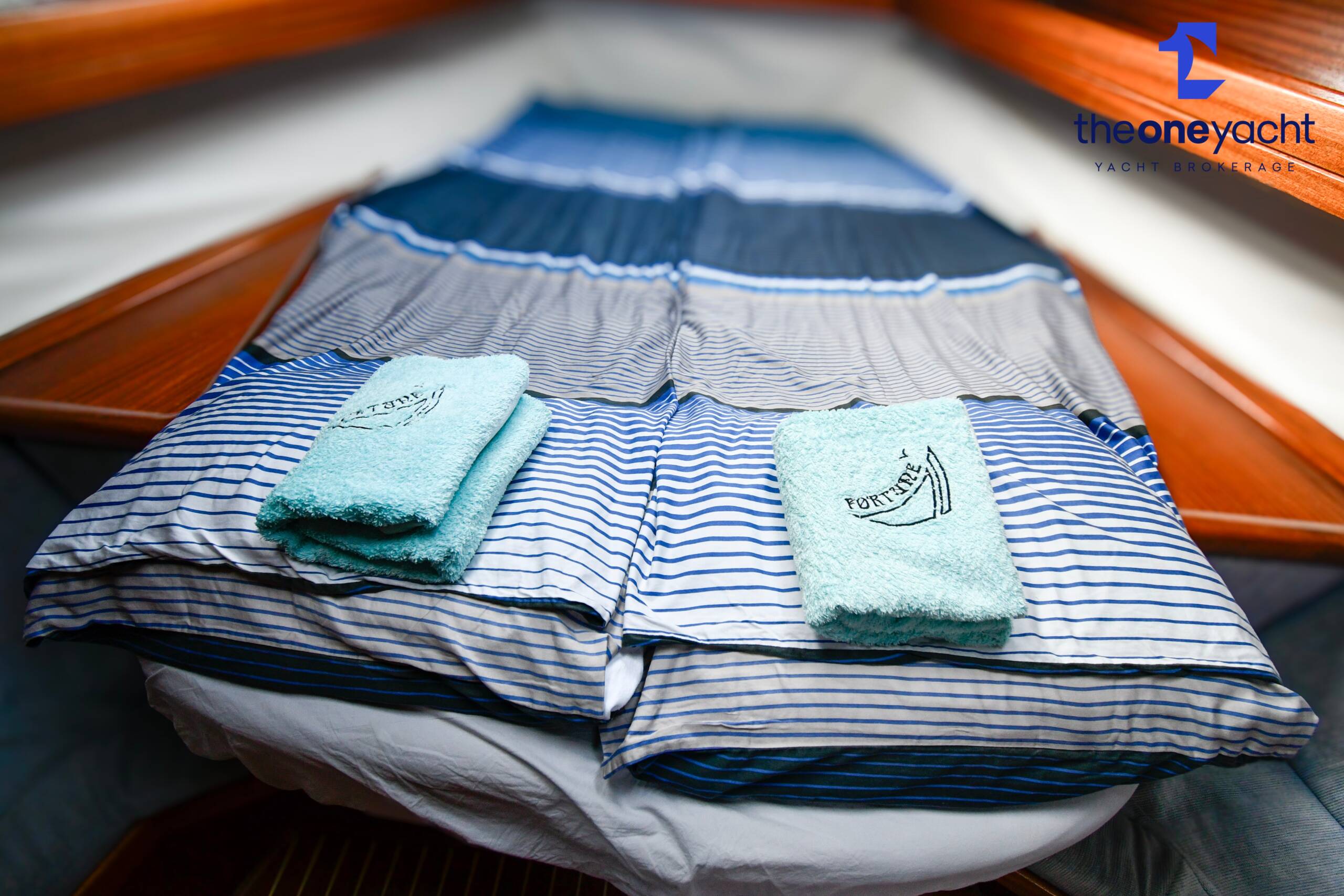 Fortune features the highly sought-after owner’s version layout, delivering exceptional onboard space and comfort for extended cruising. She offers a large forward owner’s cabin with generous proportions, complemented by two spacious aft double cabins ideal for guests or family. Two separate toilet compartments and a dedicated shower cabin provide practical onboard convenience, while the expansive saloon offers substantial seating and dining space, creating a welcoming social hub below deck. Her well-equipped galley includes full kitchen inventory and excellent storage, making life aboard comfortable for longer stays, while the wide cockpit with twin helm arrangement provides ample room for entertaining and relaxed outdoor living.