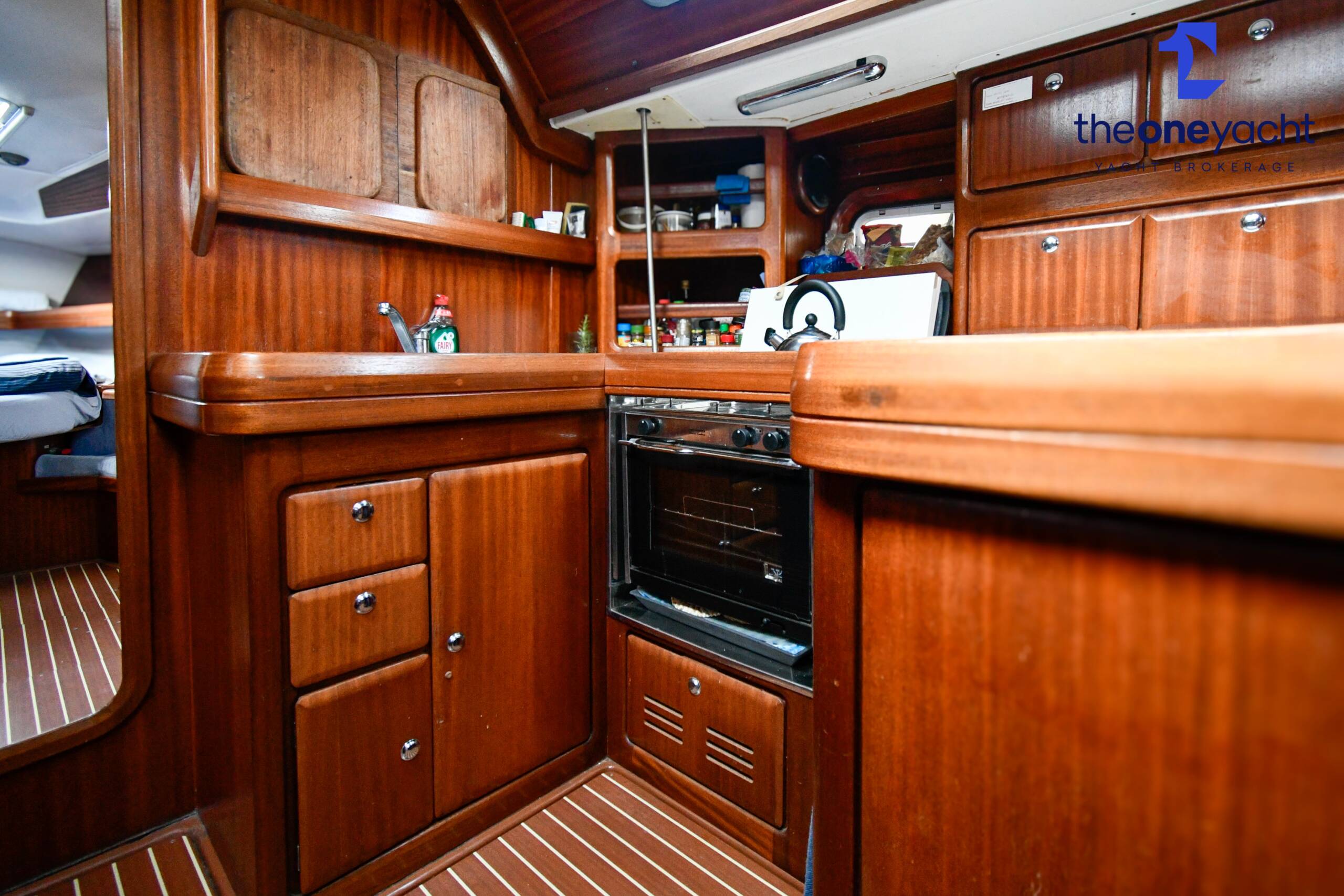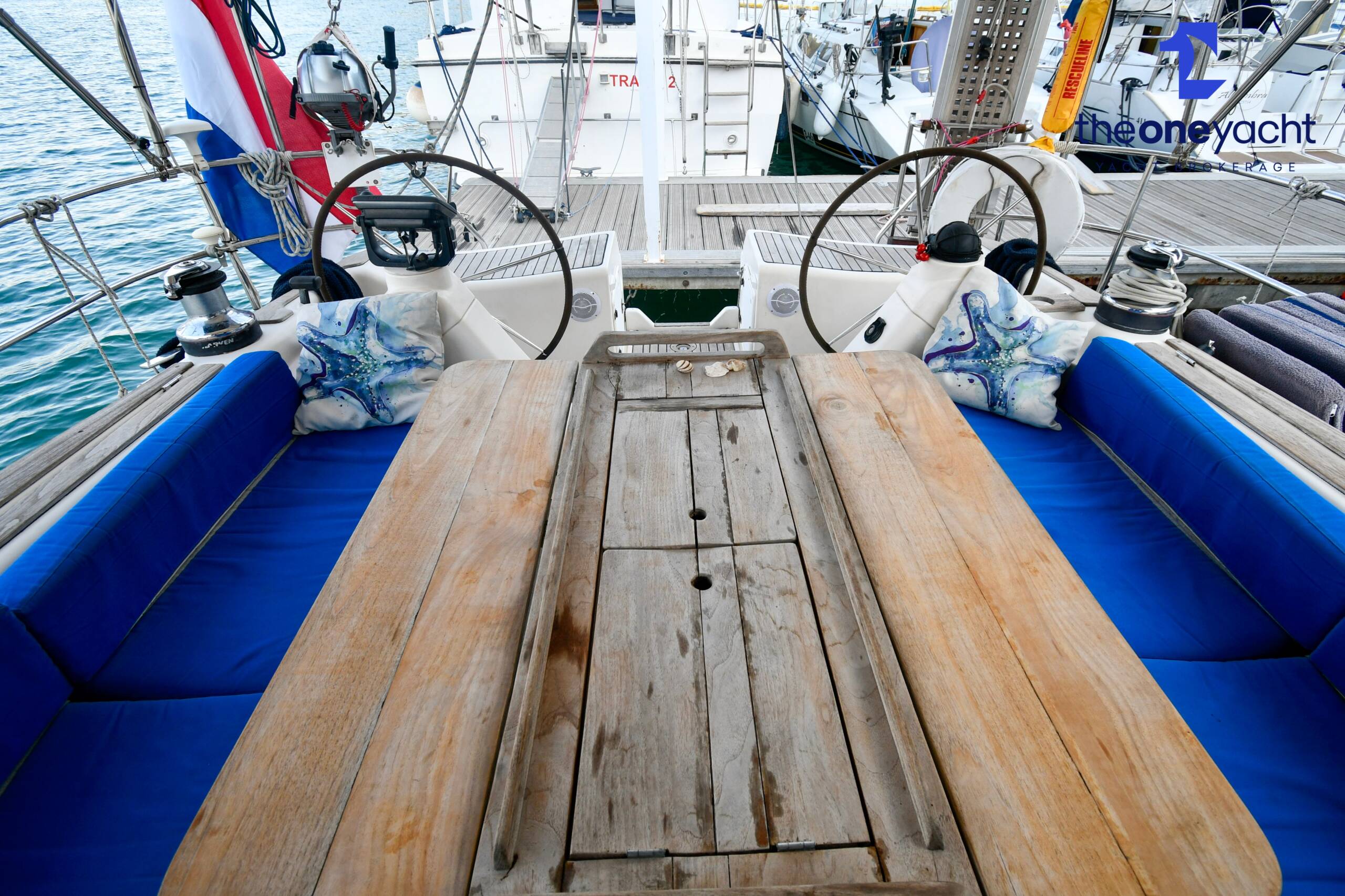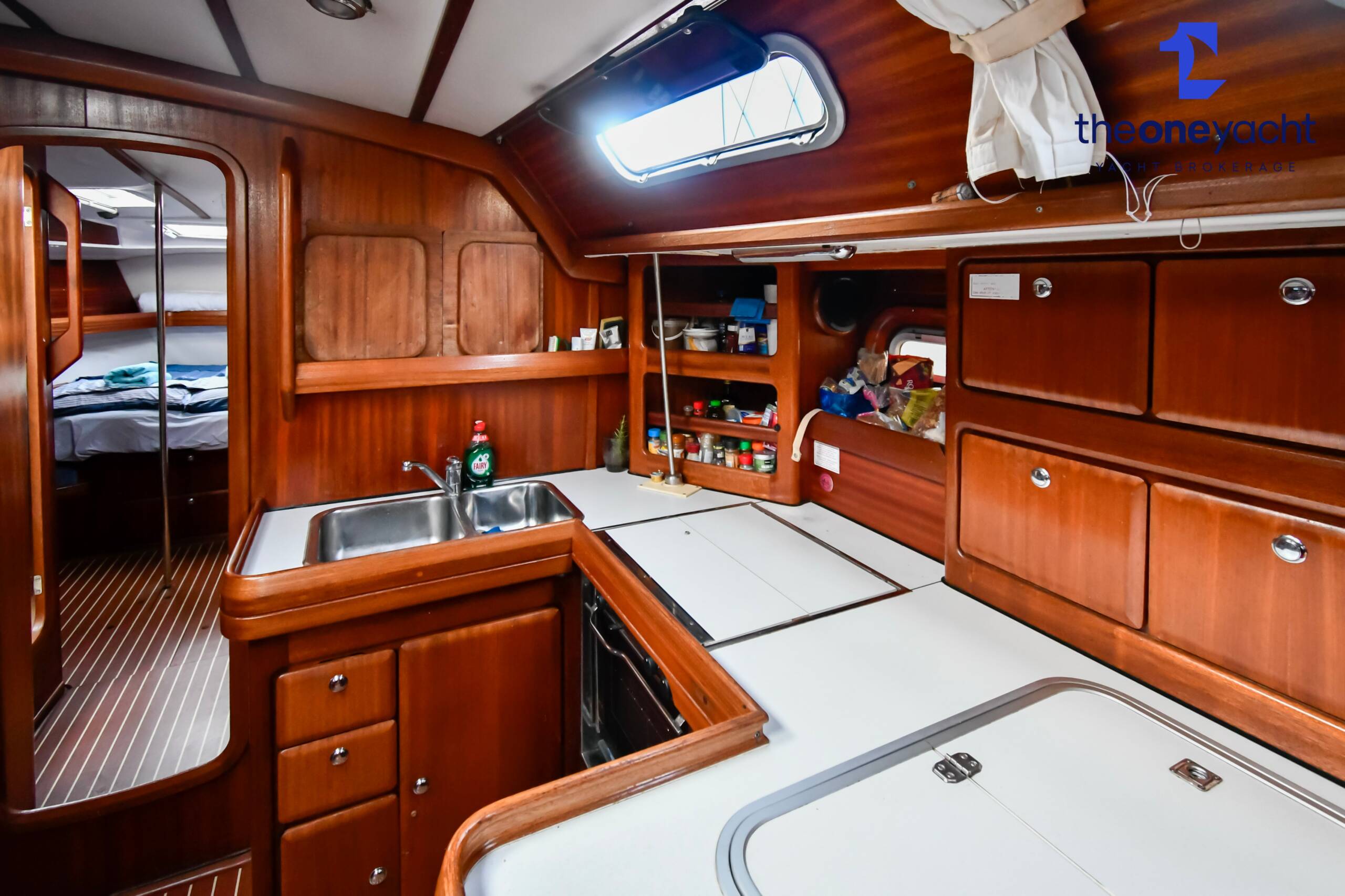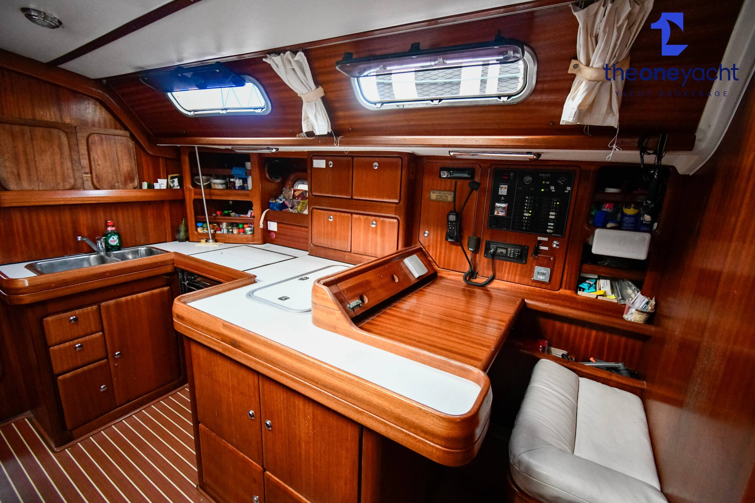 Fortune features the highly sought-after owner’s version layout, delivering exceptional onboard space and comfort for extended cruising. She offers a large forward owner’s cabin with generous proportions, complemented by two spacious aft double cabins ideal for guests or family. Two separate toilet compartments and a dedicated shower cabin provide practical onboard convenience, while the expansive saloon offers substantial seating and dining space, creating a welcoming social hub below deck. Her well-equipped galley includes full kitchen inventory and excellent storage, making life aboard comfortable for longer stays, while the wide cockpit with twin helm arrangement provides ample room for entertaining and relaxed outdoor living.