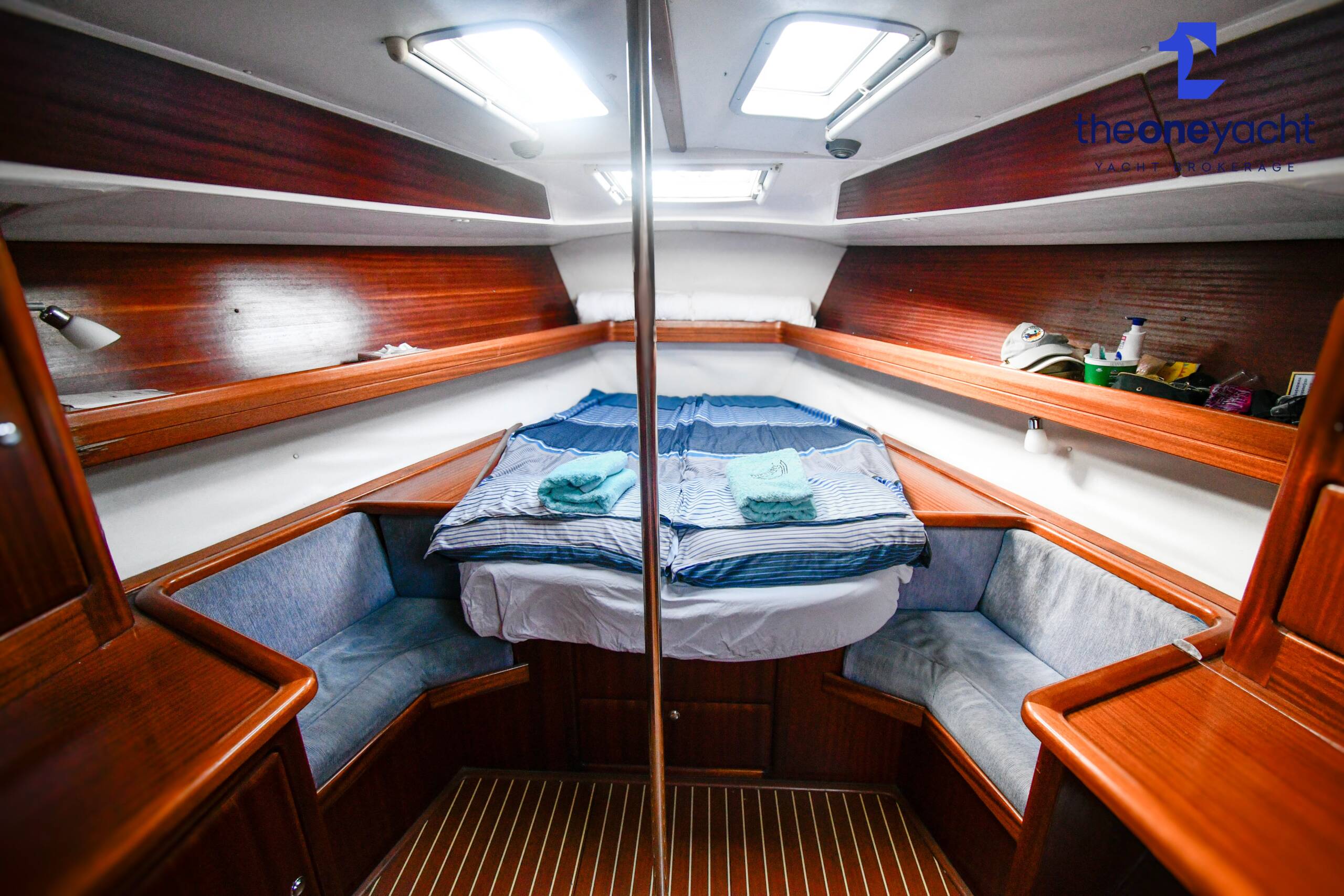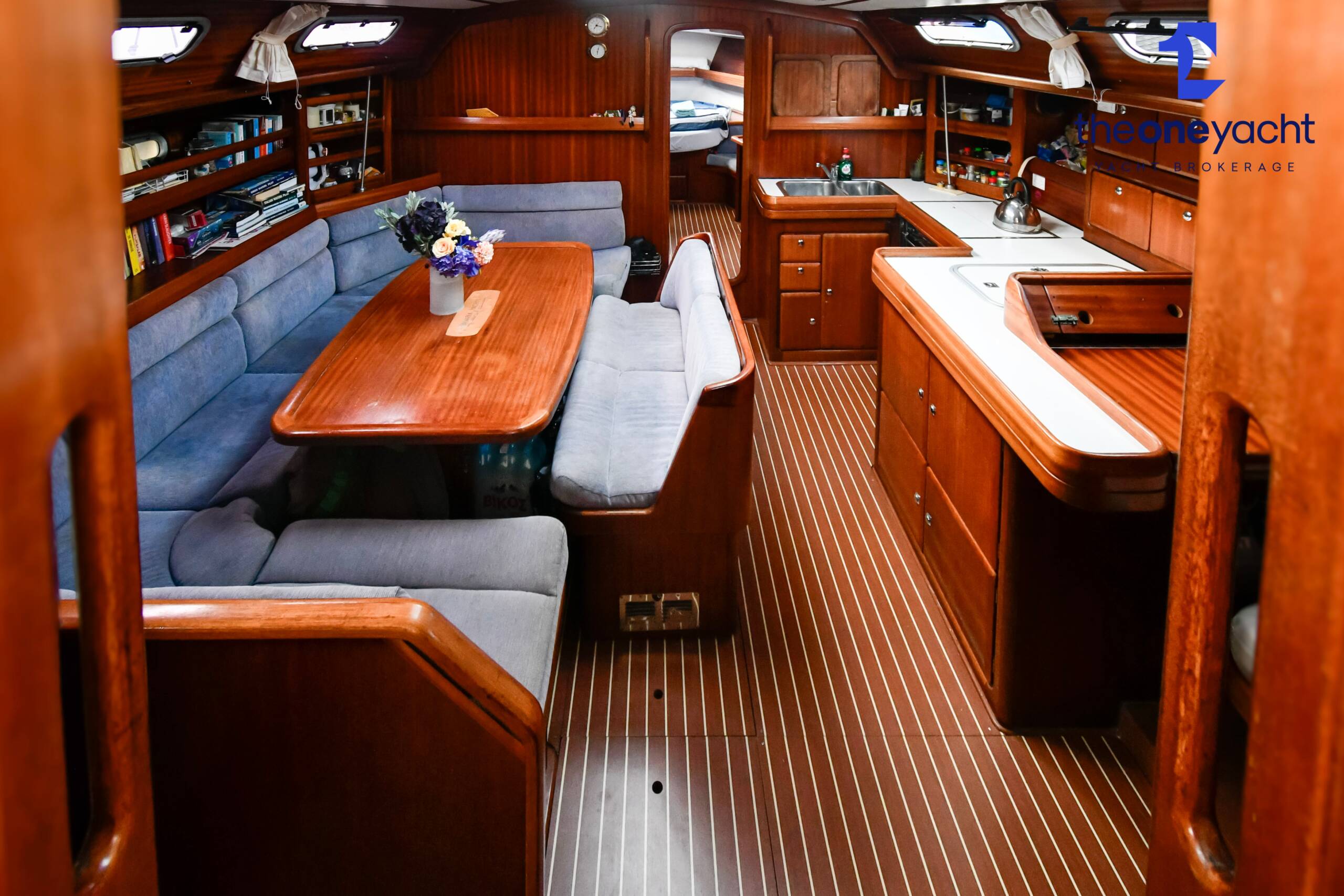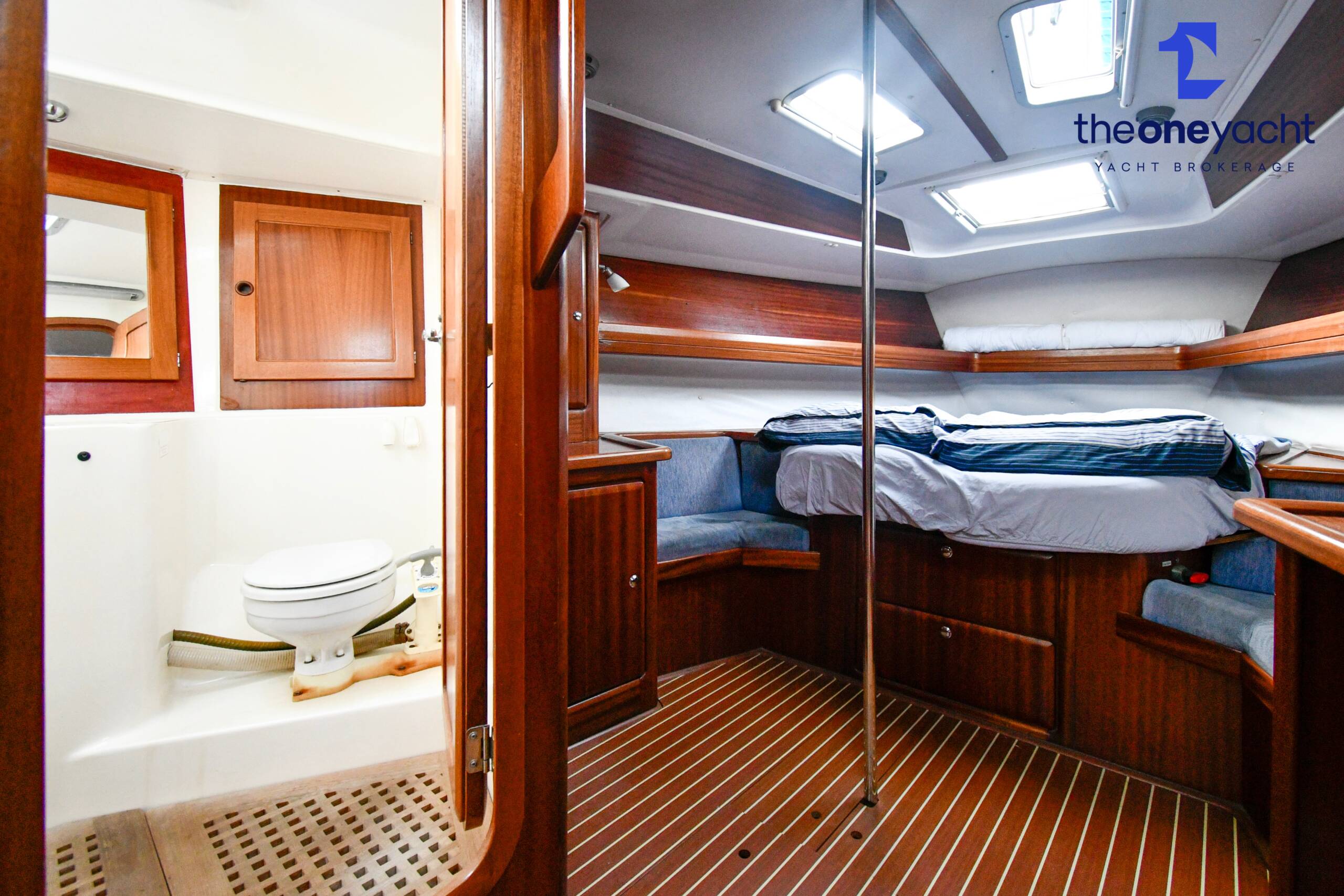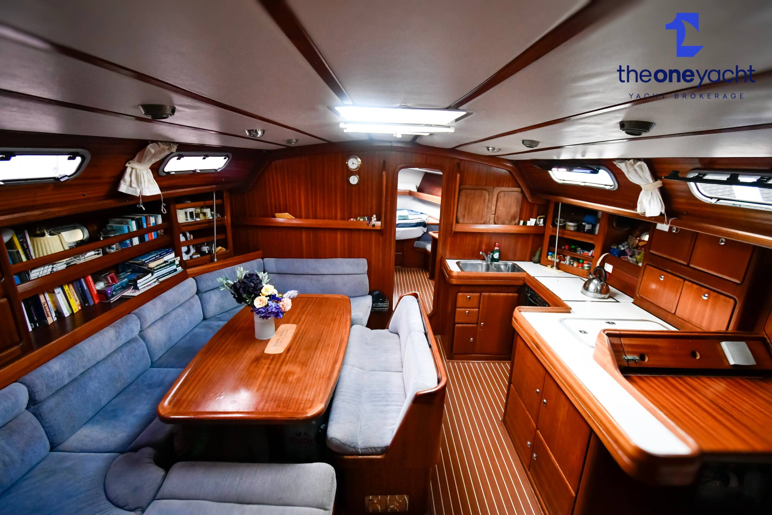 Fortune features the highly sought-after owner’s version layout, delivering exceptional onboard space and comfort for extended cruising. She offers a large forward owner’s cabin with generous proportions, complemented by two spacious aft double cabins ideal for guests or family. Two separate toilet compartments and a dedicated shower cabin provide practical onboard convenience, while the expansive saloon offers substantial seating and dining space, creating a welcoming social hub below deck. Her well-equipped galley includes full kitchen inventory and excellent storage, making life aboard comfortable for longer stays, while the wide cockpit with twin helm arrangement provides ample room for entertaining and relaxed outdoor living.