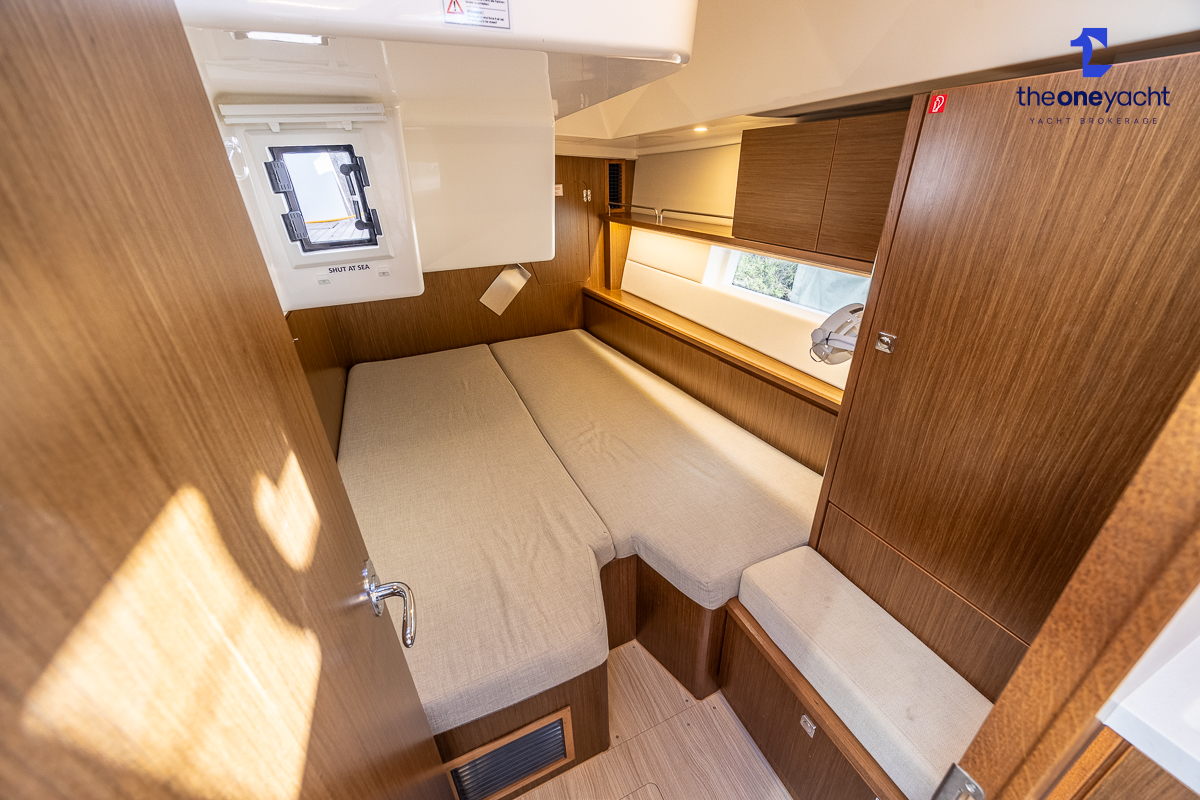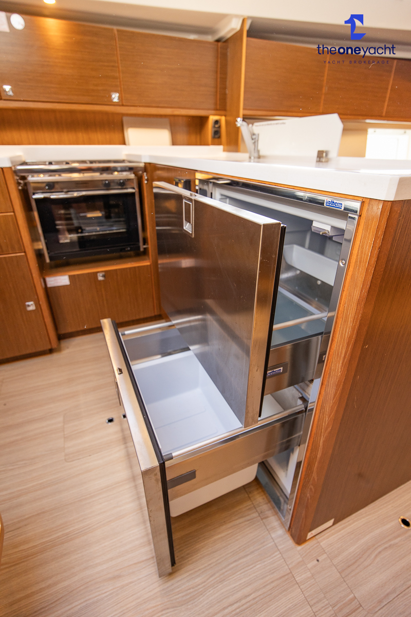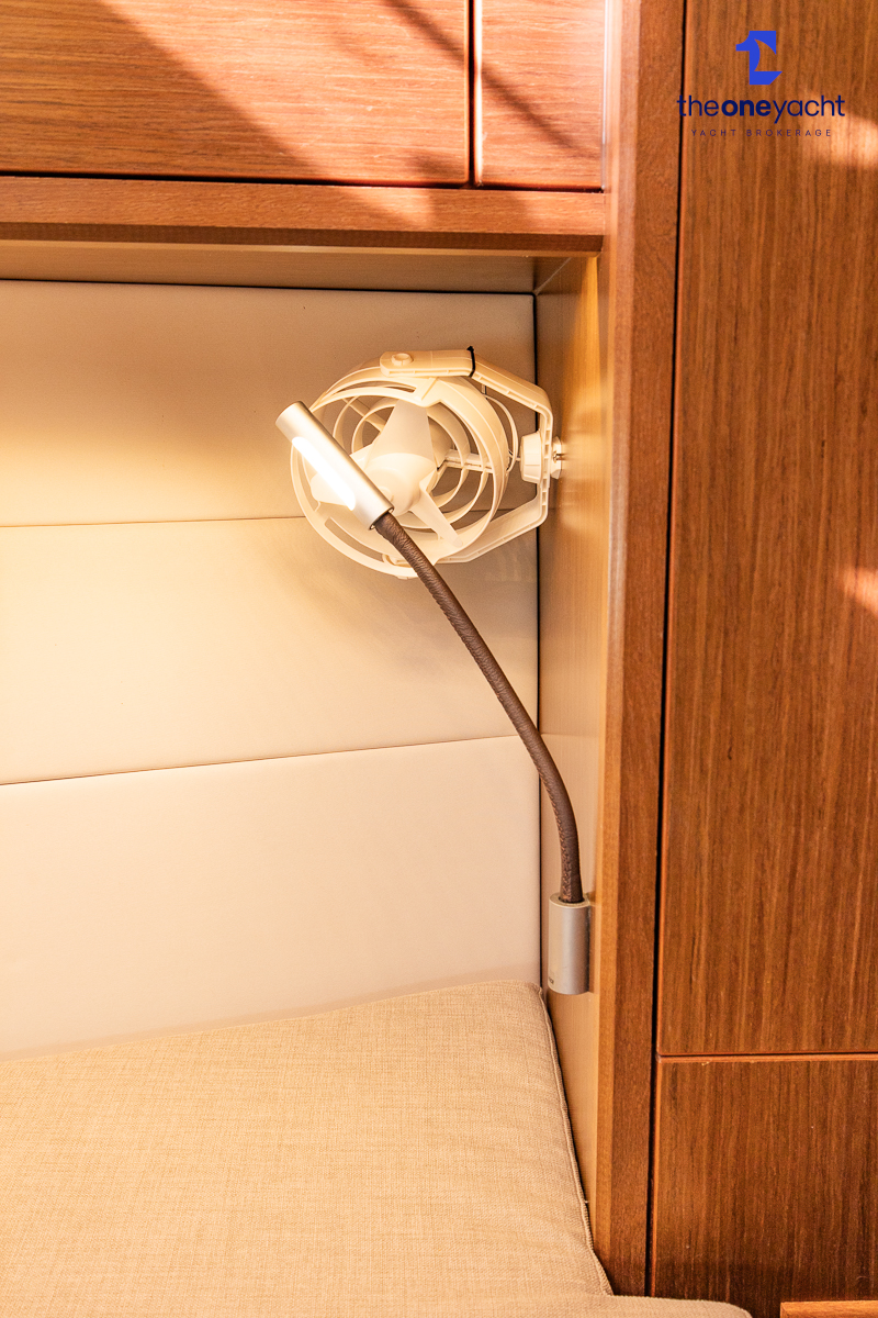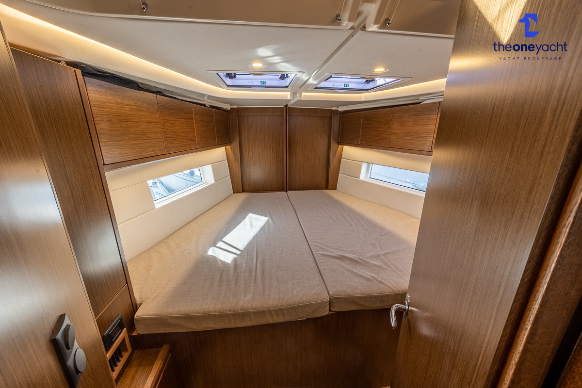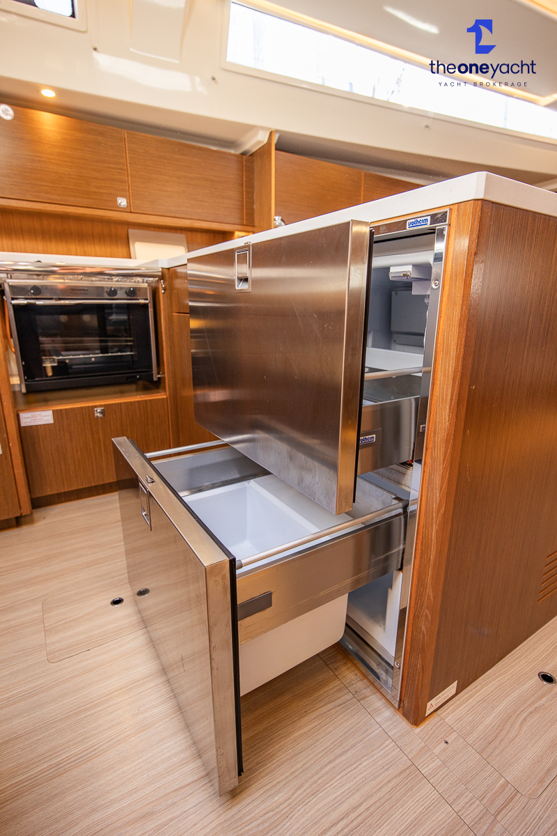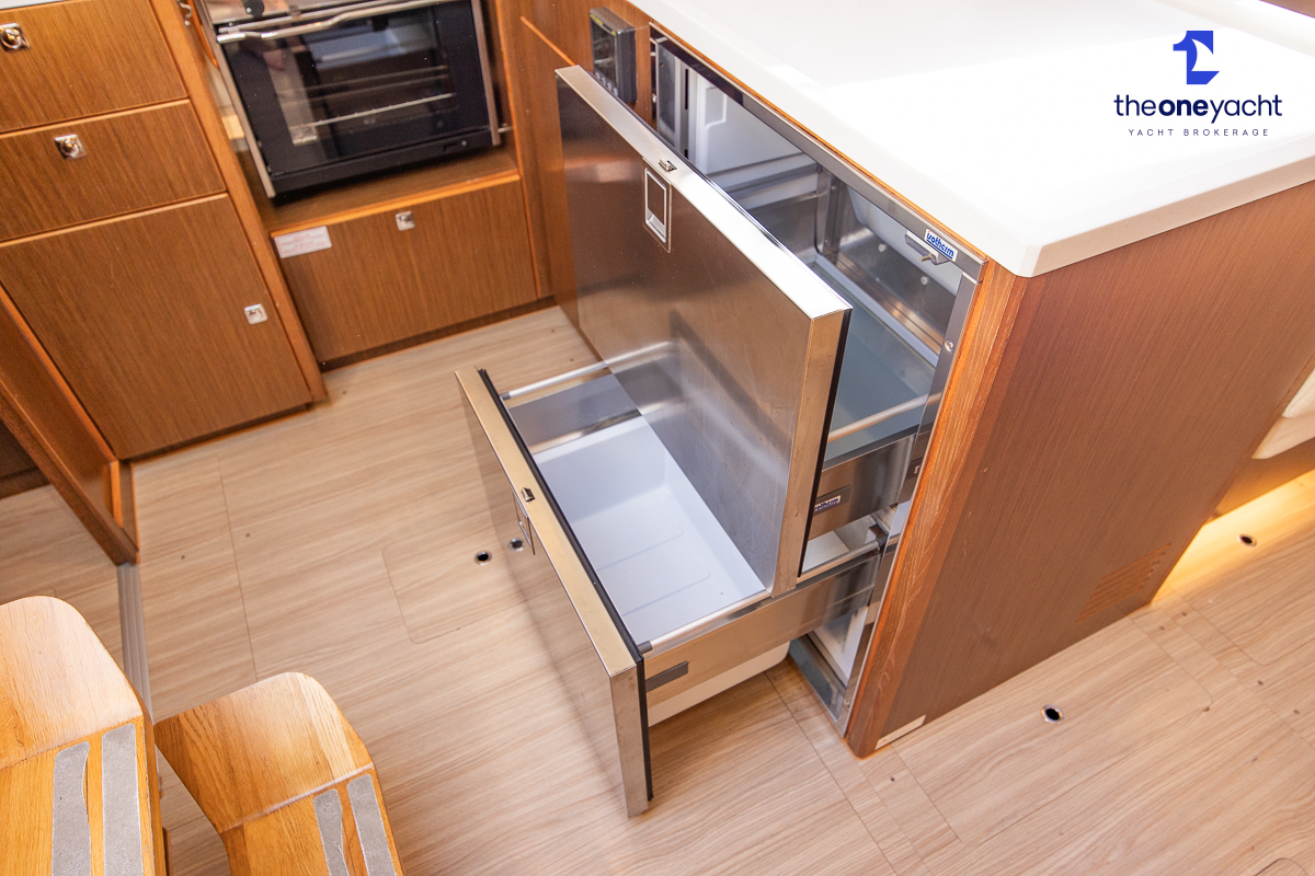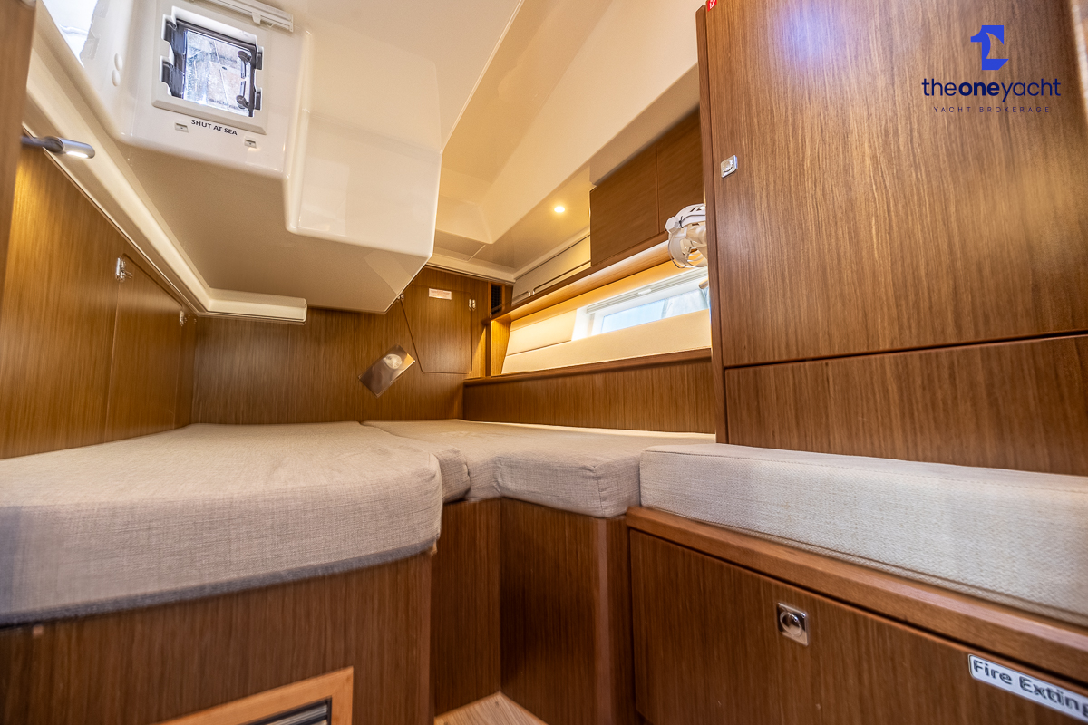 The Bavaria C45 Style offers an exceptionally flexible and luxurious interior layout, designed to maximise both comfort and practicality for extended cruising or entertaining guests onboard. Hummingbird features an innovative 3/4 double cabin arrangement thanks to the desirable forward flex bulkhead cabin system, allowing owners to configure the yacht for either additional sleeping accommodation or expanded owner storage as required. The spacious and beautifully finished walnut interior creates a warm, modern atmosphere throughout, complemented by excellent natural light in the bright open-plan saloon. The electrically convertible saloon table provides an additional double berth, allowing for further guest accommodation when needed. Three heads and three showers, including a dedicated standalone shower enclosure in the starboard aft section, ensure outstanding onboard convenience and privacy, making the C45 one of the most practical yachts in her class for liveaboard use, family cruising, or charter potential.