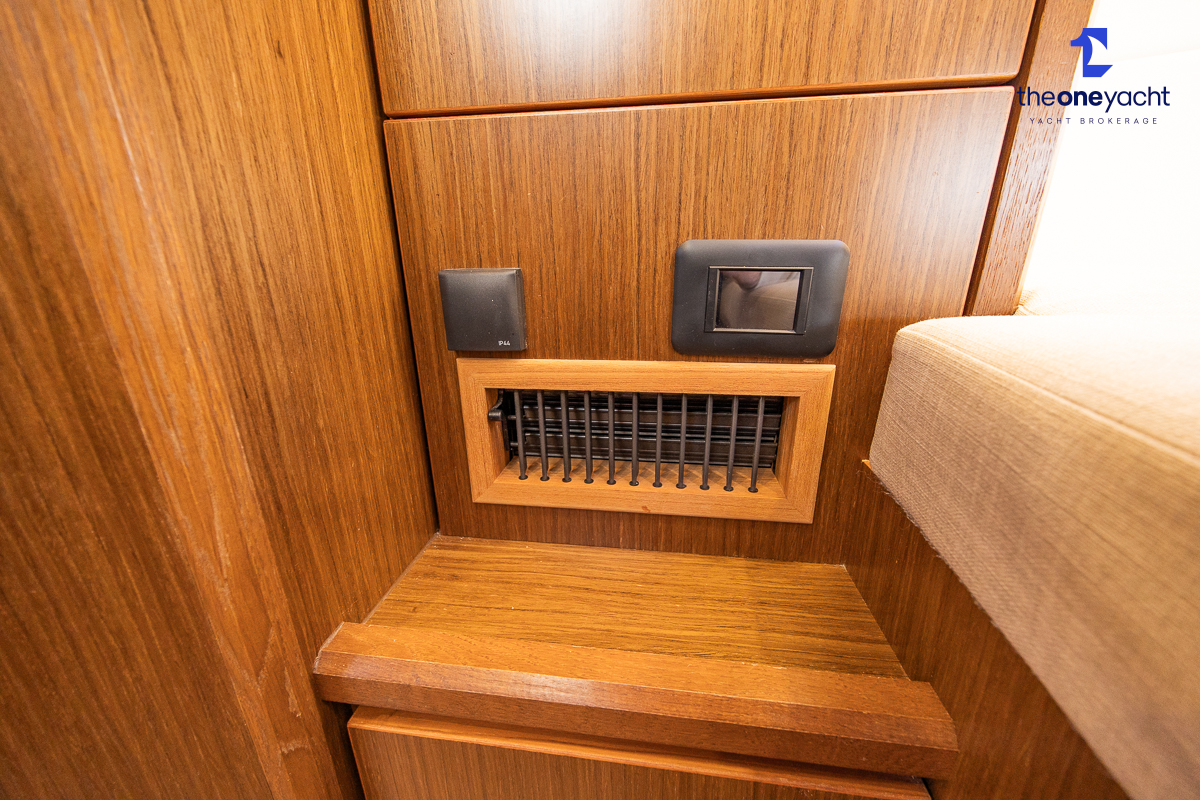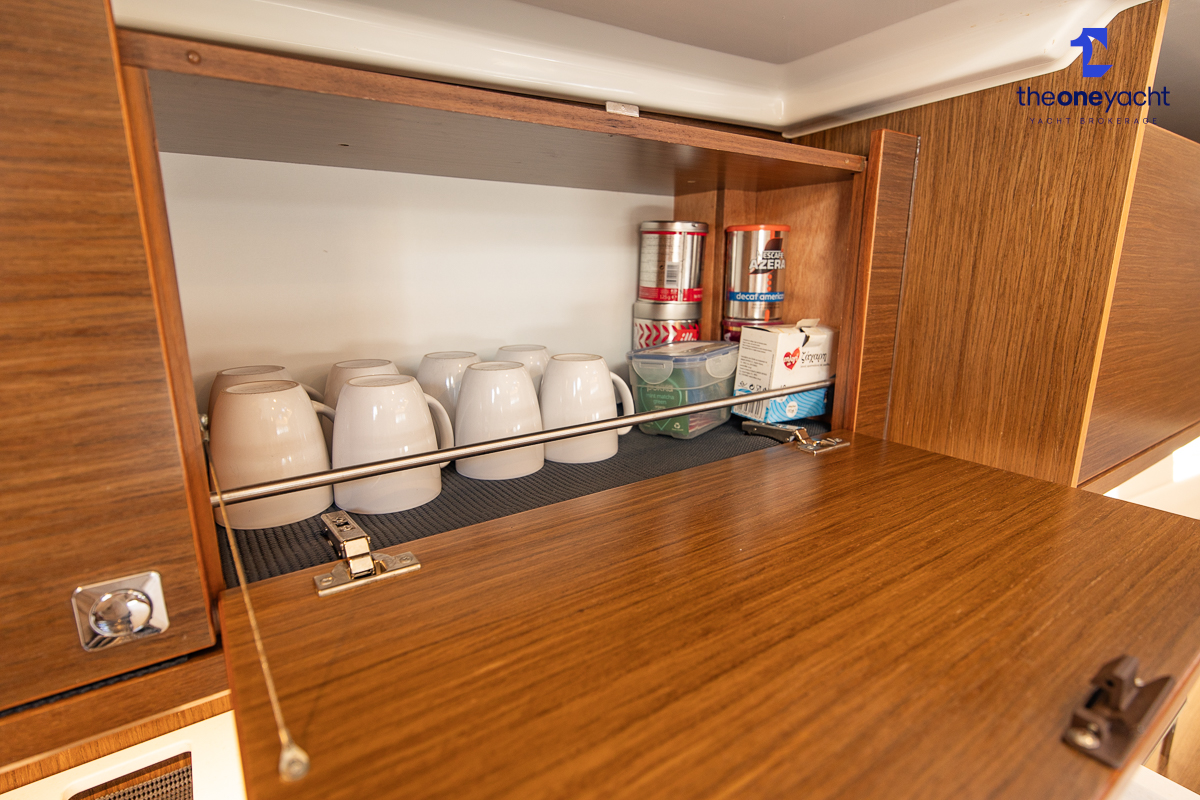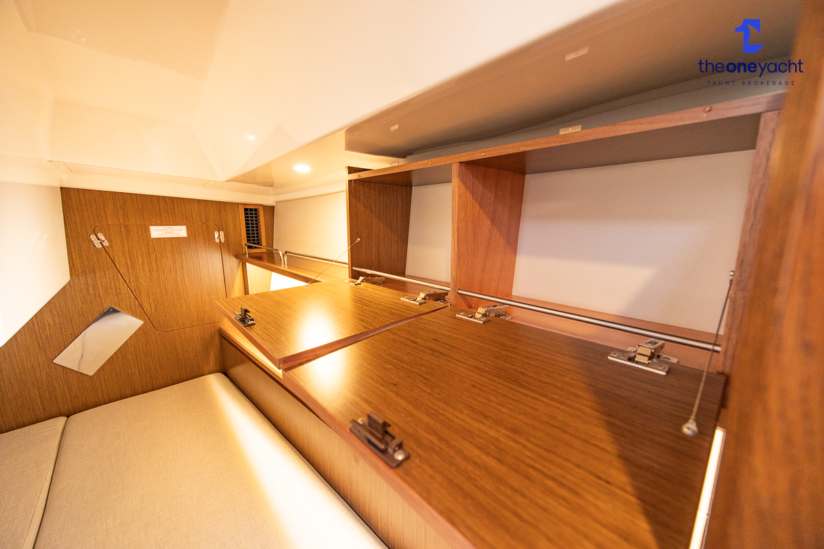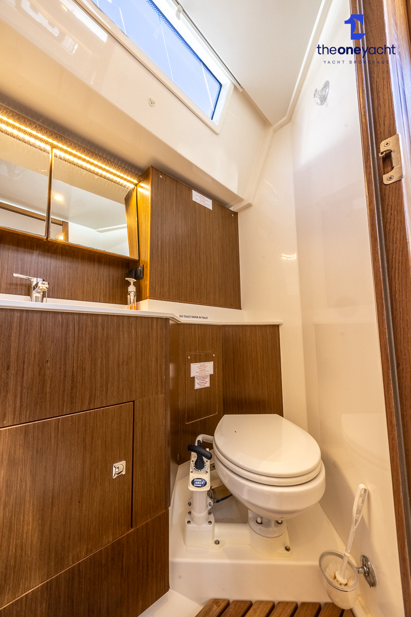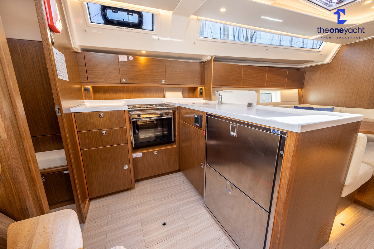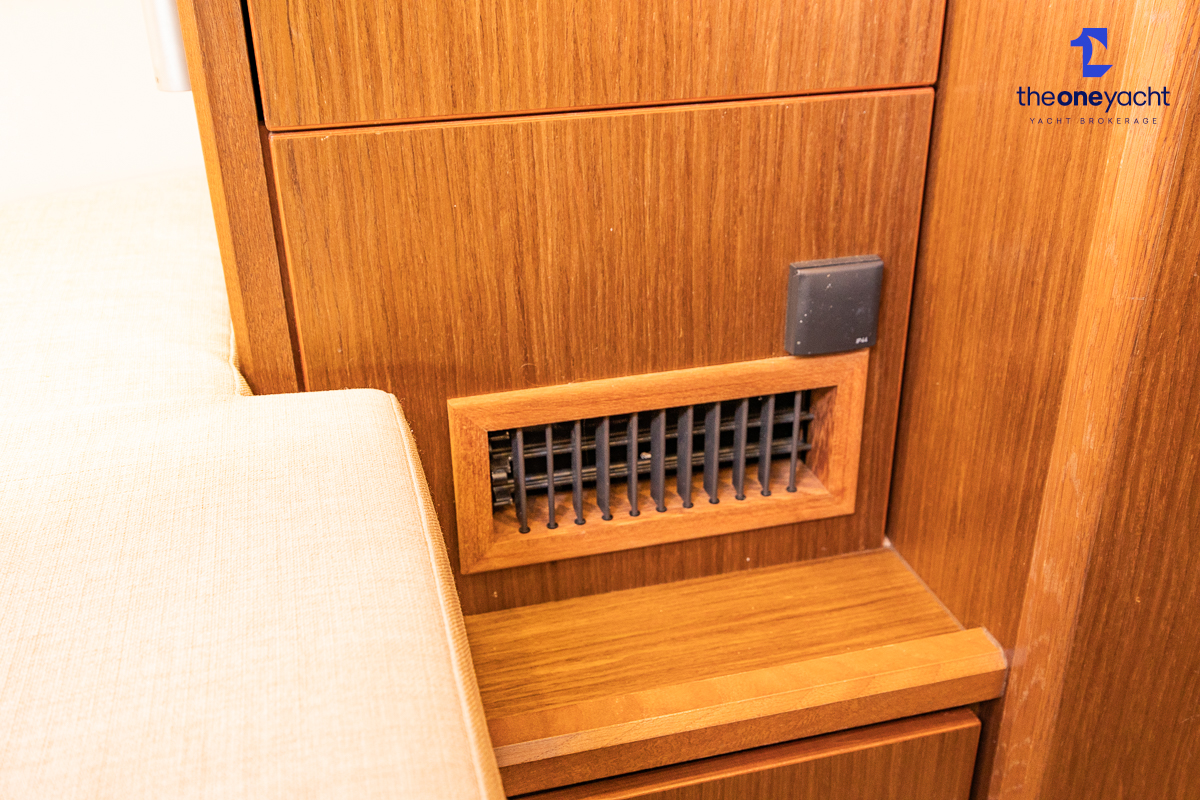 The Bavaria C45 Style offers an exceptionally flexible and luxurious interior layout, designed to maximise both comfort and practicality for extended cruising or entertaining guests onboard. Hummingbird features an innovative 3/4 double cabin arrangement thanks to the desirable forward flex bulkhead cabin system, allowing owners to configure the yacht for either additional sleeping accommodation or expanded owner storage as required. The spacious and beautifully finished walnut interior creates a warm, modern atmosphere throughout, complemented by excellent natural light in the bright open-plan saloon. The electrically convertible saloon table provides an additional double berth, allowing for further guest accommodation when needed. Three heads and three showers, including a dedicated standalone shower enclosure in the starboard aft section, ensure outstanding onboard convenience and privacy, making the C45 one of the most practical yachts in her class for liveaboard use, family cruising, or charter potential.