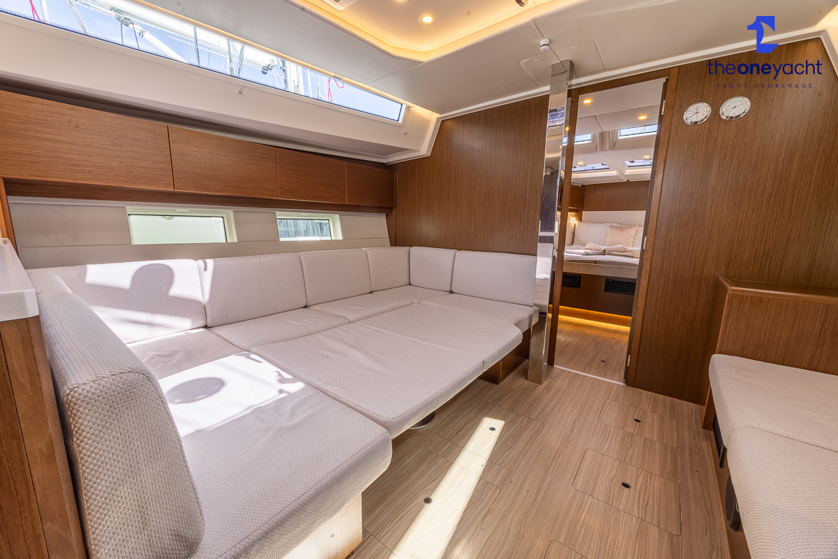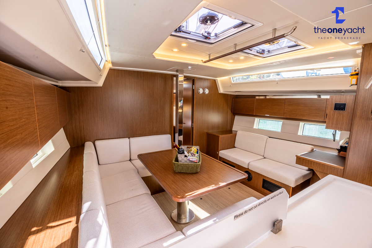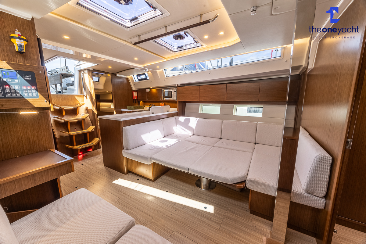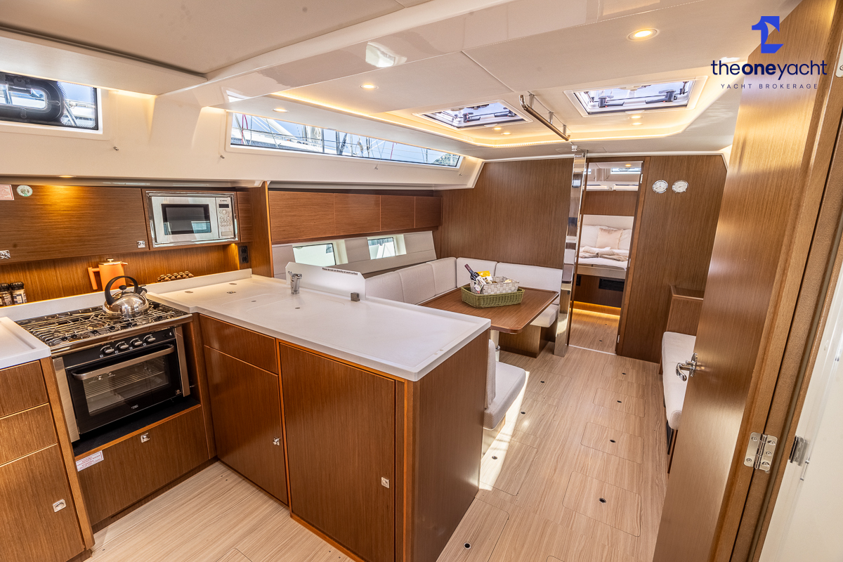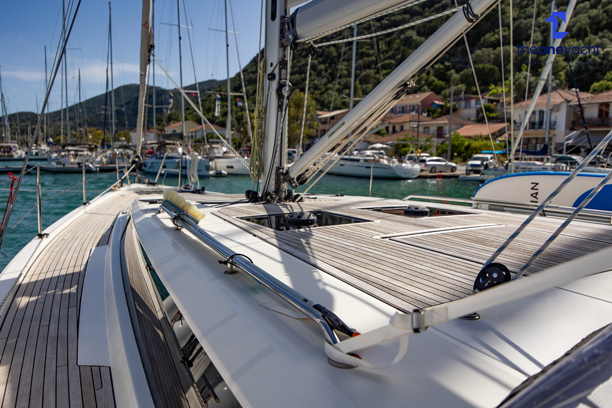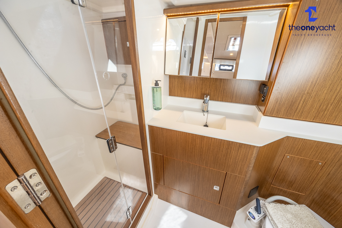 Notable onboard equipment and features include 3 Double Cabins + Electric Table Conversion, 2 Heads and 2 Showers (Inc. 1 Standalone shower enclosure starboard aft), In- mast Reefing, 2 x Lewmar Size 50 halyard winches, electrical, Yanmar 4JH80 Saildrive Engine 80hp.