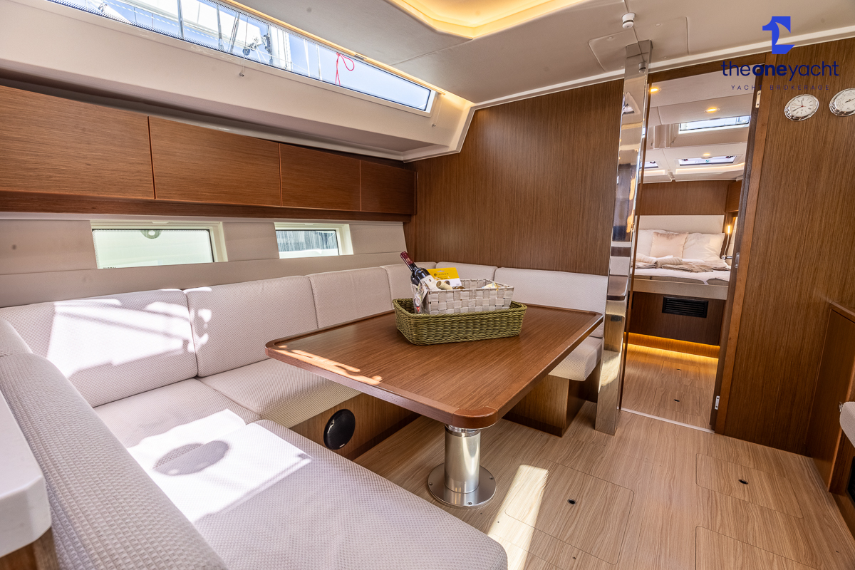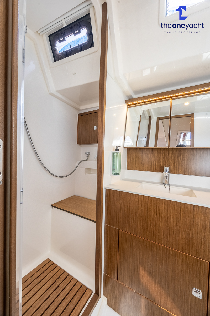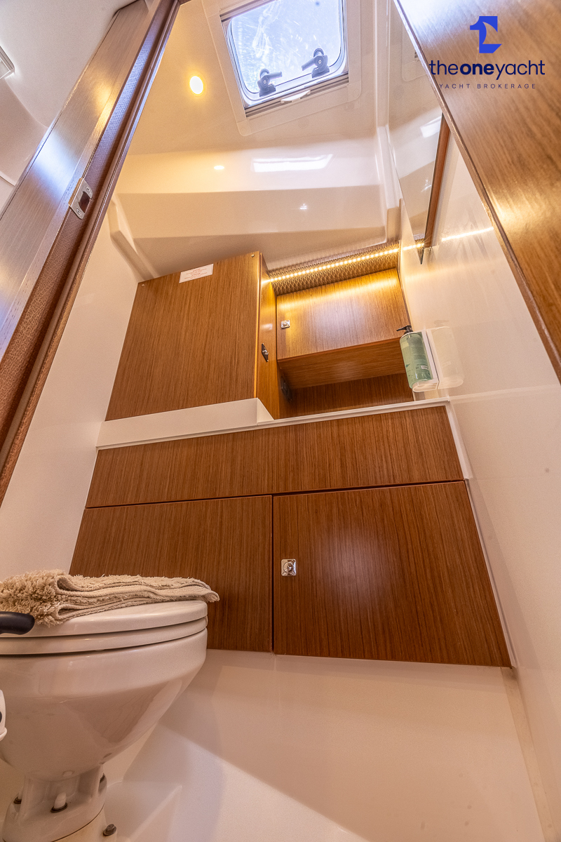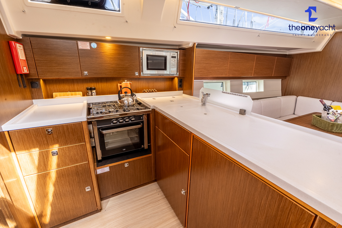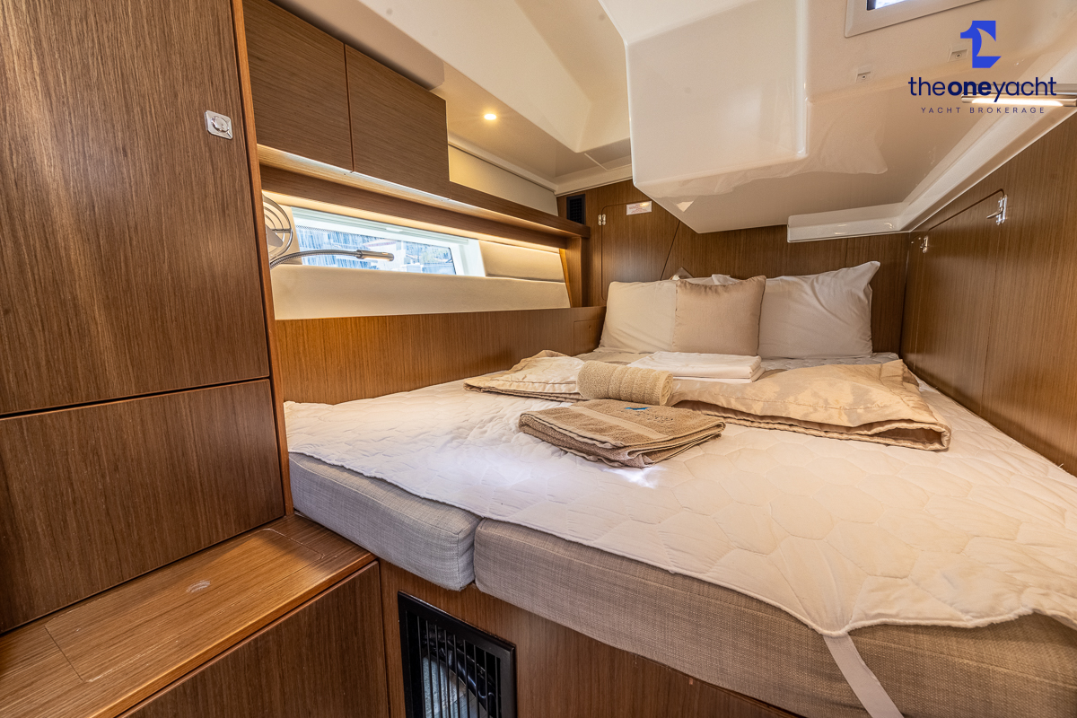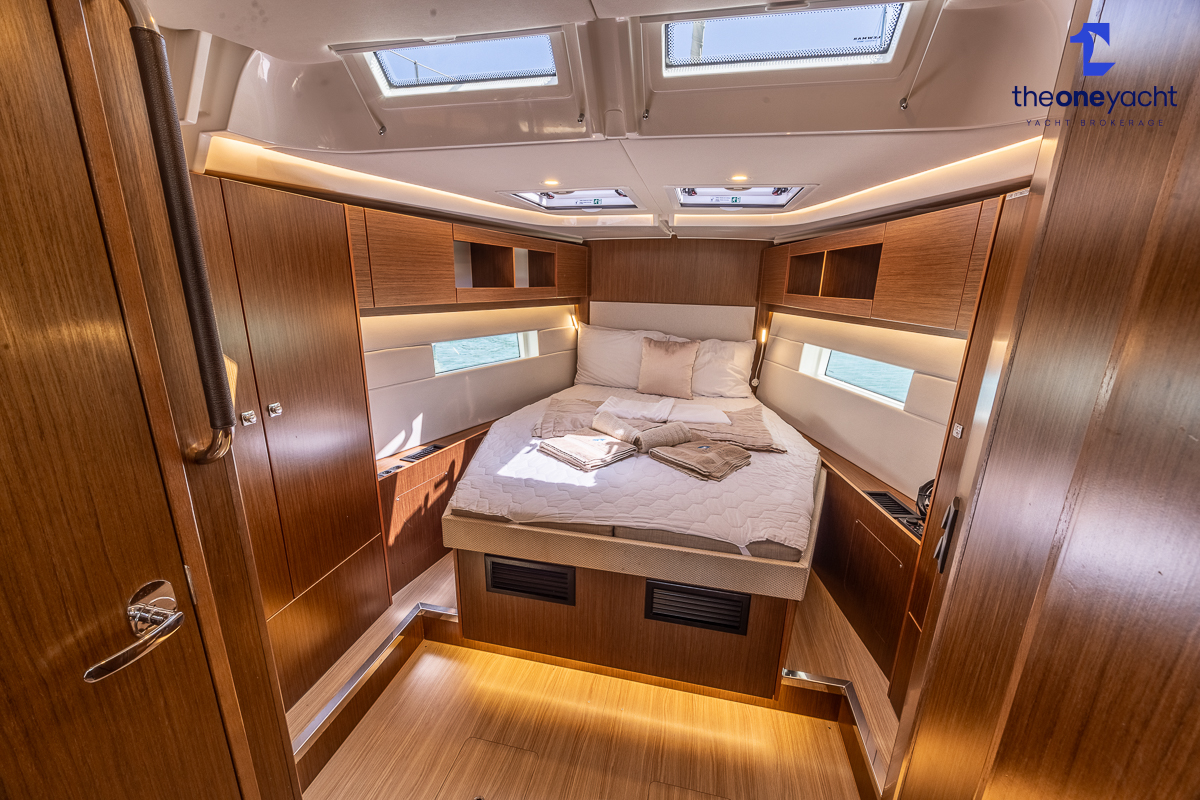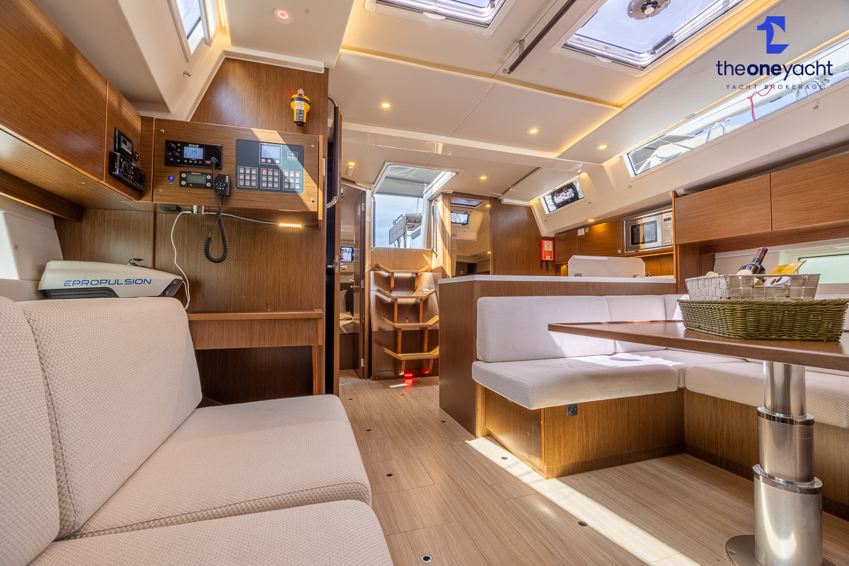 Notable onboard equipment and features include 3 Double Cabins + Electric Table Conversion, 2 Heads and 2 Showers (Inc. 1 Standalone shower enclosure starboard aft), In- mast Reefing, 2 x Lewmar Size 50 halyard winches, electrical, Yanmar 4JH80 Saildrive Engine 80hp.