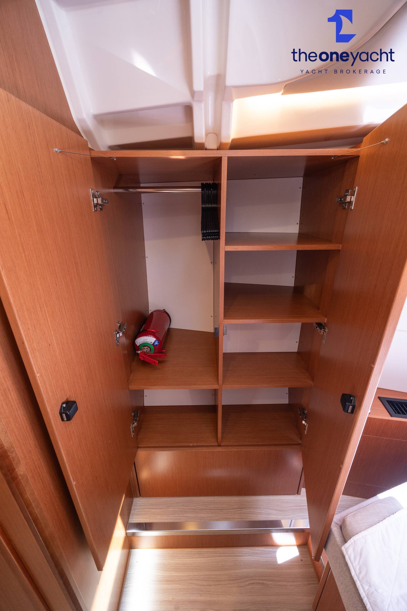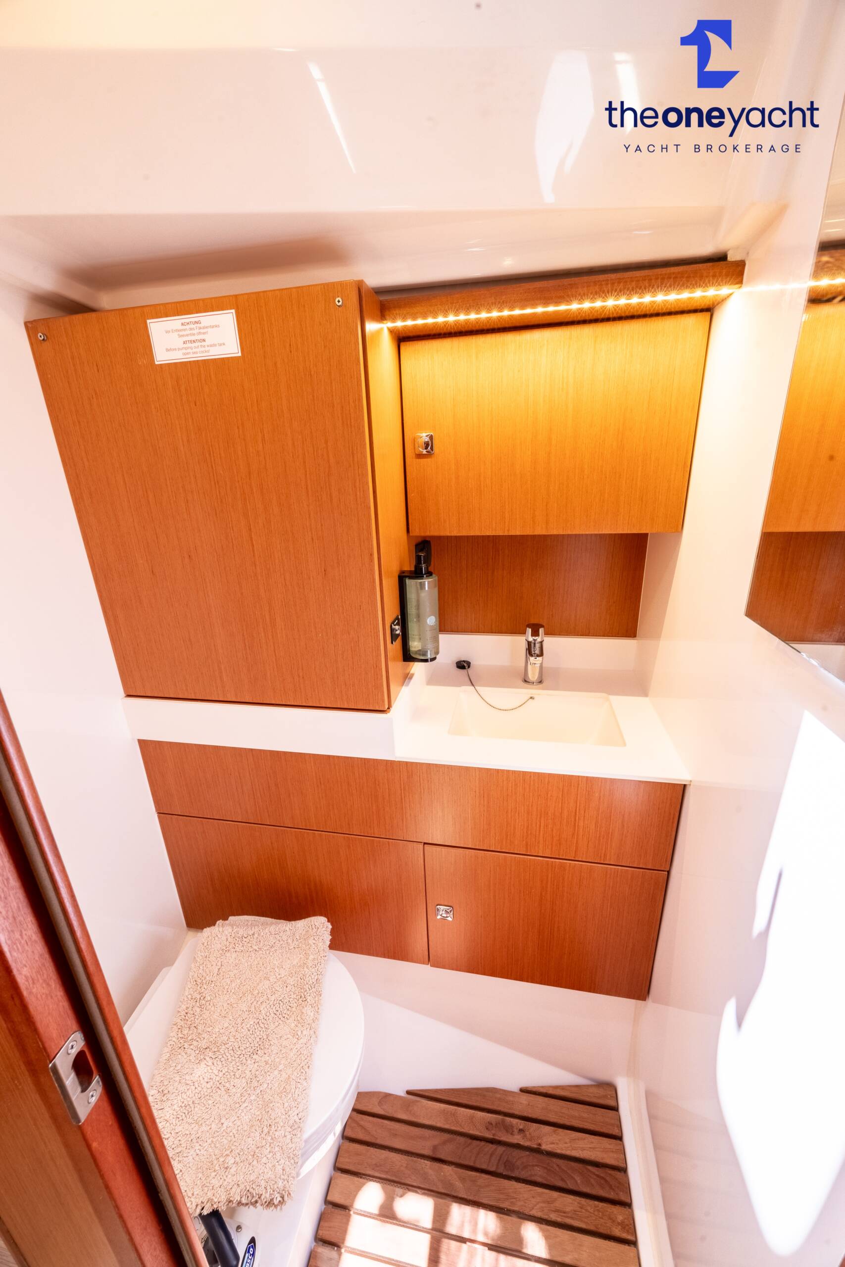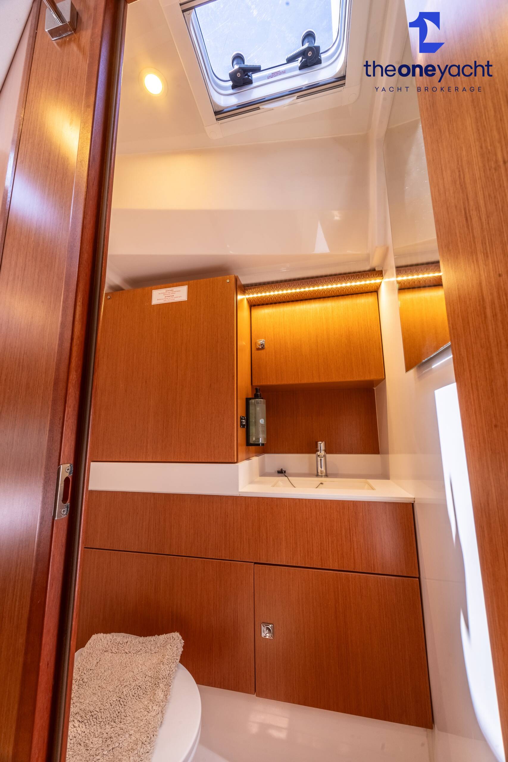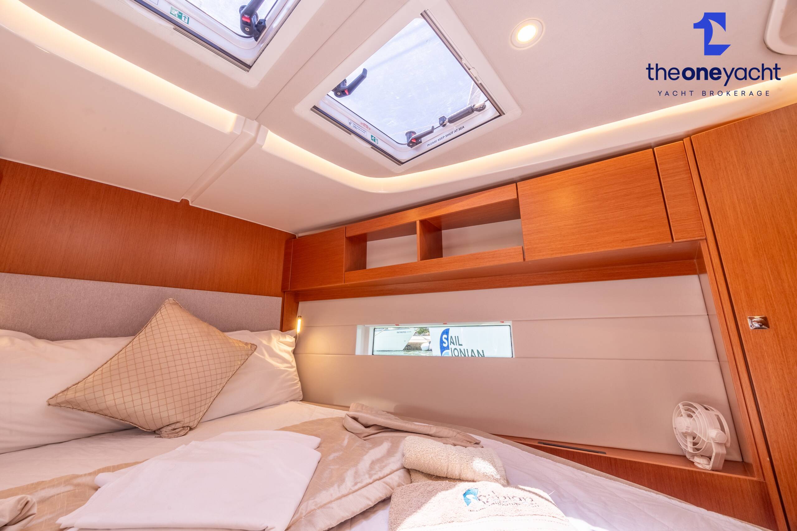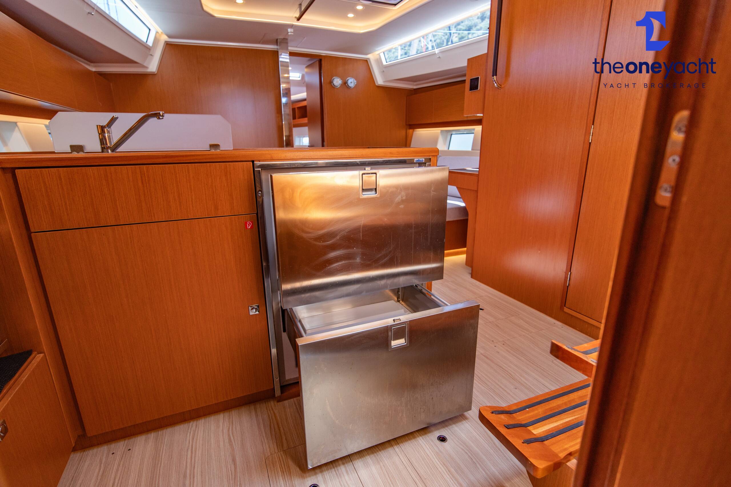 Calista features a spacious and versatile three-cabin layout with additional saloon berth conversion, creating comfortable accommodation for family cruising or charter guests. The forward owner’s cabin offers generous space and premium finishes, while two aft double cabins provide excellent guest accommodation. Her bright walnut-finished saloon is modern and elegant, featuring a lowerable electric dining table that converts into an additional double berth. Two well-appointed heads serve the yacht, including a highly desirable separate shower enclosure in the starboard aft compartment, offering exceptional practicality and comfort for longer stays aboard.
