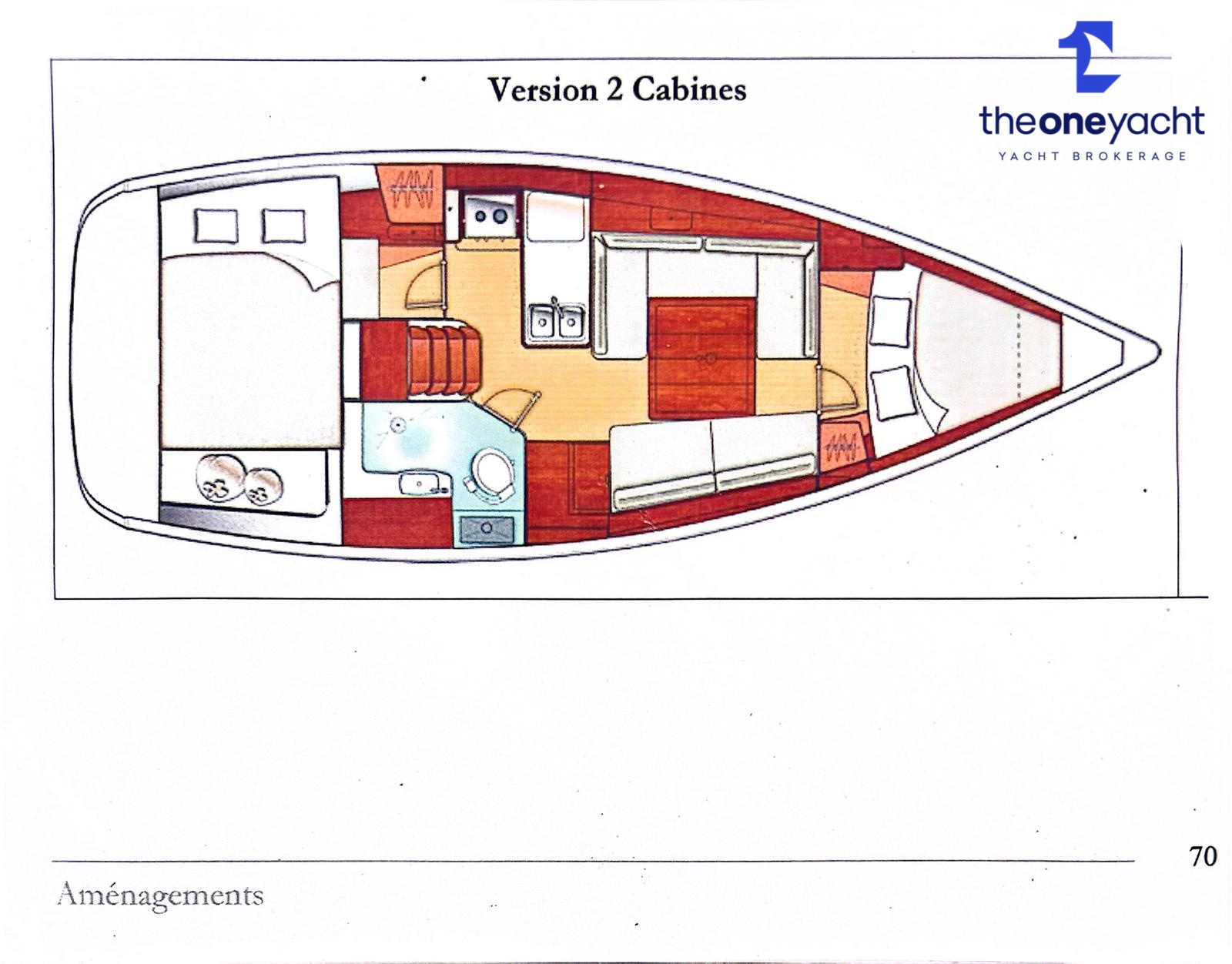 The Beneteau Oceanis 34 Limited Edition offers a bright and intelligently designed two-cabin layout, combining practical cruising comfort with impressive interior volume for a yacht of her size. Accommodation includes two comfortable double cabins providing ideal sleeping arrangements for couples, families, or guests, while the spacious saloon creates a welcoming central living area with generous seating and dining space. A practical galley and dedicated navigation station complement the interior, while the well-positioned heads compartment offers convenient access and onboard comfort. Designed with both functionality and comfort in mind, her layout makes her an excellent choice for coastal cruising, extended weekends aboard, or Mediterranean liveaboard adventures.