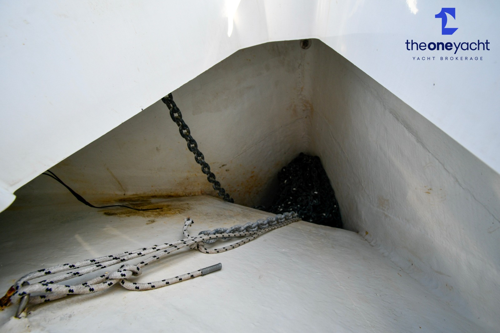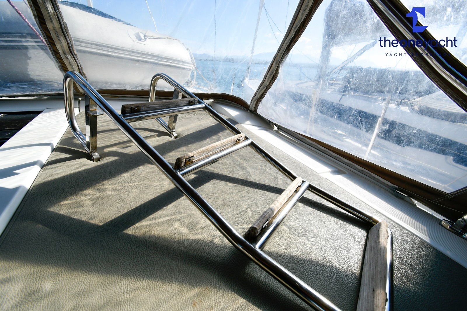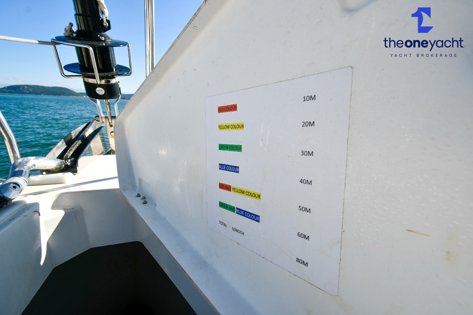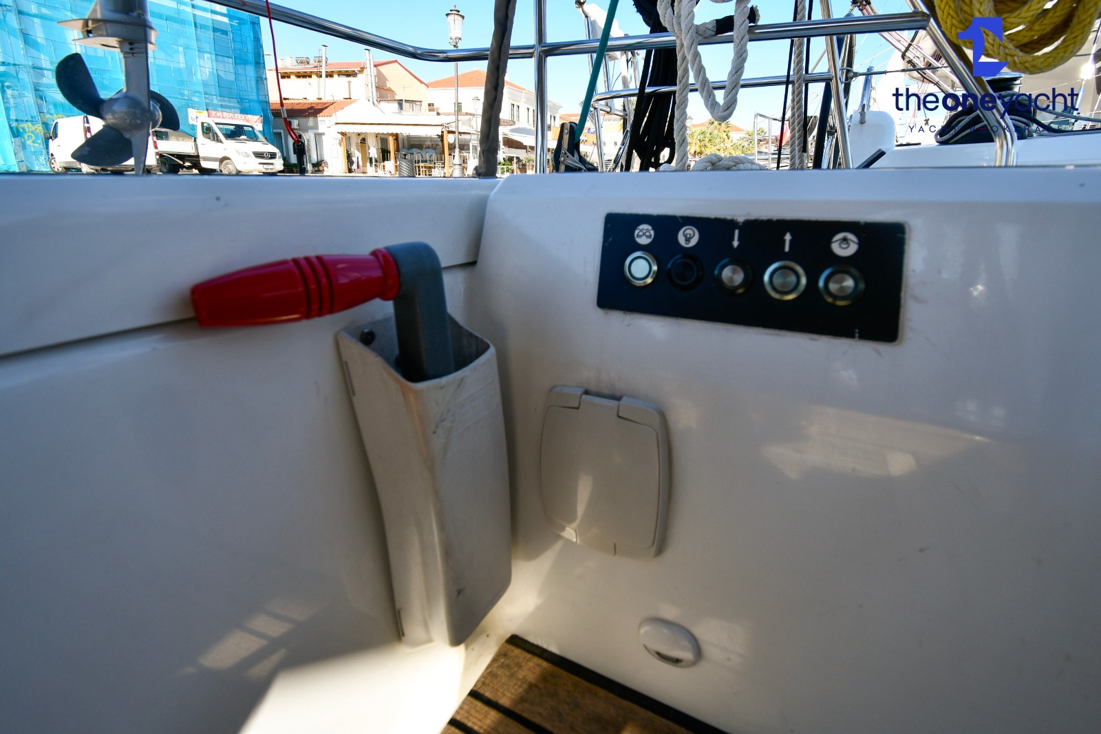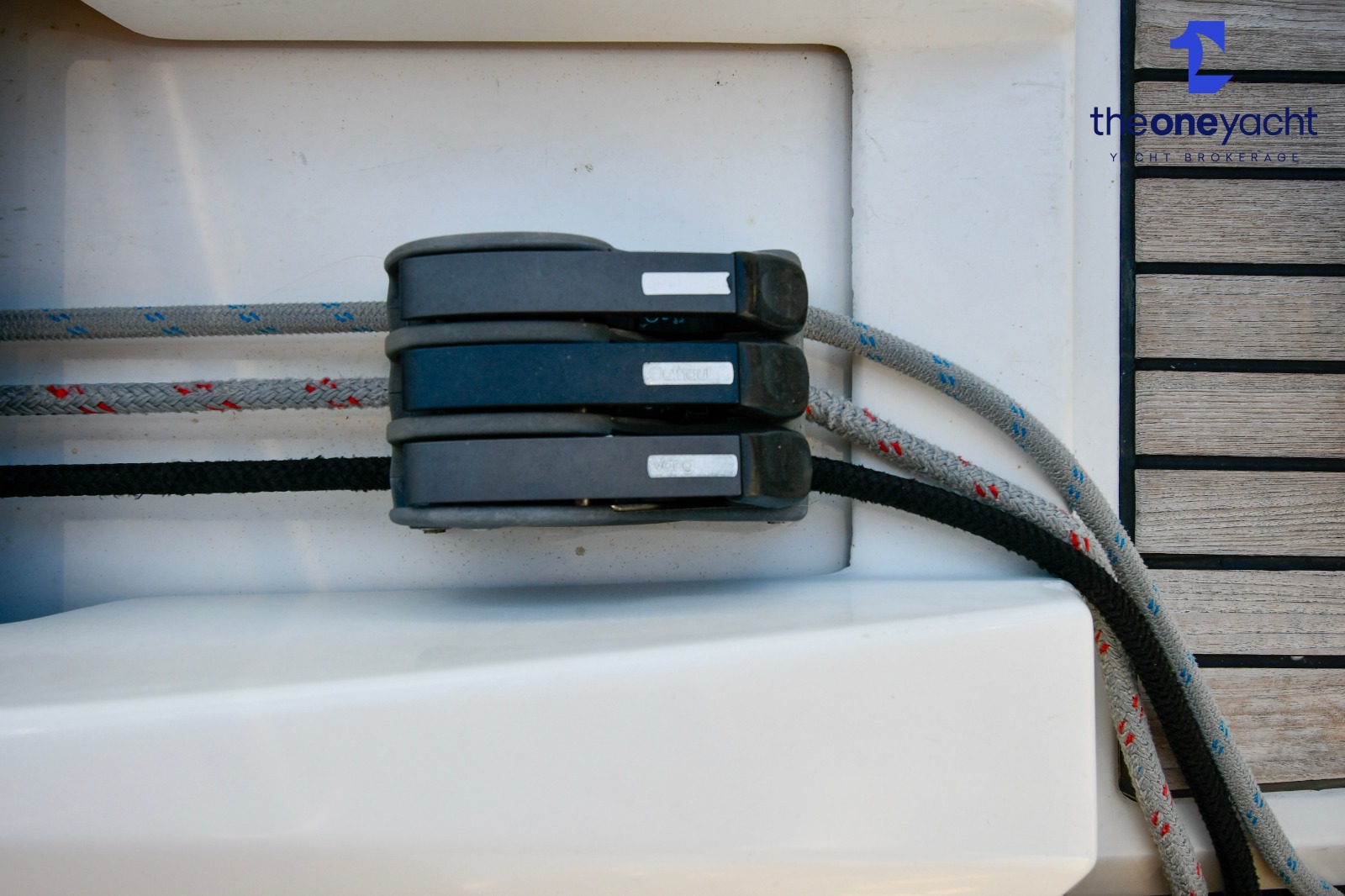 Notable onboard equipment and features include Dacron full-battened mainsail & roller-furling genoa self tacking, Cockpit-adjustable genoa traveler, clutches, and backstay, 80HP Yanmar engine – powerful and efficient, Bow thruster (Side Power) for easy docking and tight maneuvering, Fixed boomvang for precise sail control.