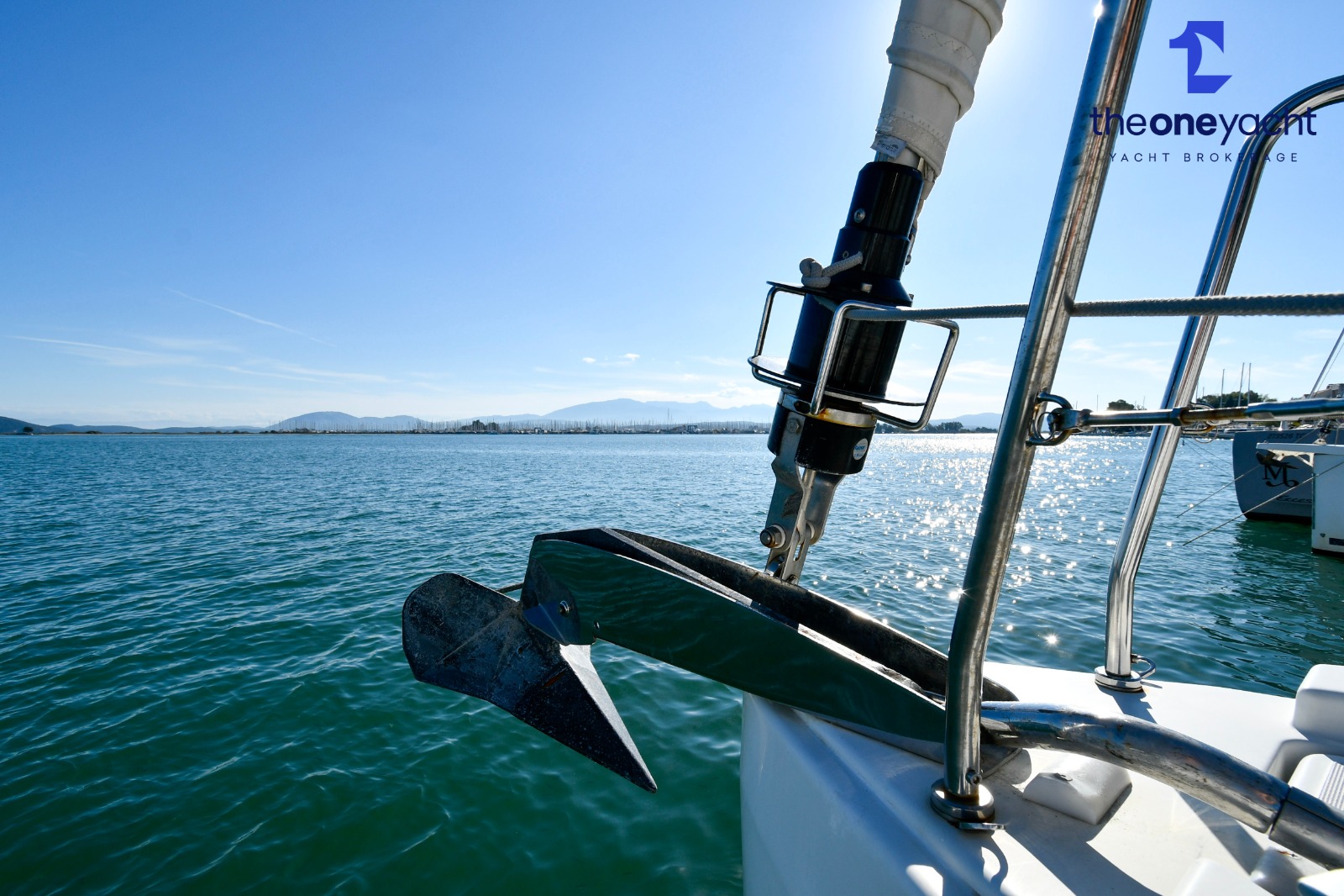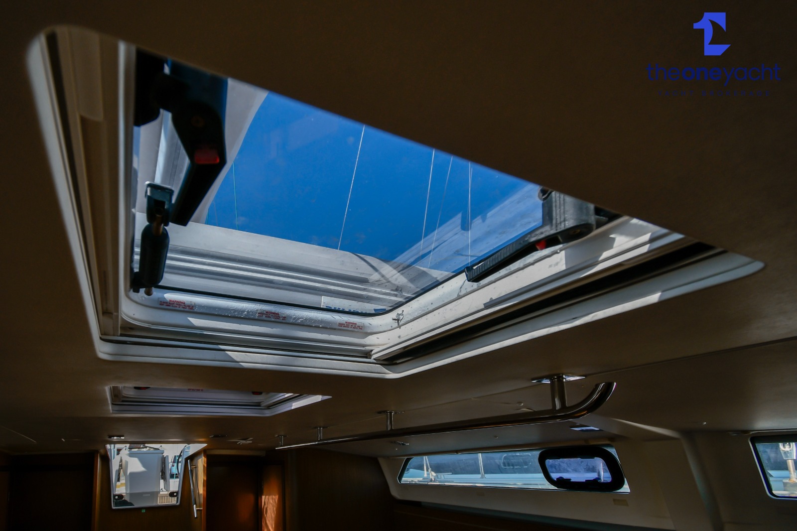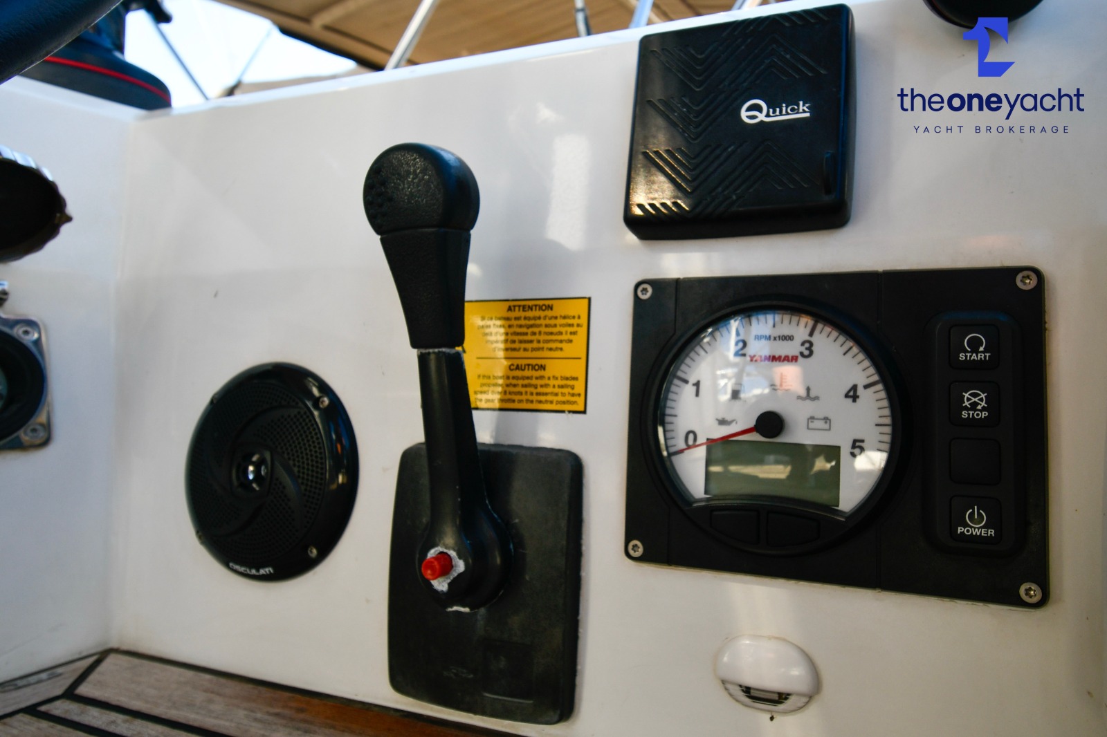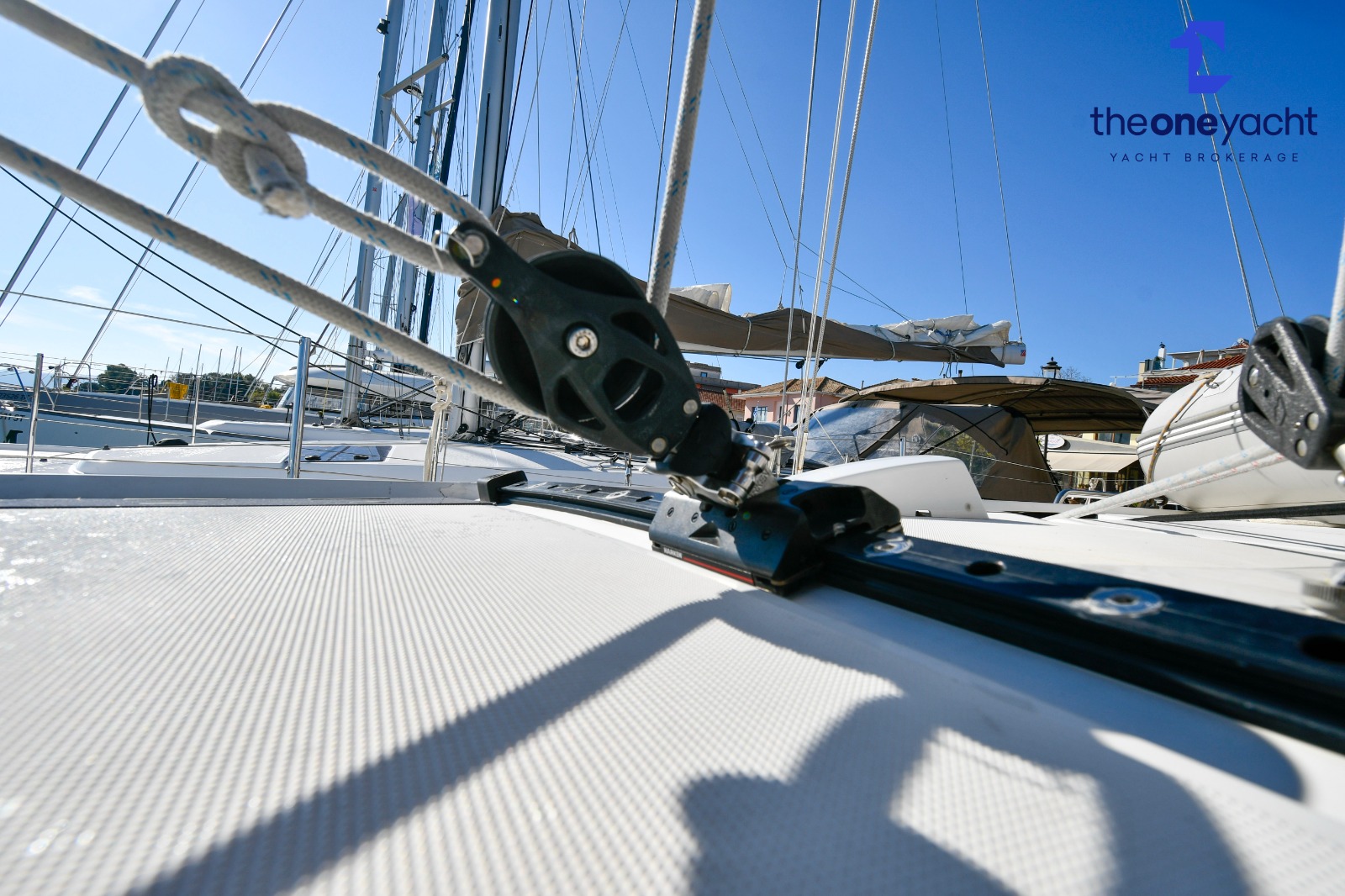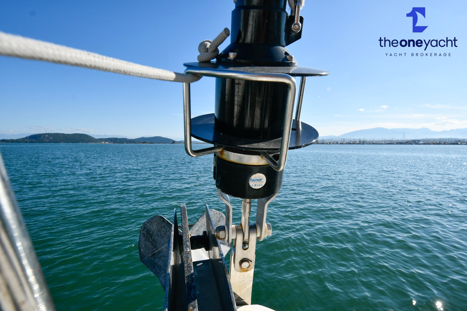 Notable onboard equipment and features include Dacron full-battened mainsail & roller-furling genoa self tacking, Cockpit-adjustable genoa traveler, clutches, and backstay, 80HP Yanmar engine – powerful and efficient, Bow thruster (Side Power) for easy docking and tight maneuvering, Fixed boomvang for precise sail control.