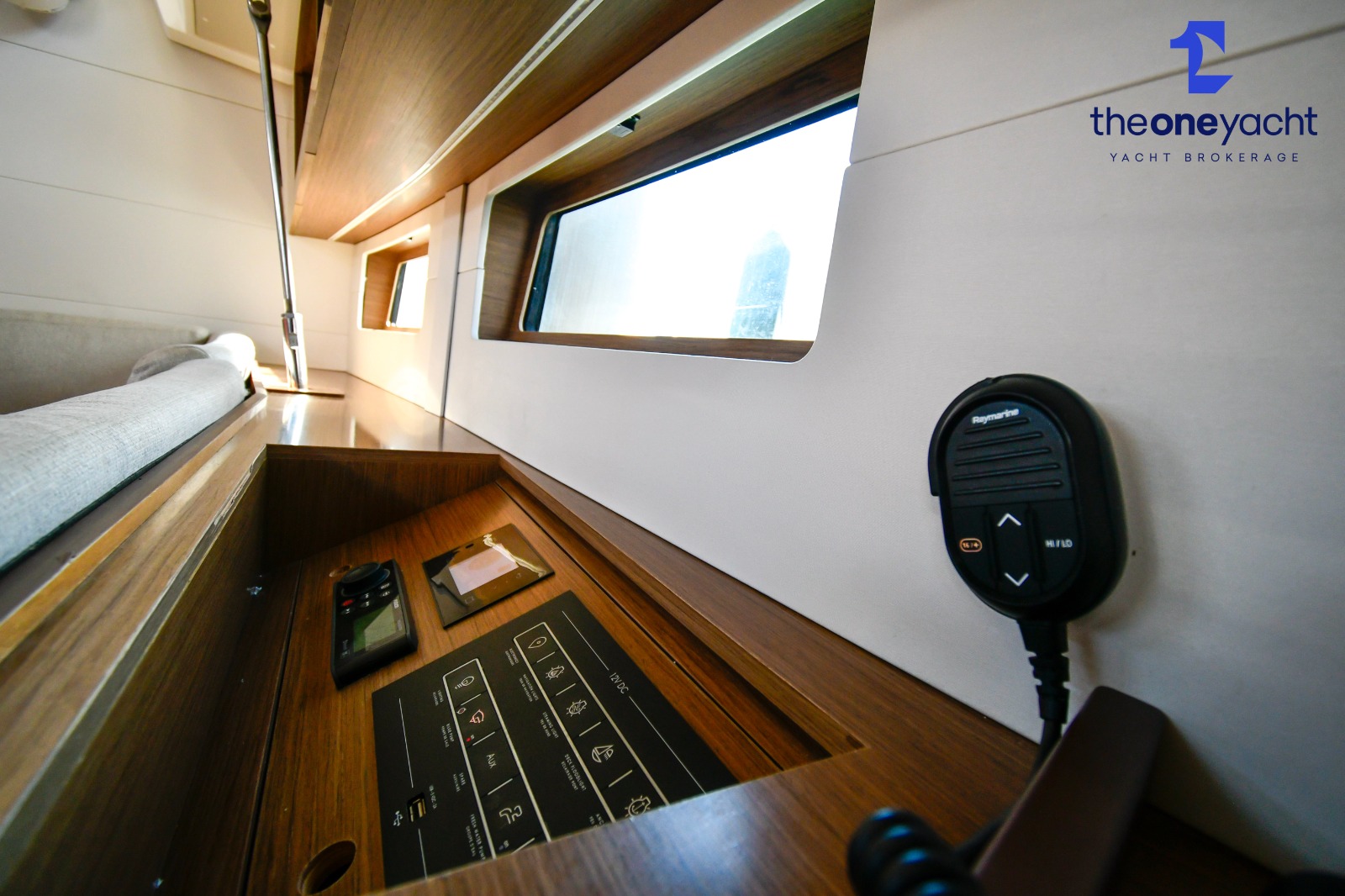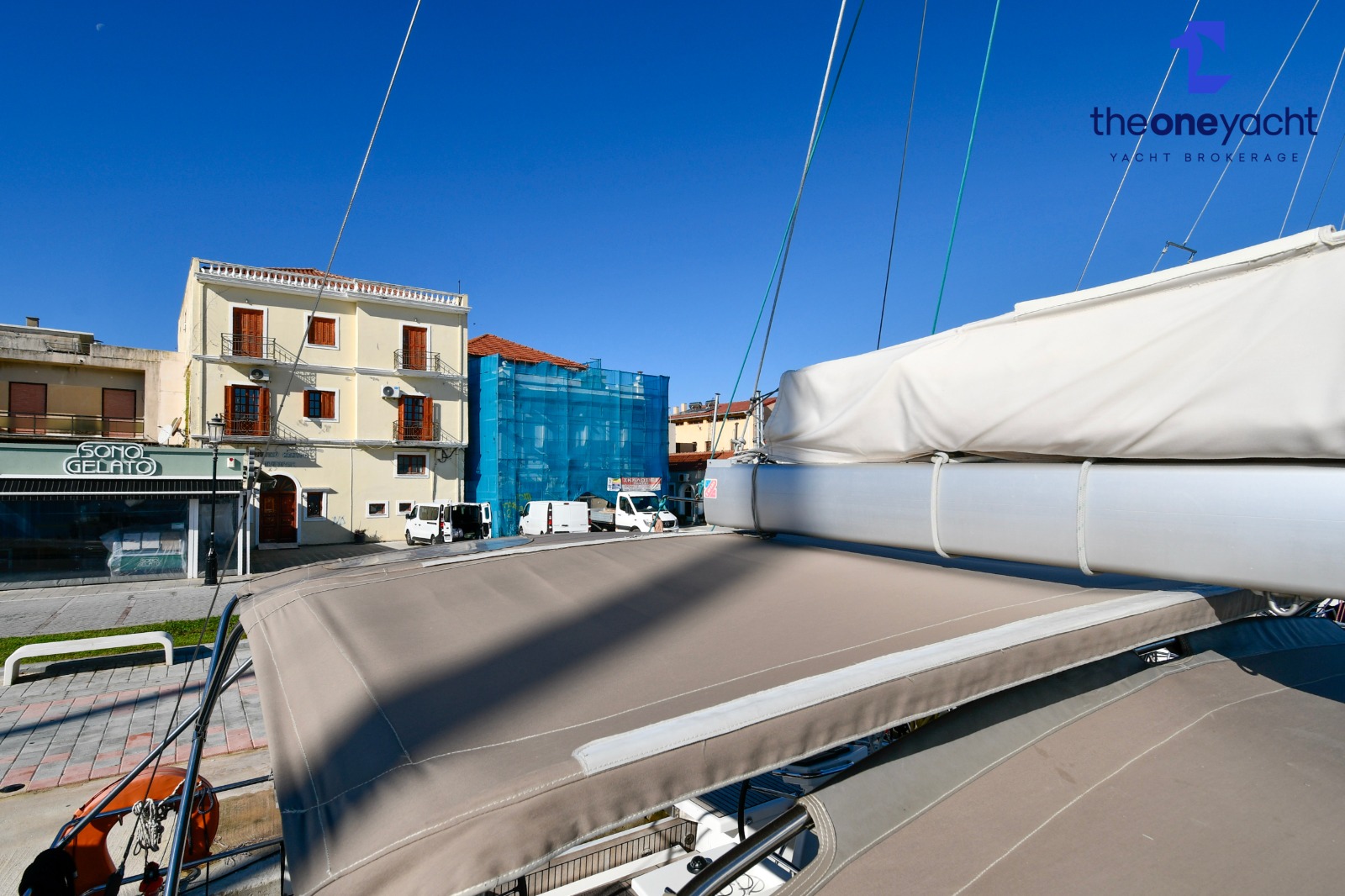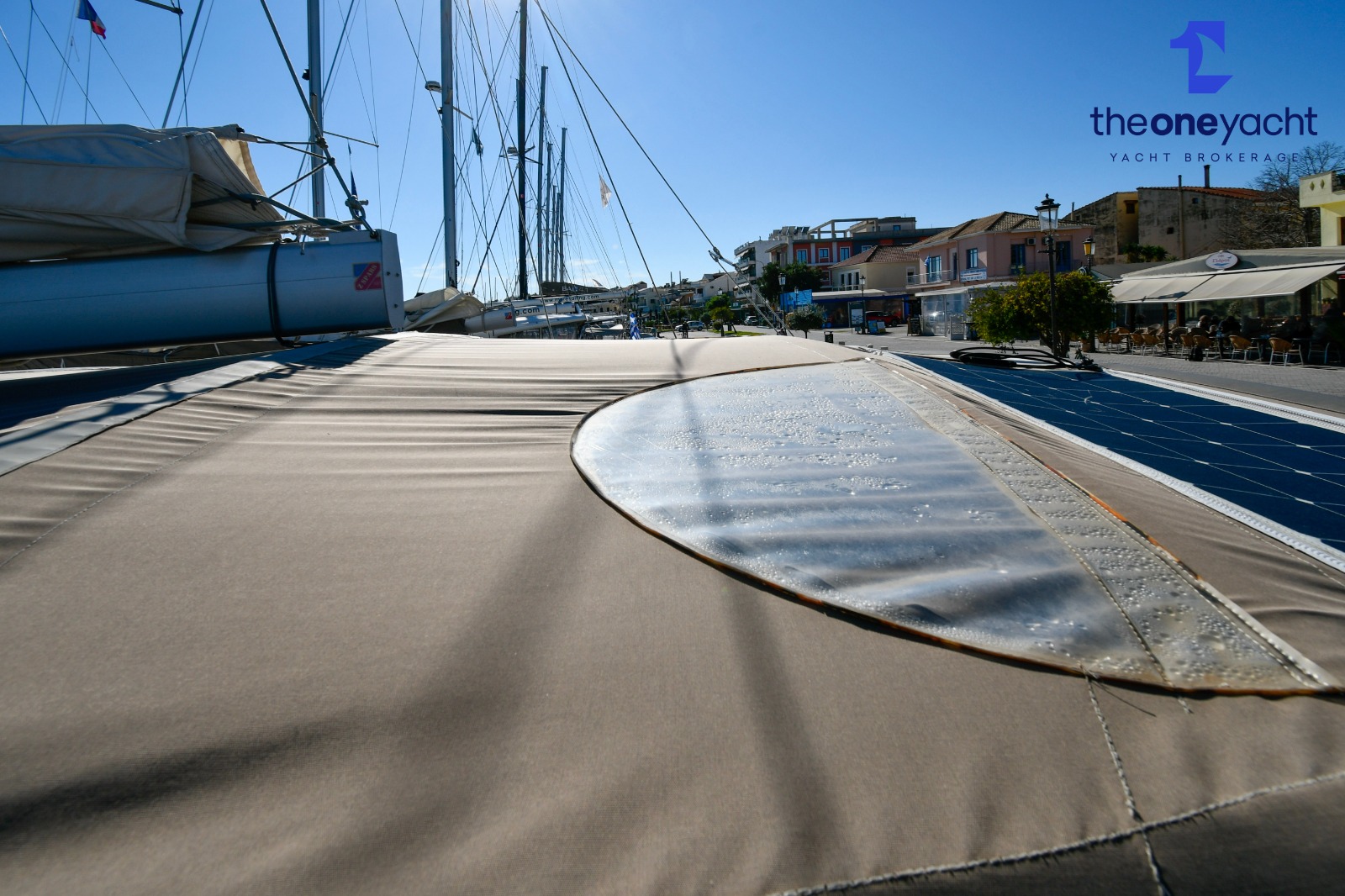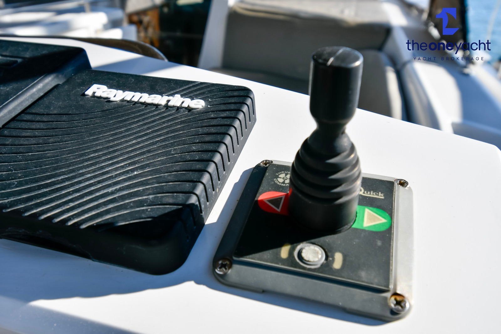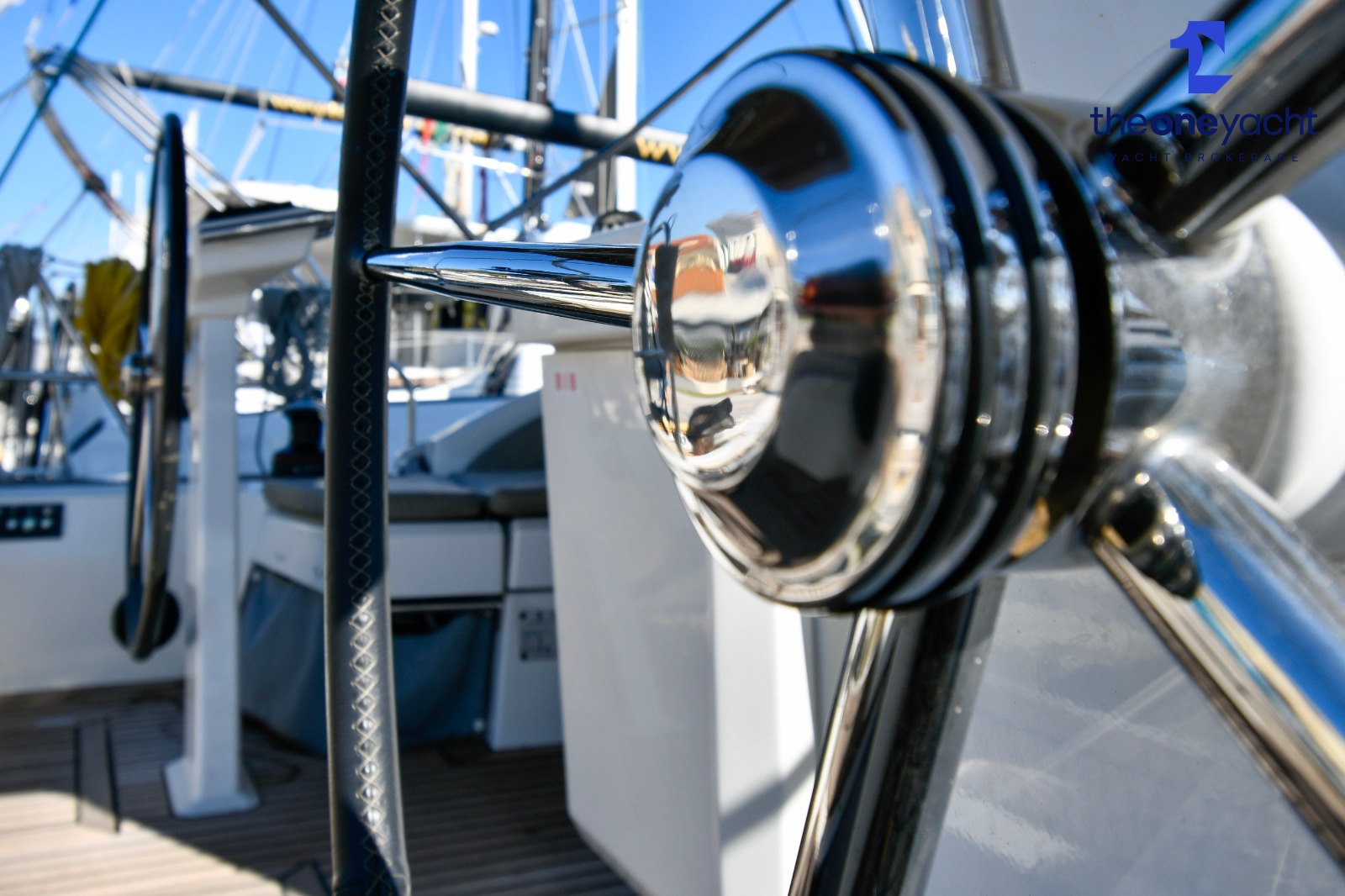 Notable onboard equipment and features include Dacron full-battened mainsail & roller-furling genoa self tacking, Cockpit-adjustable genoa traveler, clutches, and backstay, 80HP Yanmar engine – powerful and efficient, Bow thruster (Side Power) for easy docking and tight maneuvering, Fixed boomvang for precise sail control.