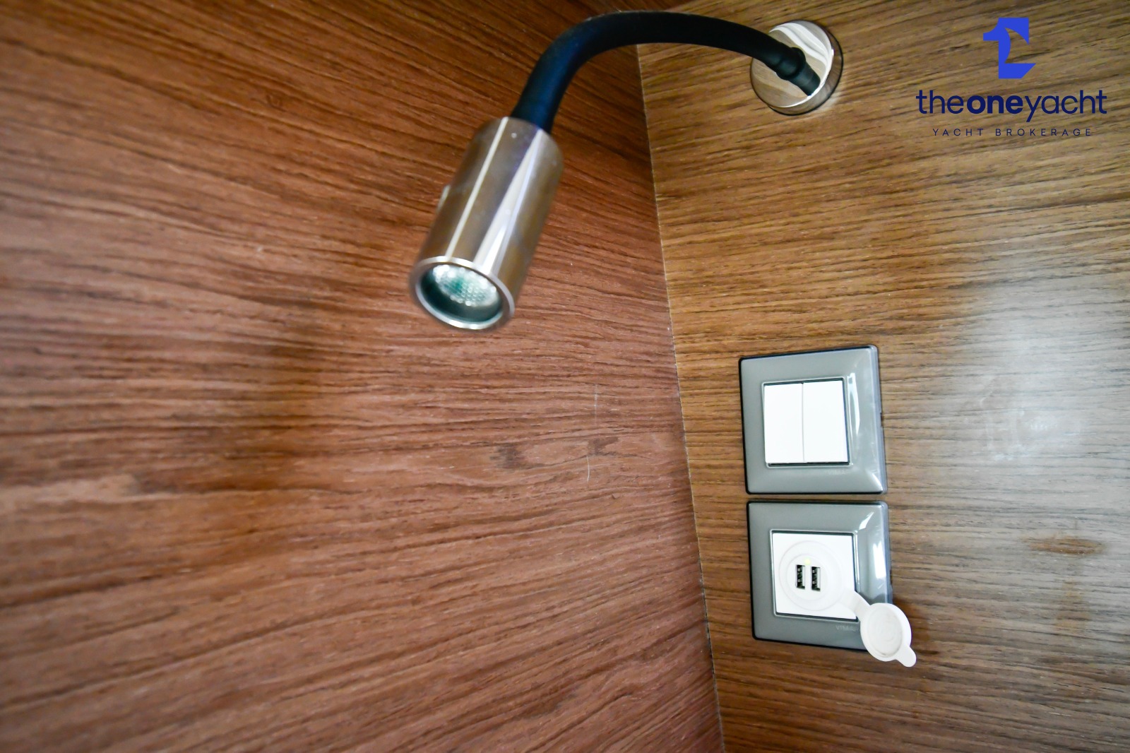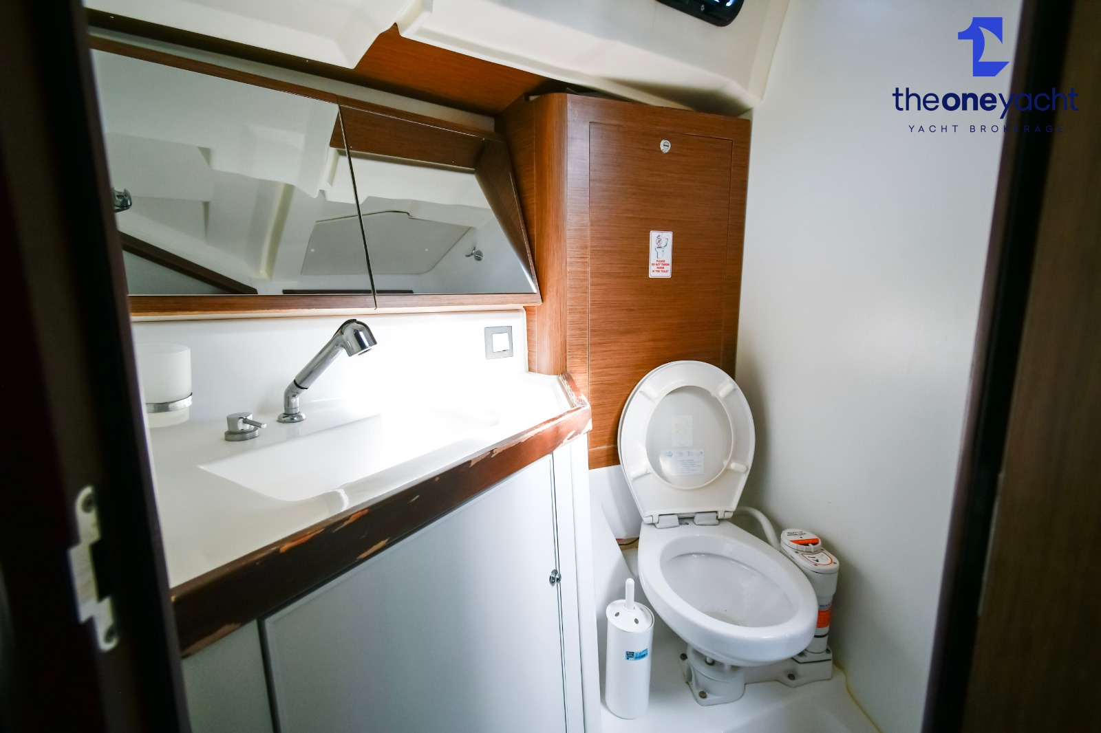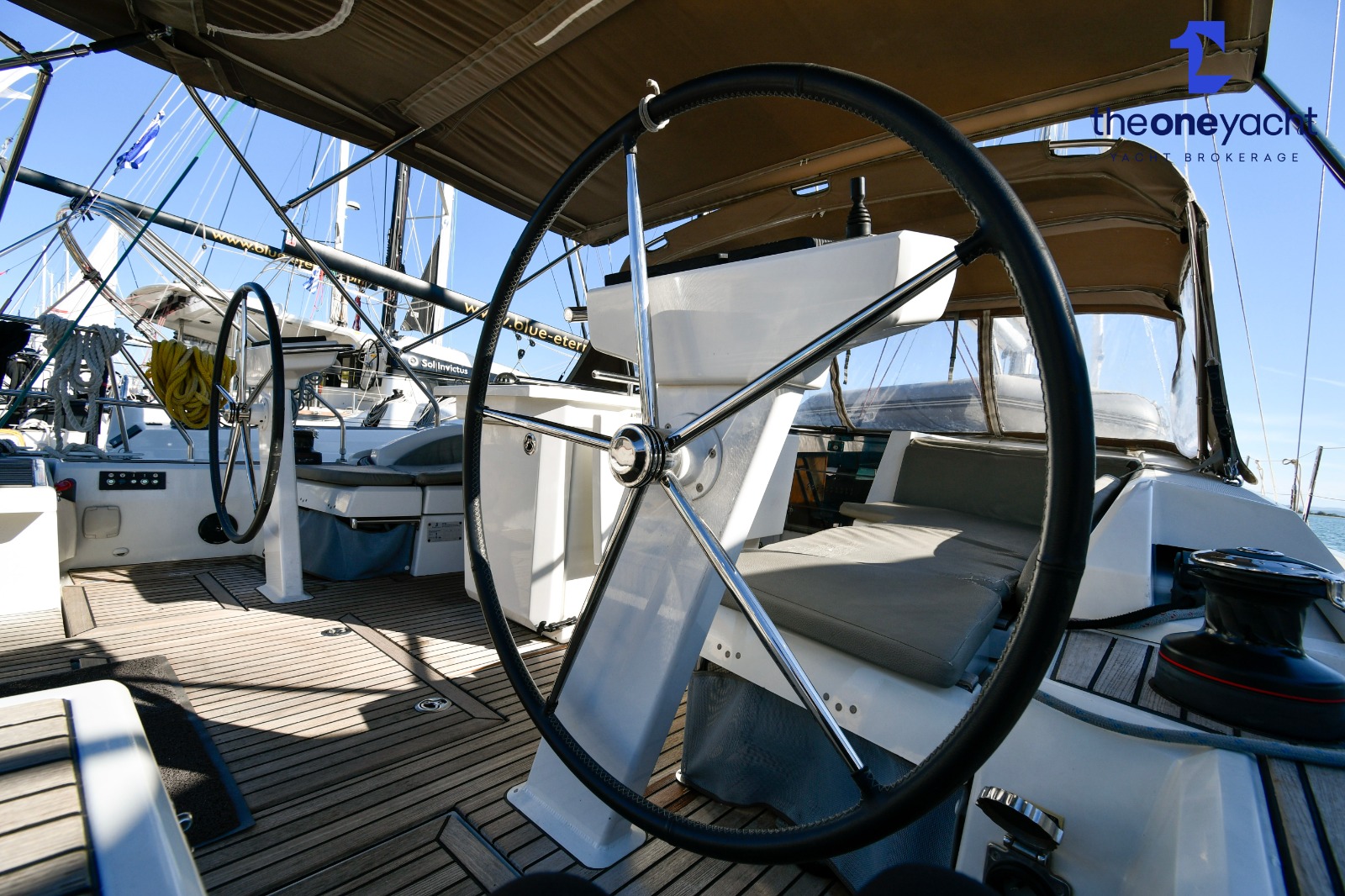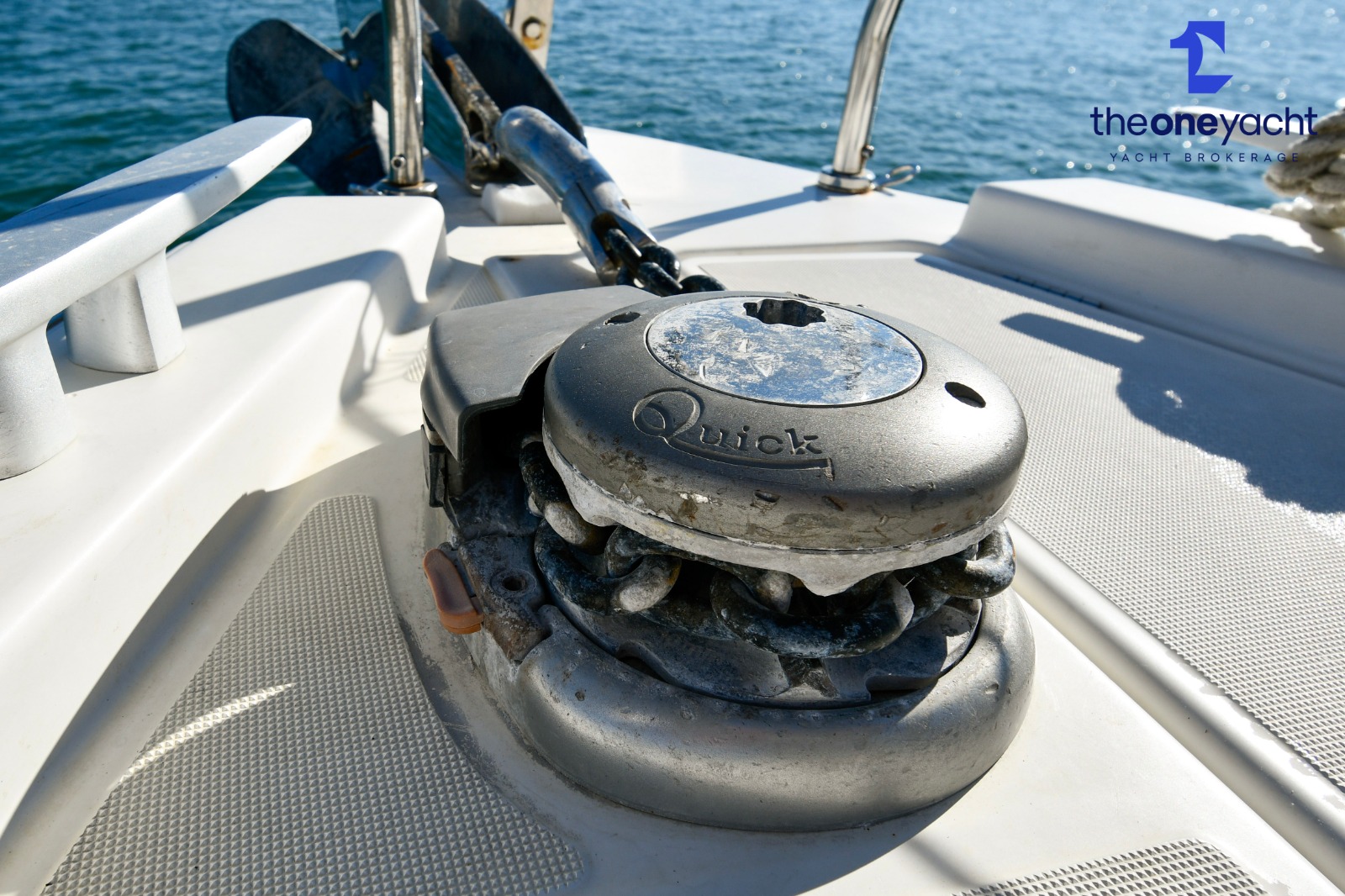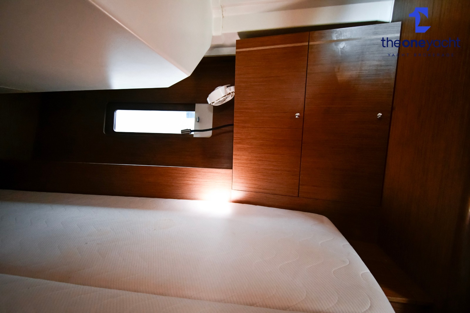 Notable onboard equipment and features include Dacron full-battened mainsail & roller-furling genoa self tacking, Cockpit-adjustable genoa traveler, clutches, and backstay, 80HP Yanmar engine – powerful and efficient, Bow thruster (Side Power) for easy docking and tight maneuvering, Fixed boomvang for precise sail control.