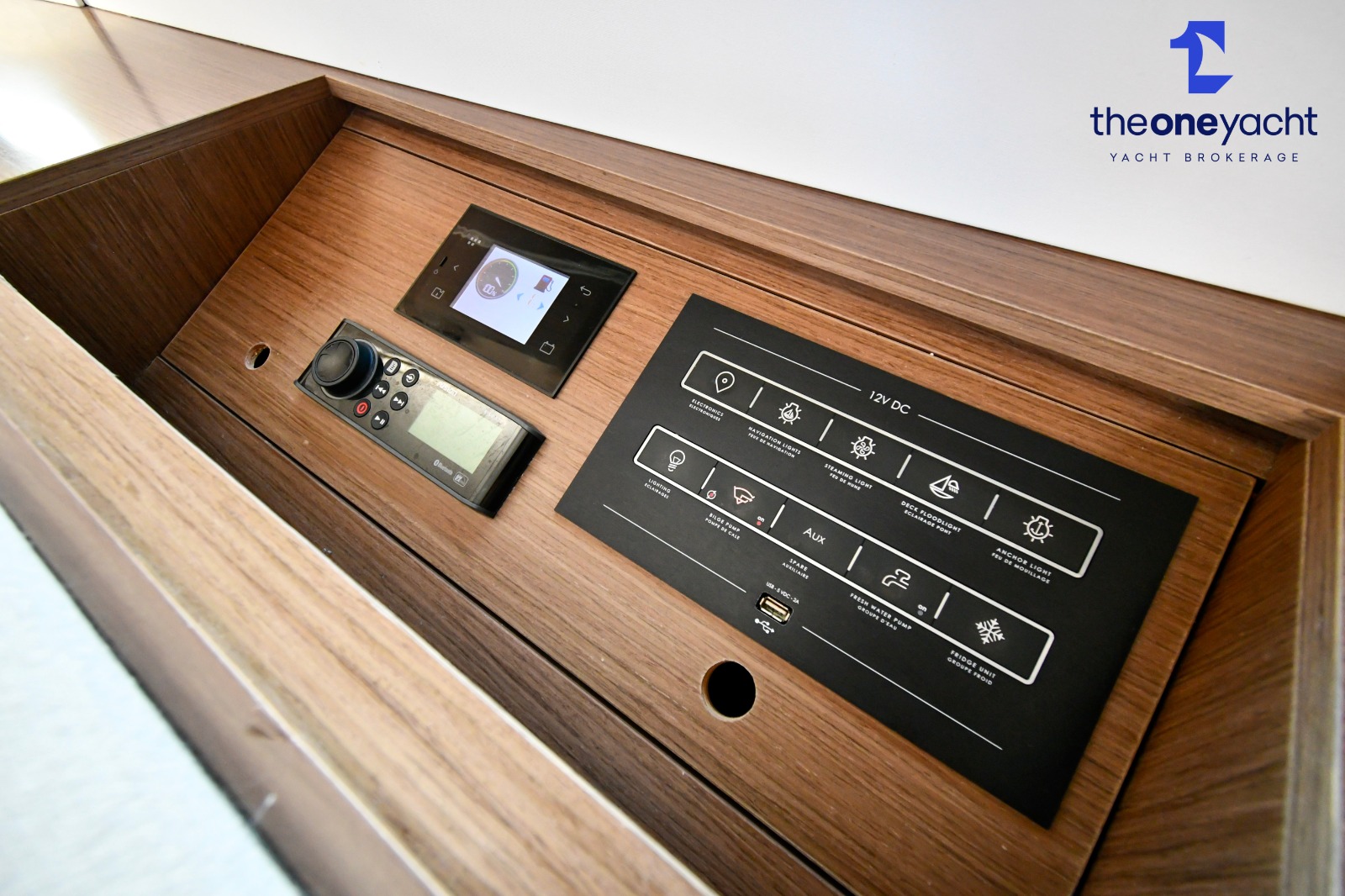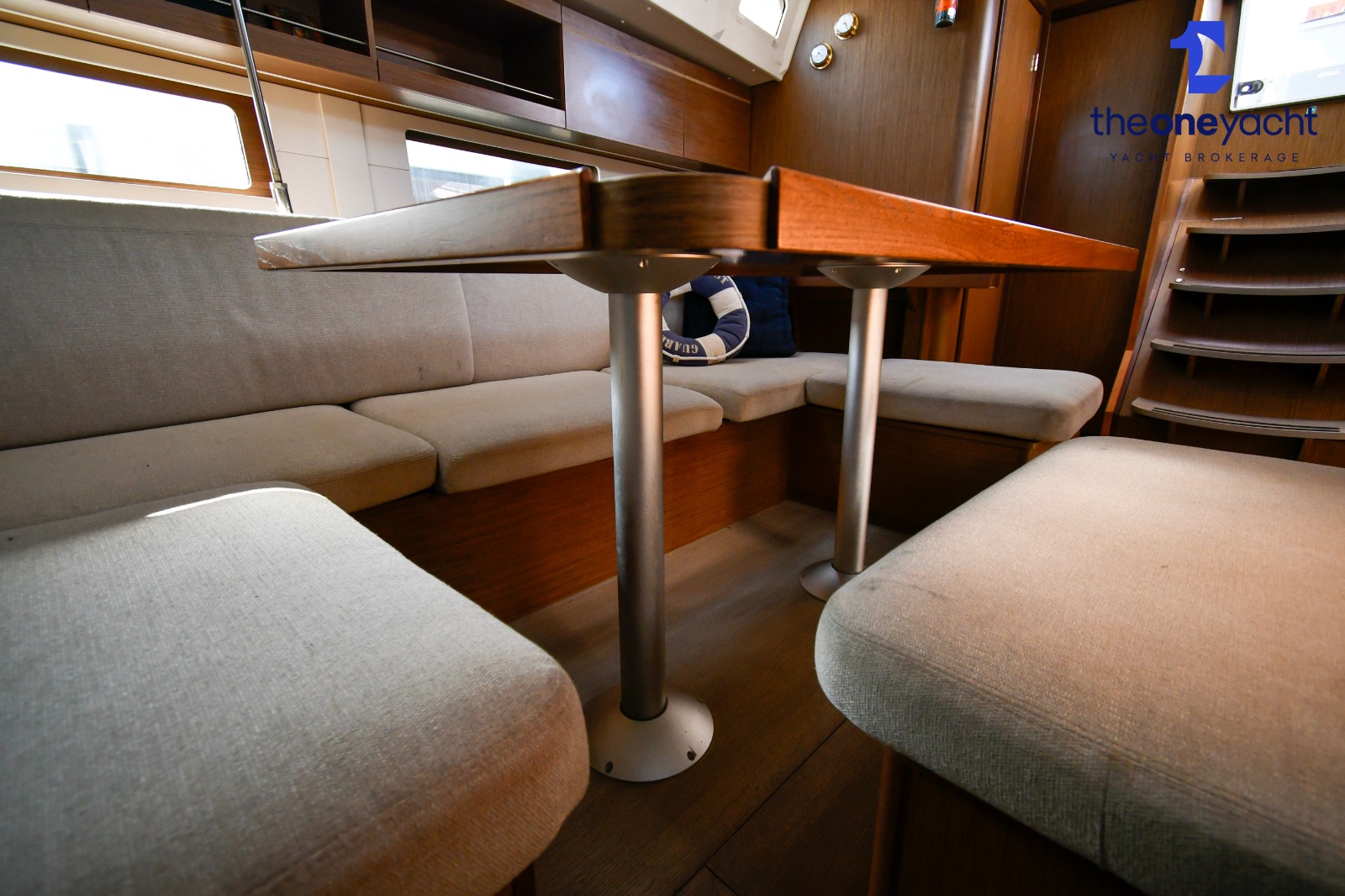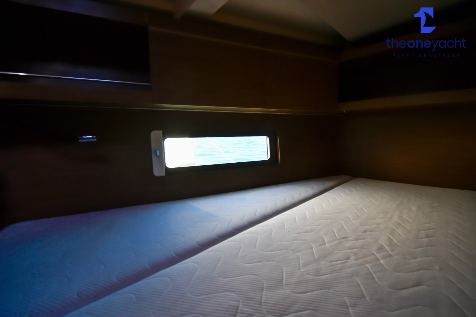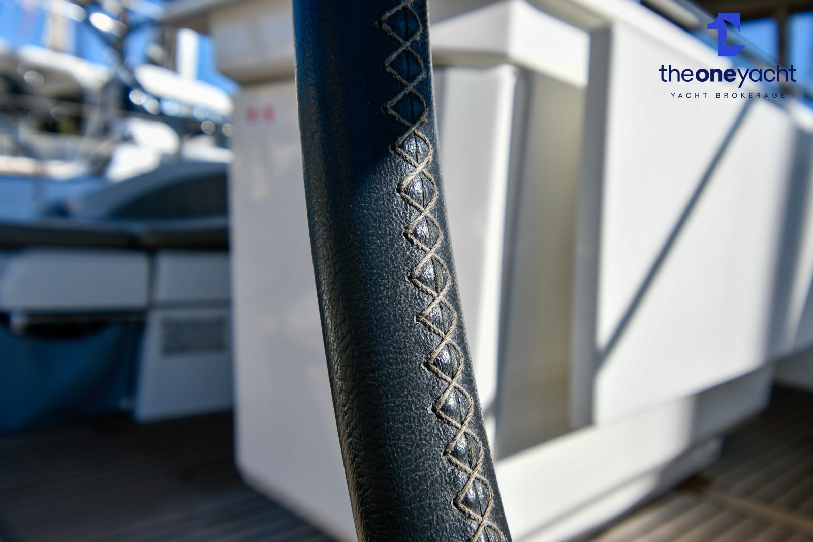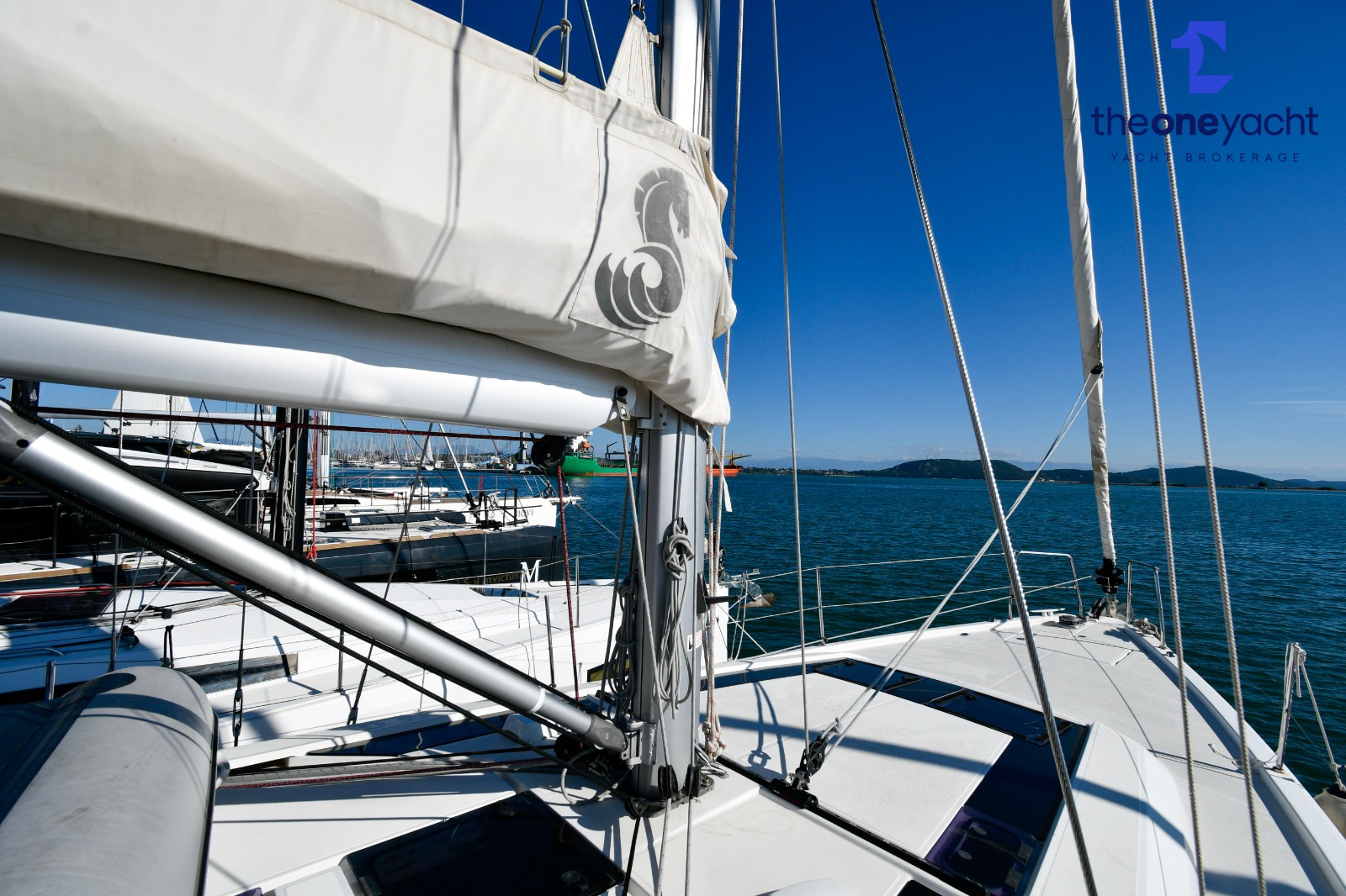 Notable onboard equipment and features include Dacron full-battened mainsail & roller-furling genoa self tacking, Cockpit-adjustable genoa traveler, clutches, and backstay, 80HP Yanmar engine – powerful and efficient, Bow thruster (Side Power) for easy docking and tight maneuvering, Fixed boomvang for precise sail control.