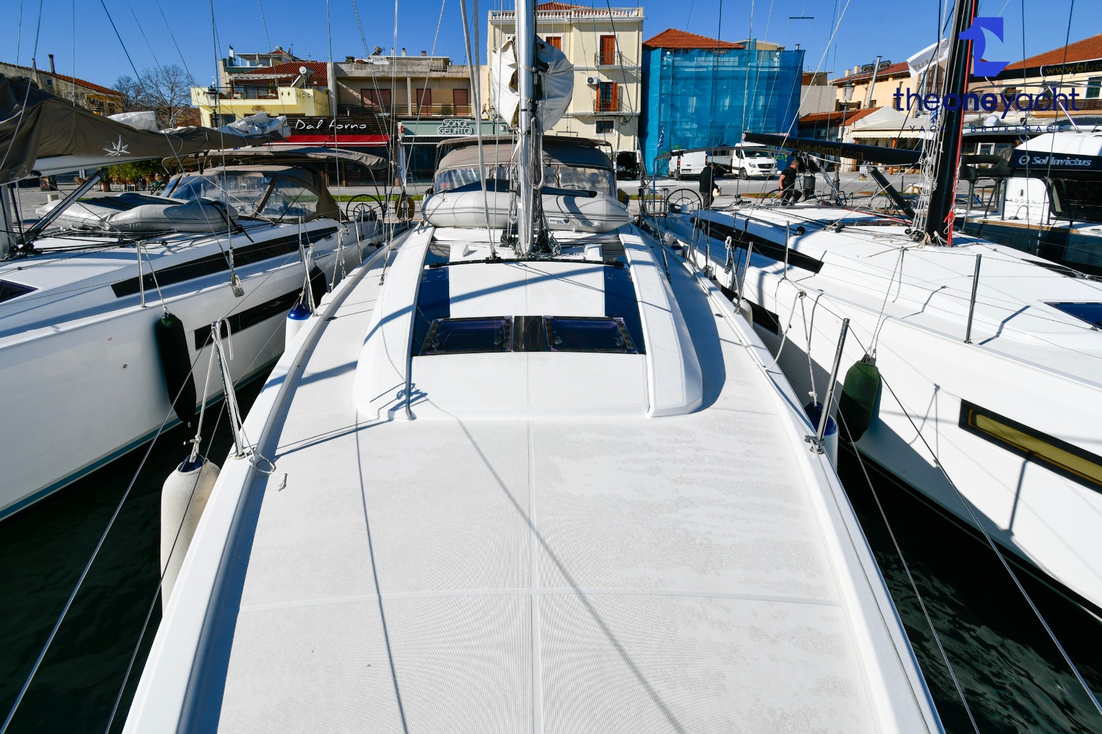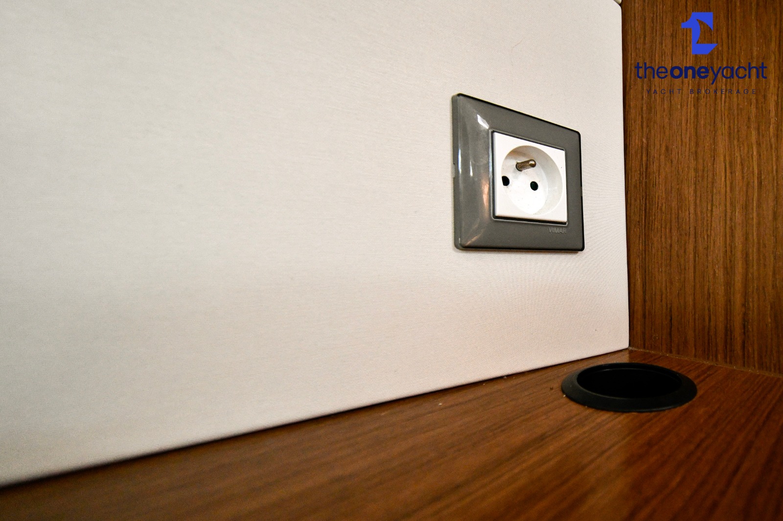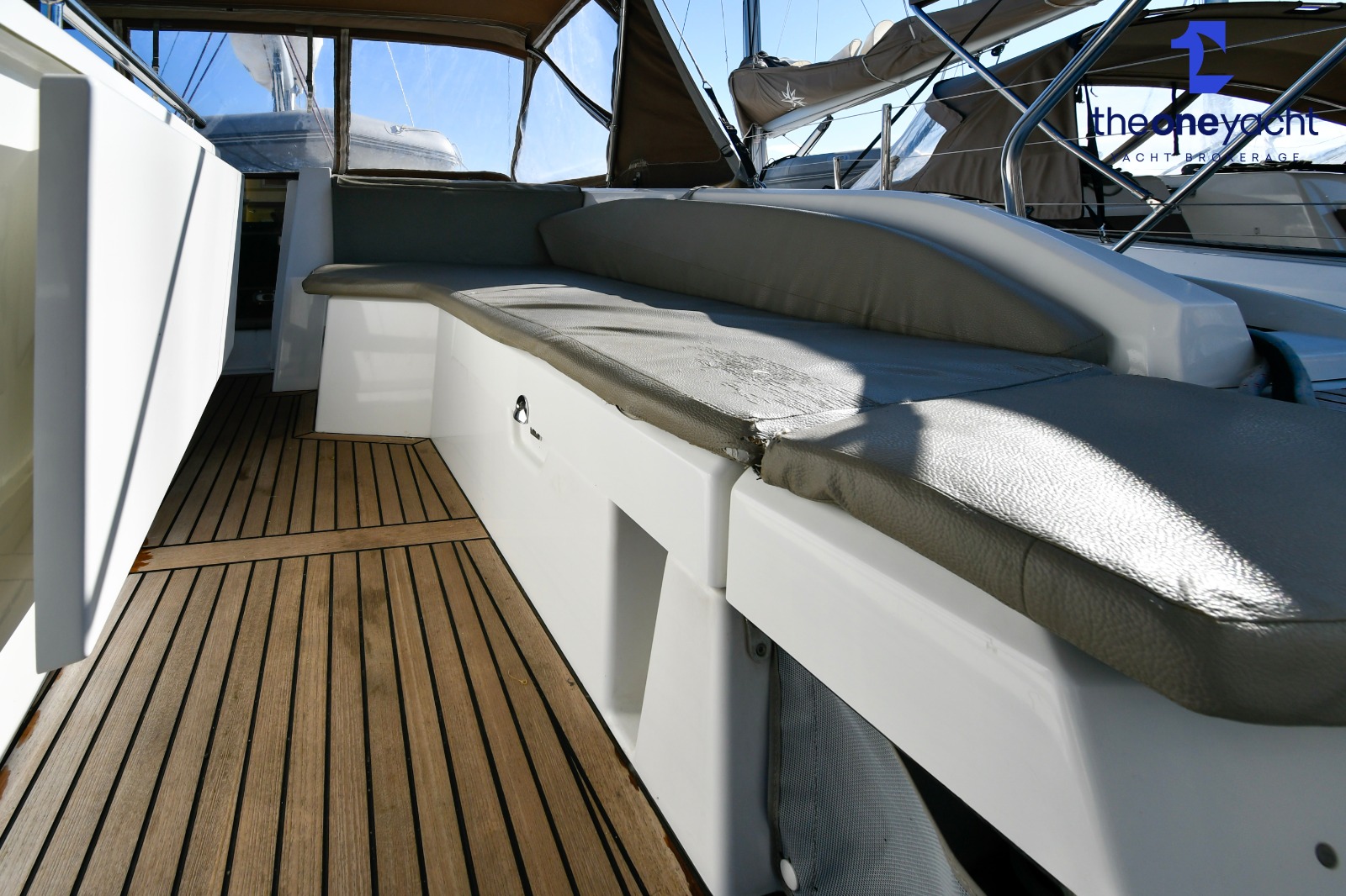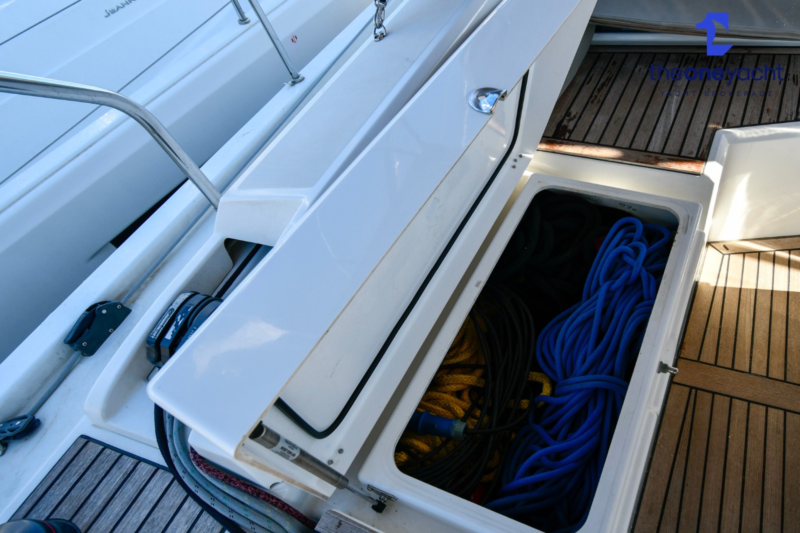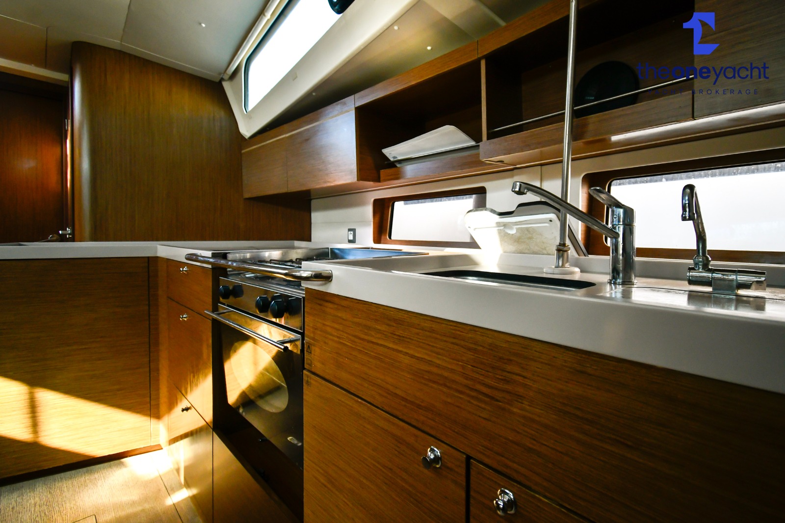 Notable onboard equipment and features include Dacron full-battened mainsail & roller-furling genoa self tacking, Cockpit-adjustable genoa traveler, clutches, and backstay, 80HP Yanmar engine – powerful and efficient, Bow thruster (Side Power) for easy docking and tight maneuvering, Fixed boomvang for precise sail control.