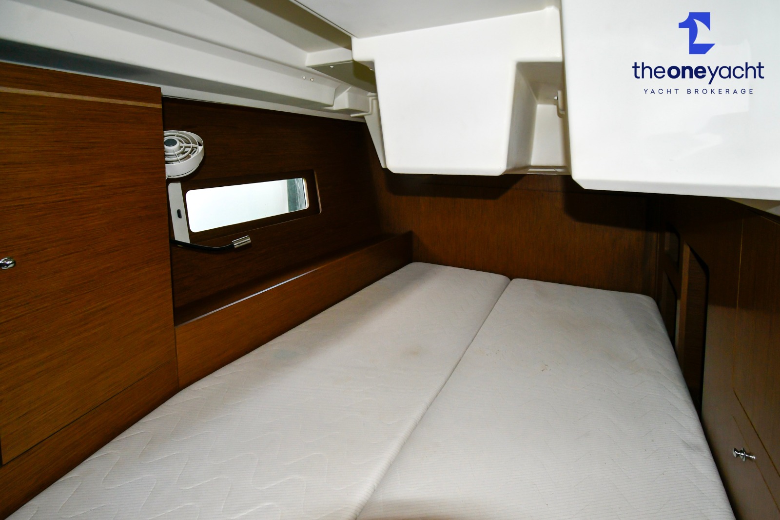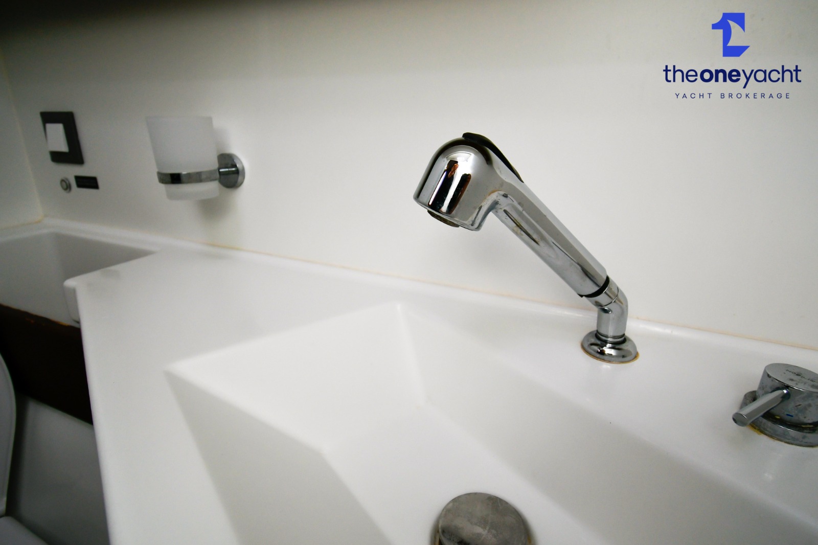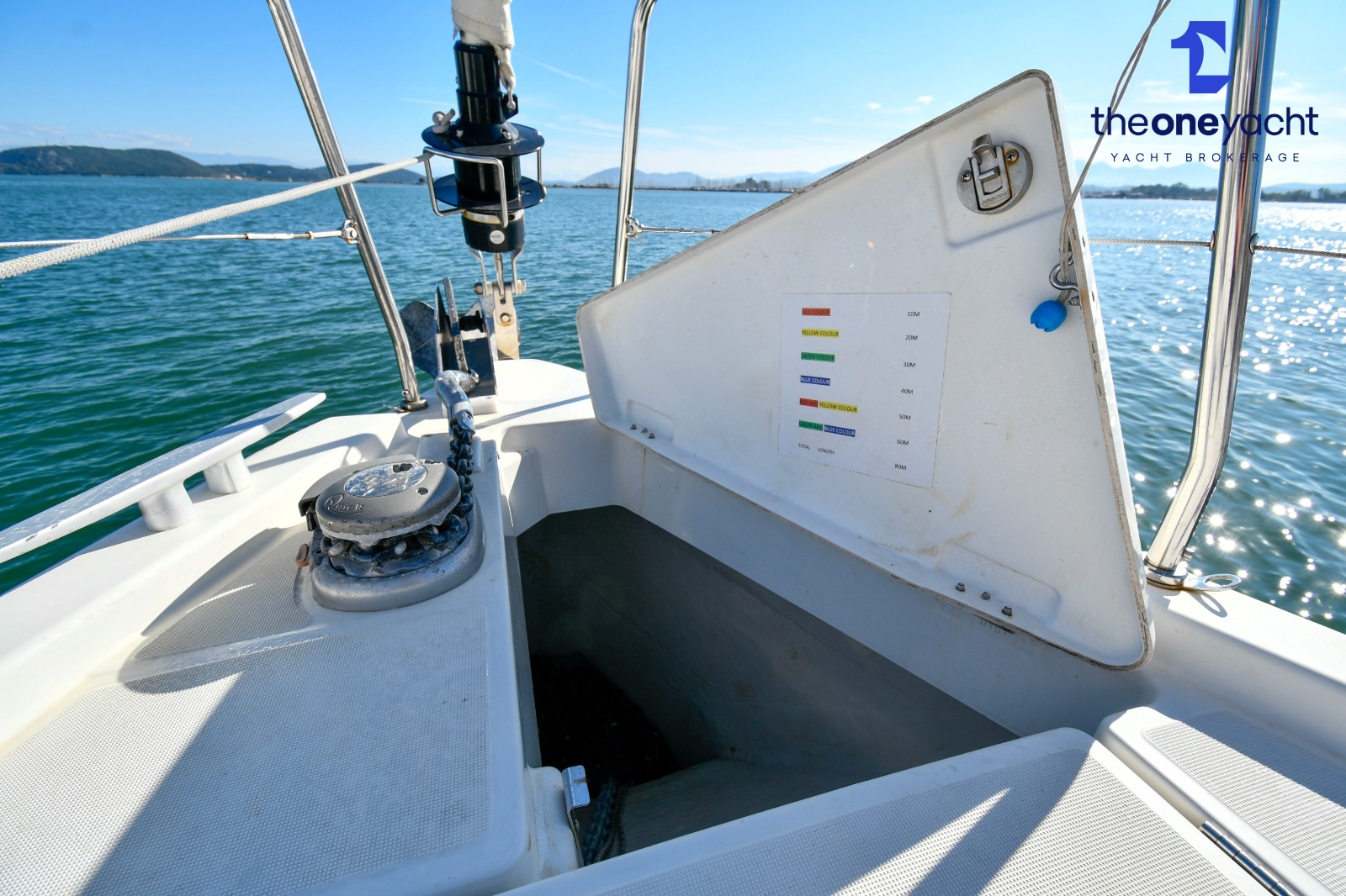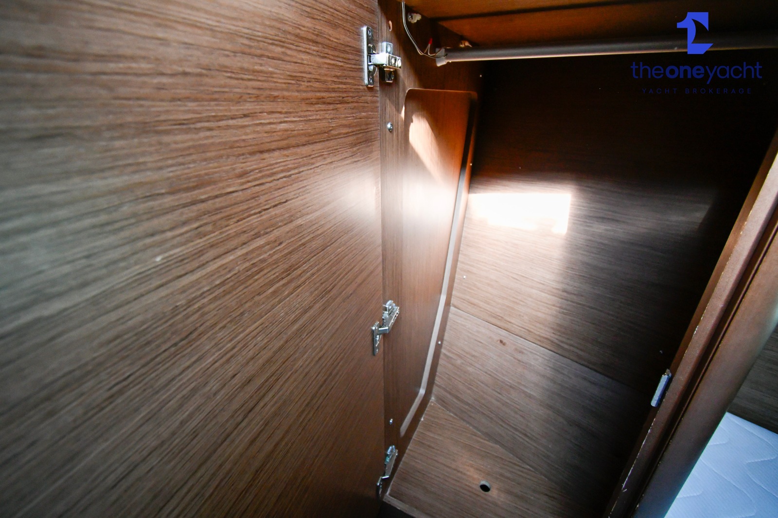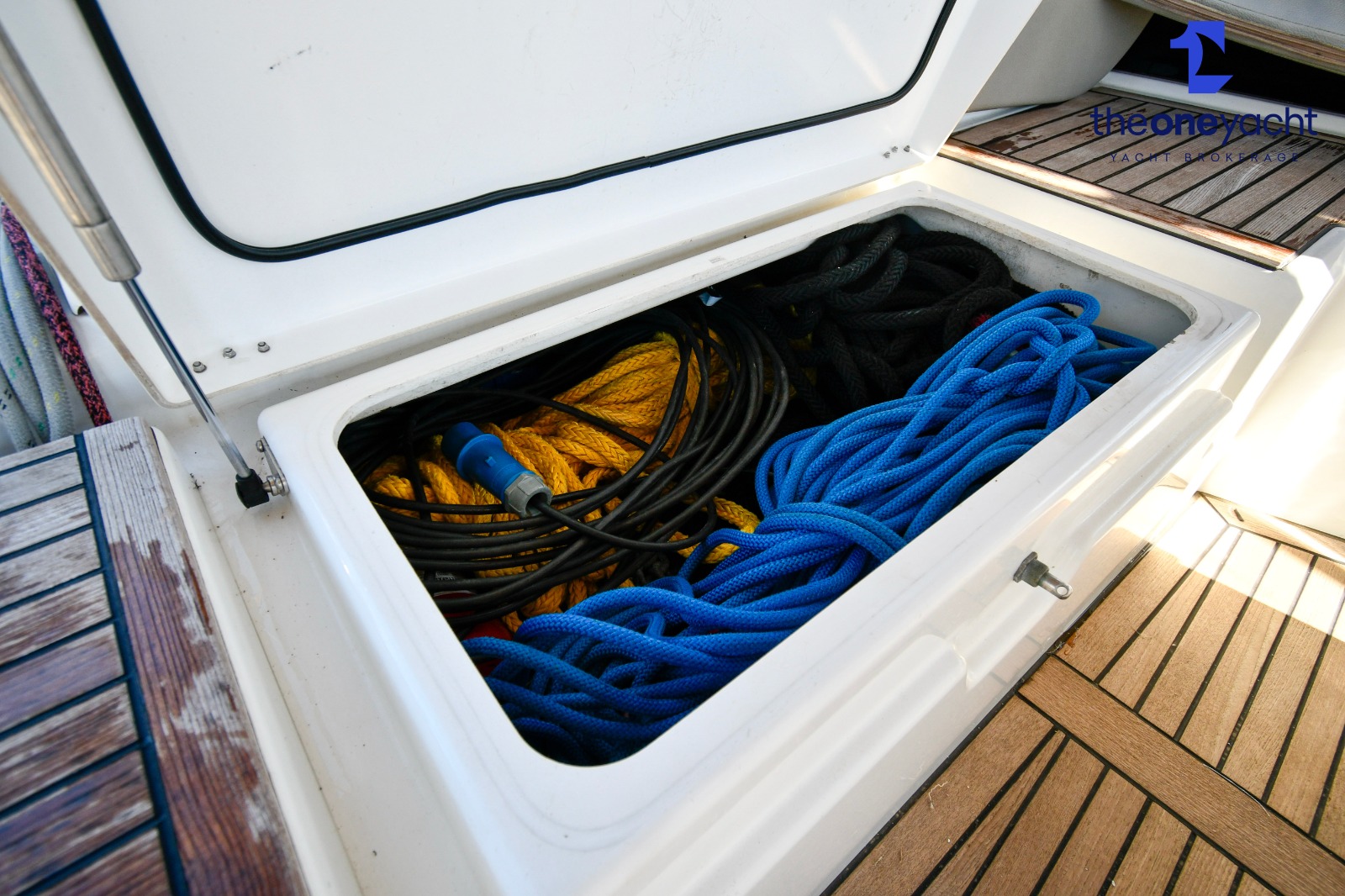 Notable onboard equipment and features include Dacron full-battened mainsail & roller-furling genoa self tacking, Cockpit-adjustable genoa traveler, clutches, and backstay, 80HP Yanmar engine – powerful and efficient, Bow thruster (Side Power) for easy docking and tight maneuvering, Fixed boomvang for precise sail control.