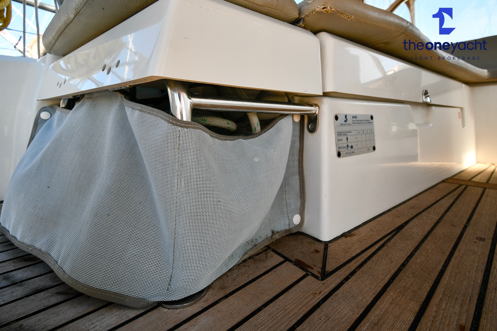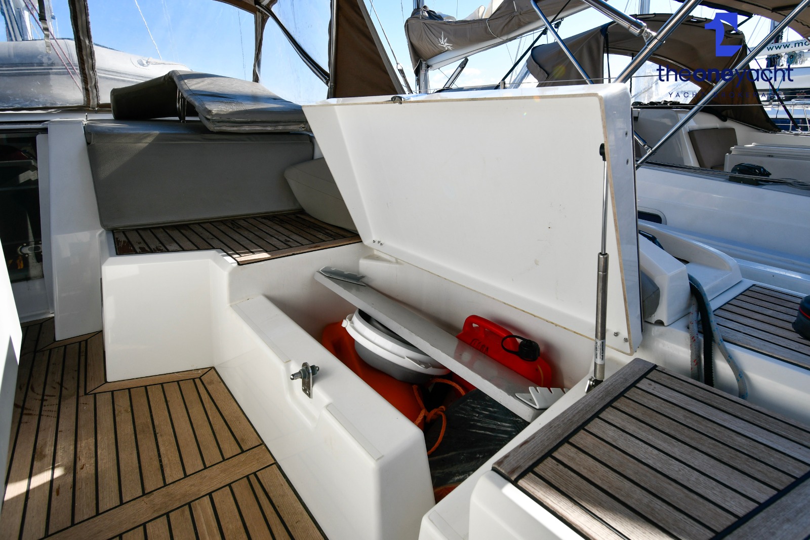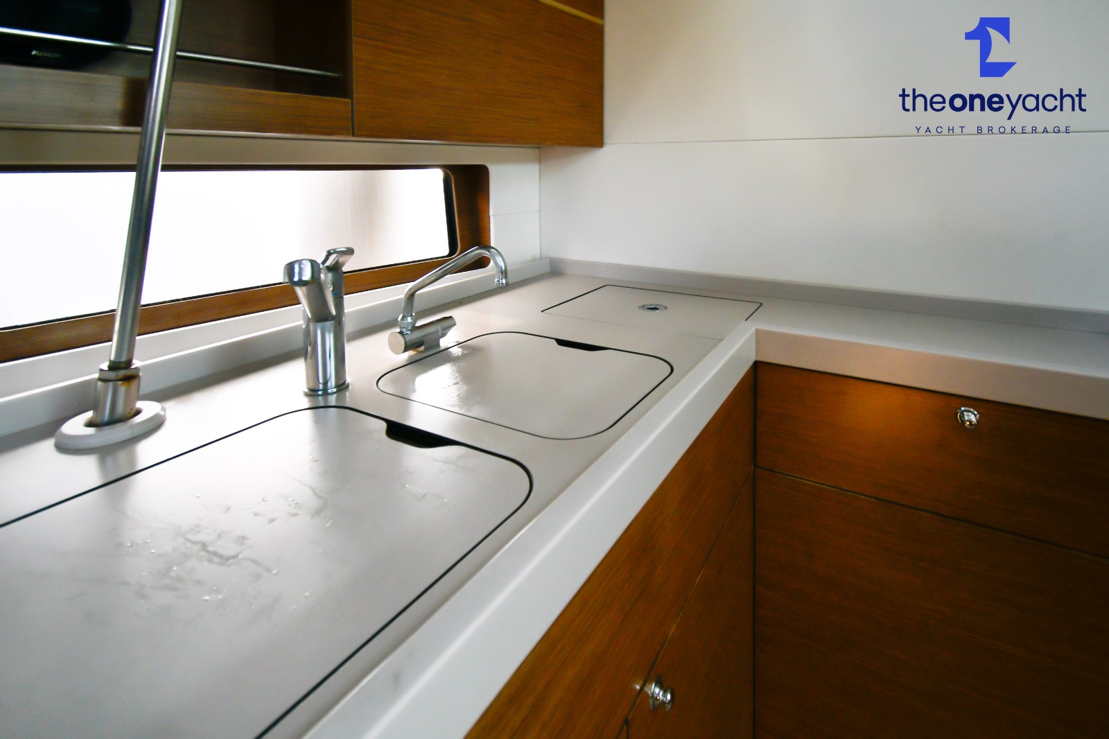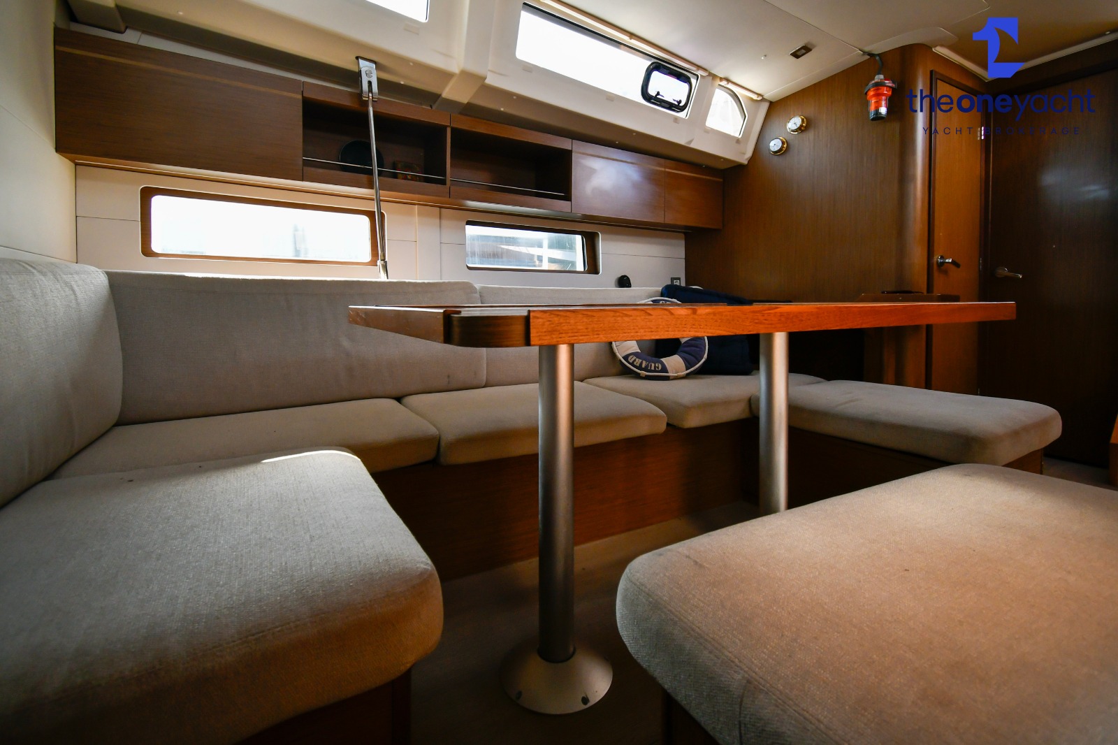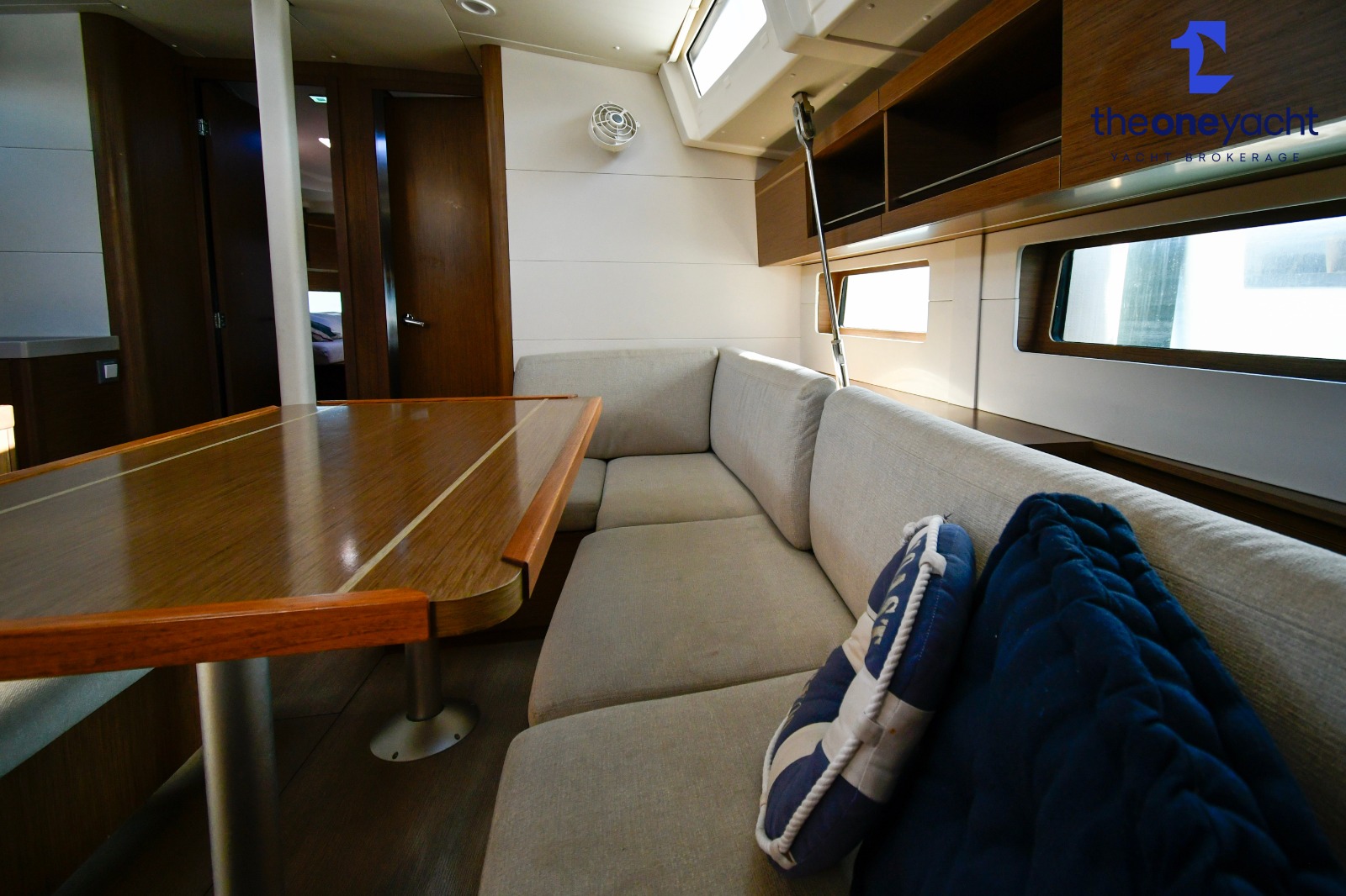 Notable onboard equipment and features include Dacron full-battened mainsail & roller-furling genoa self tacking, Cockpit-adjustable genoa traveler, clutches, and backstay, 80HP Yanmar engine – powerful and efficient, Bow thruster (Side Power) for easy docking and tight maneuvering, Fixed boomvang for precise sail control.