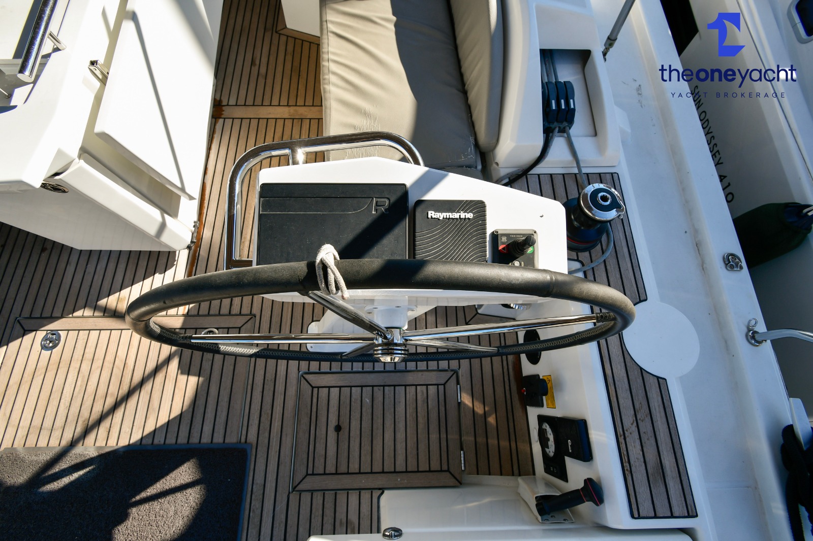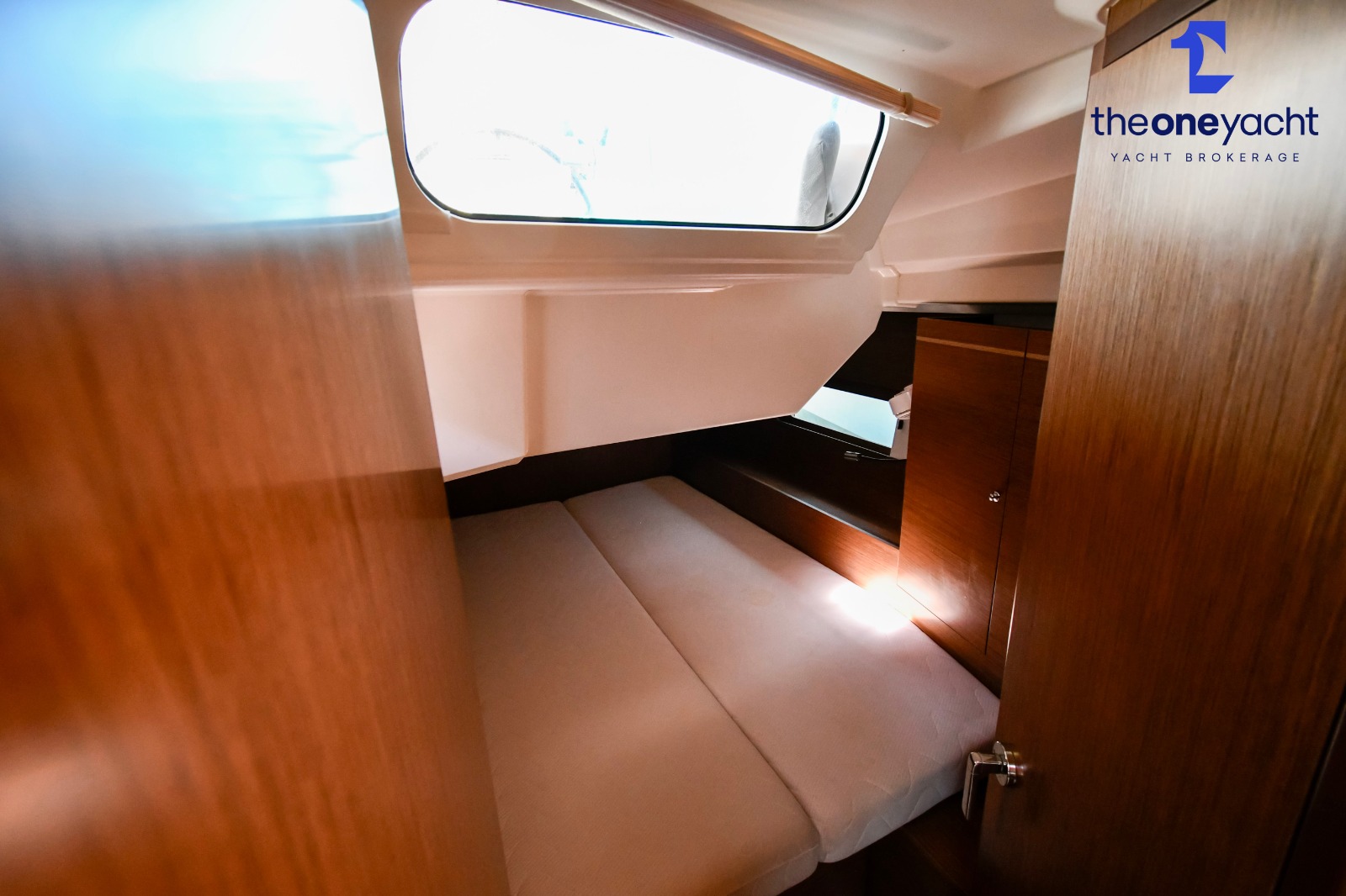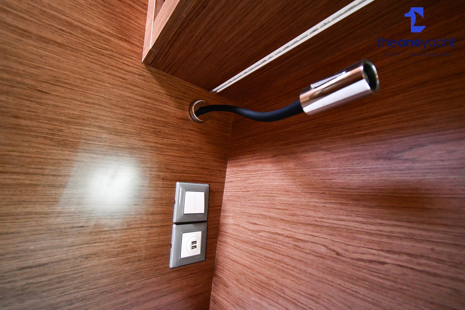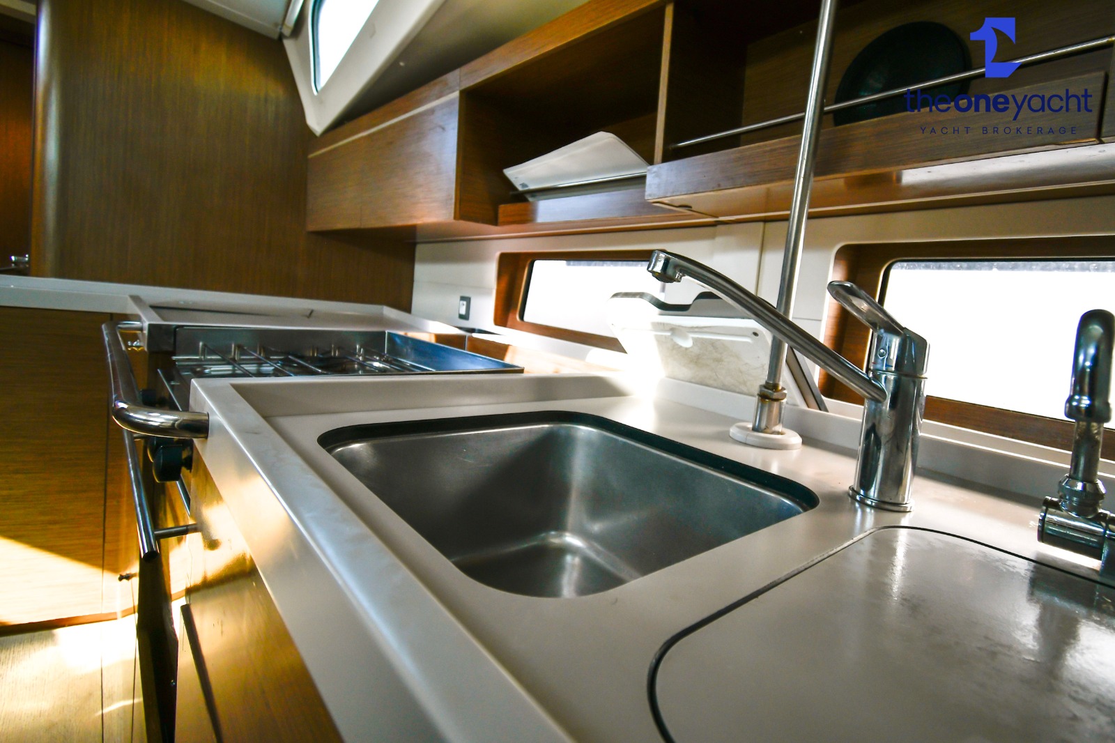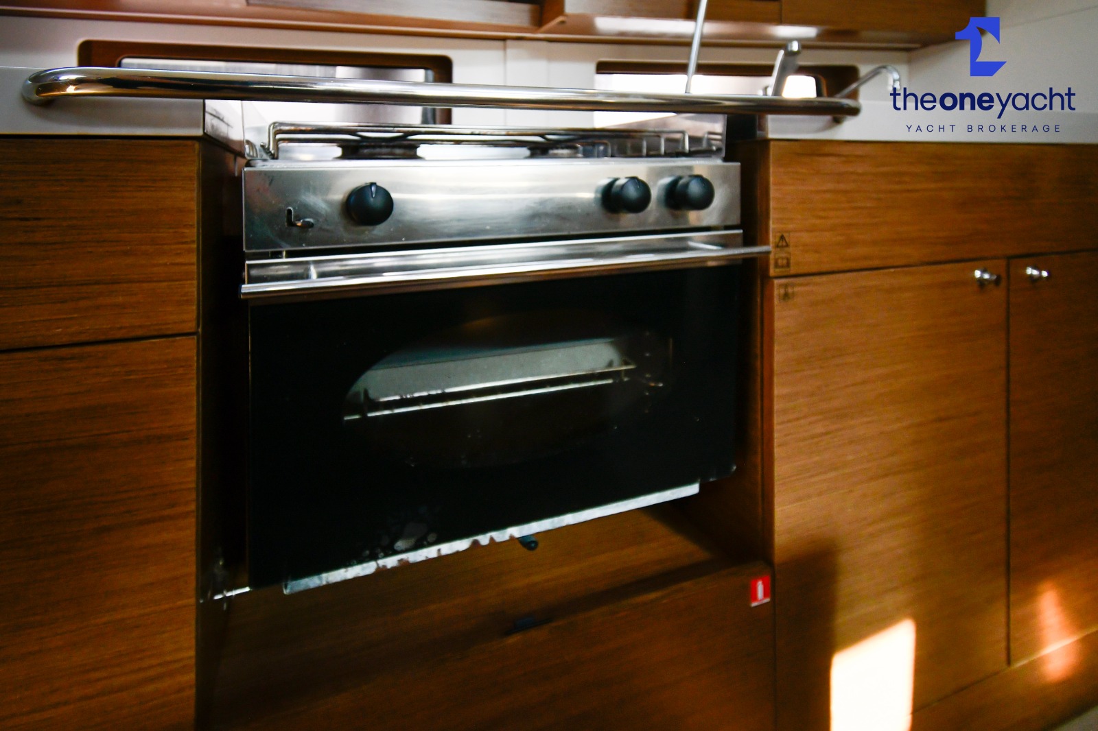 Notable onboard equipment and features include Dacron full-battened mainsail & roller-furling genoa self tacking, Cockpit-adjustable genoa traveler, clutches, and backstay, 80HP Yanmar engine – powerful and efficient, Bow thruster (Side Power) for easy docking and tight maneuvering, Fixed boomvang for precise sail control.