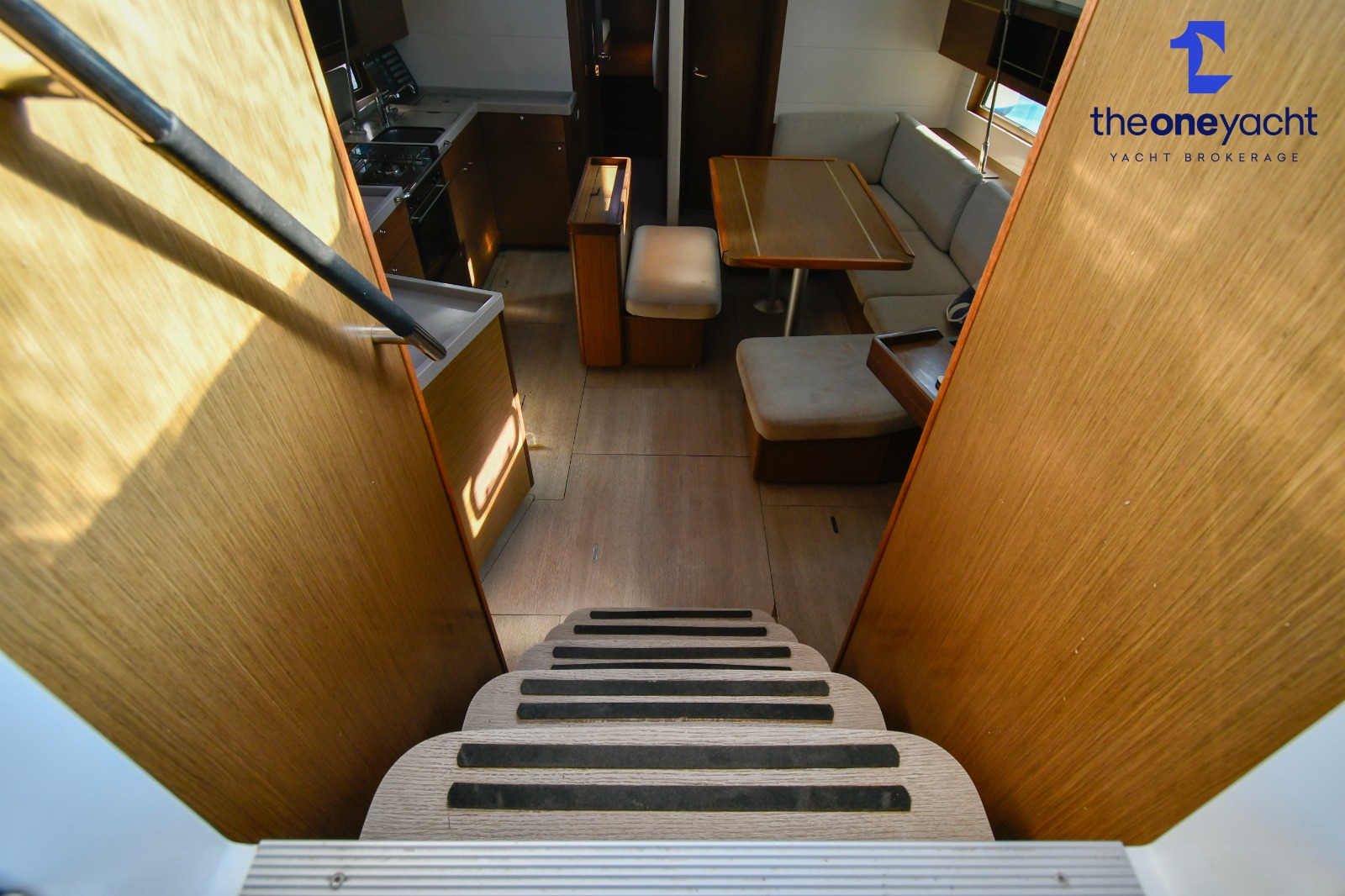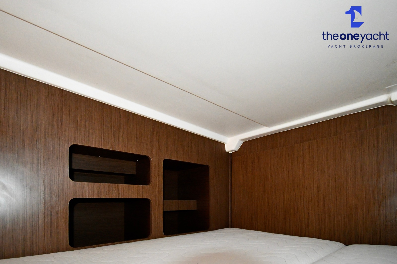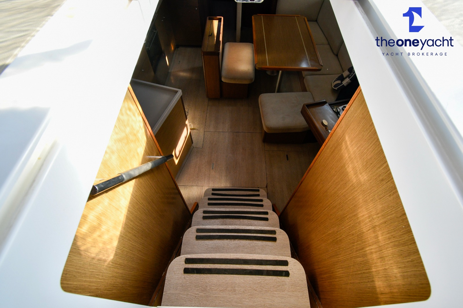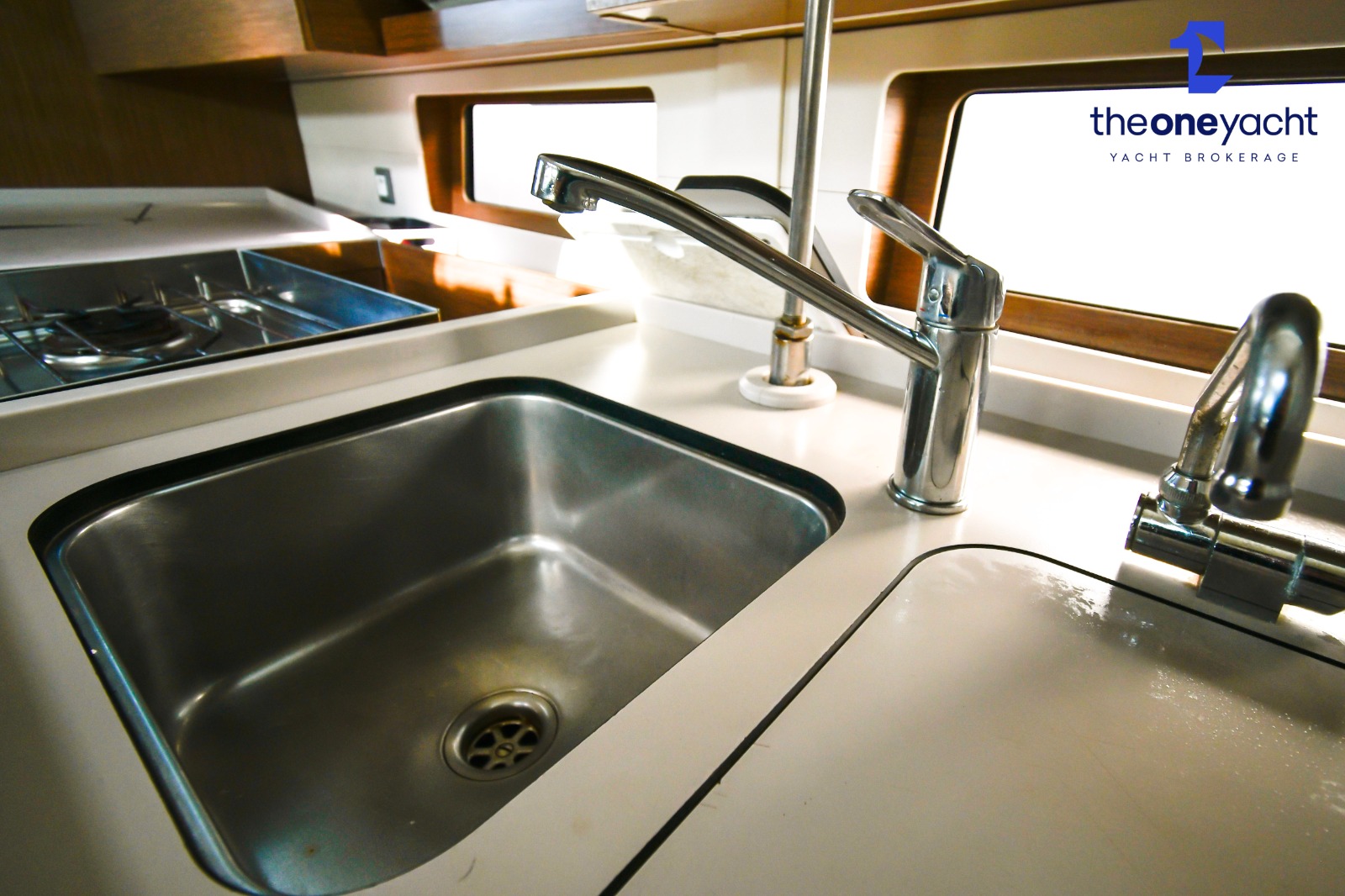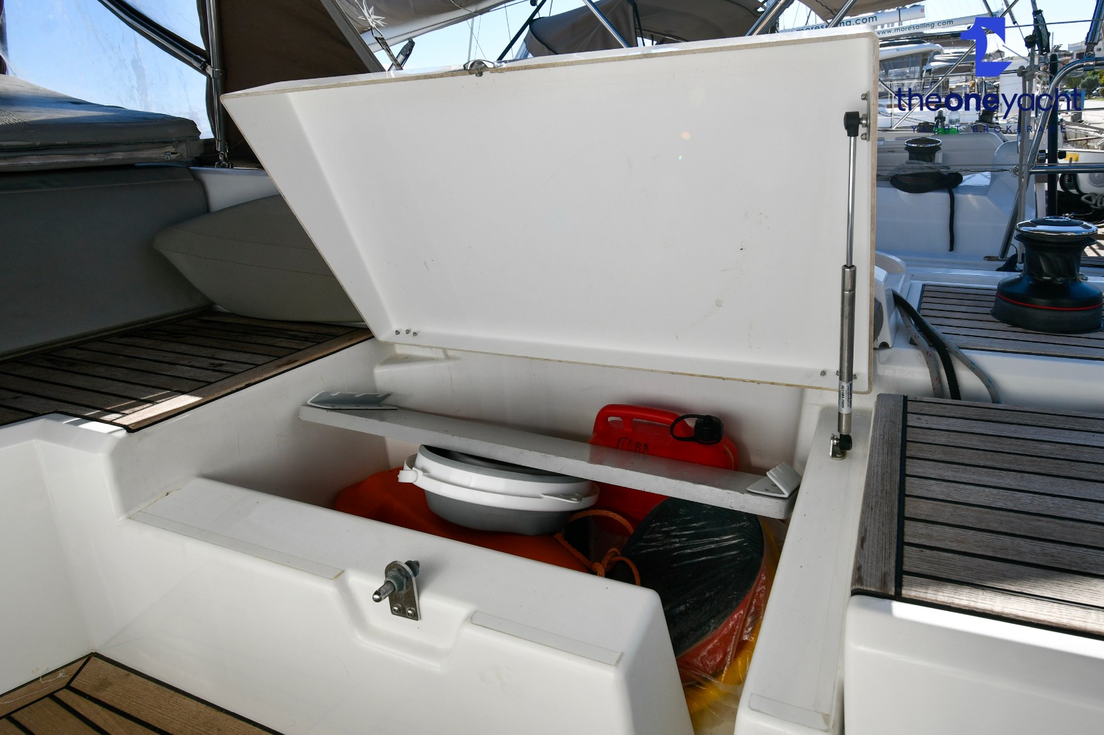 Notable onboard equipment and features include Dacron full-battened mainsail & roller-furling genoa self tacking, Cockpit-adjustable genoa traveler, clutches, and backstay, 80HP Yanmar engine – powerful and efficient, Bow thruster (Side Power) for easy docking and tight maneuvering, Fixed boomvang for precise sail control.