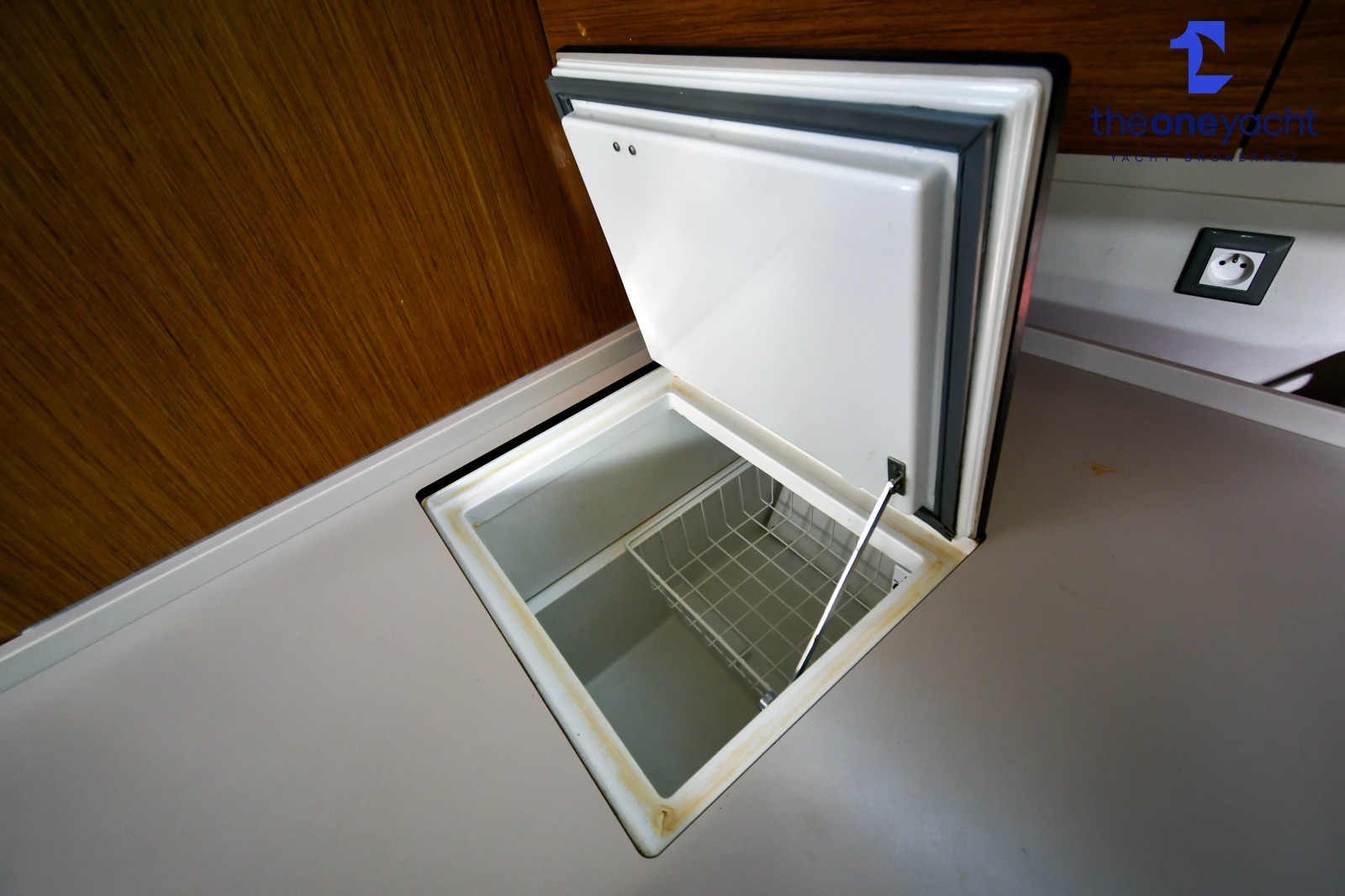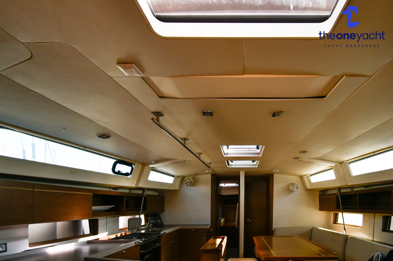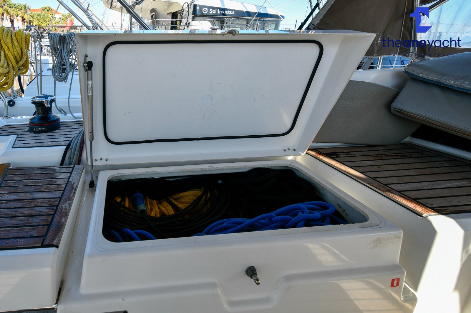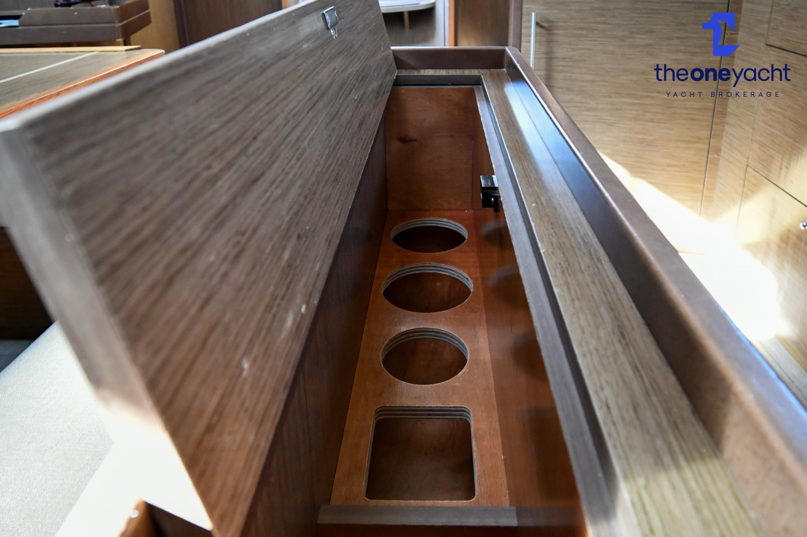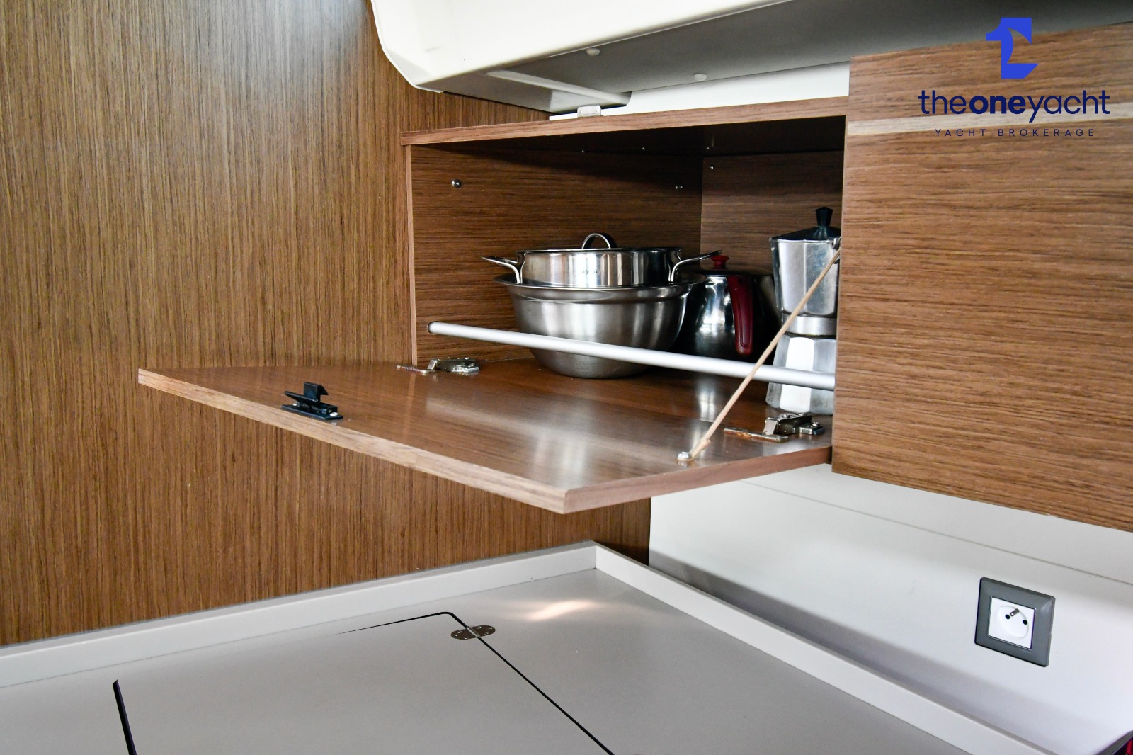 Notable onboard equipment and features include Dacron full-battened mainsail & roller-furling genoa self tacking, Cockpit-adjustable genoa traveler, clutches, and backstay, 80HP Yanmar engine – powerful and efficient, Bow thruster (Side Power) for easy docking and tight maneuvering, Fixed boomvang for precise sail control.