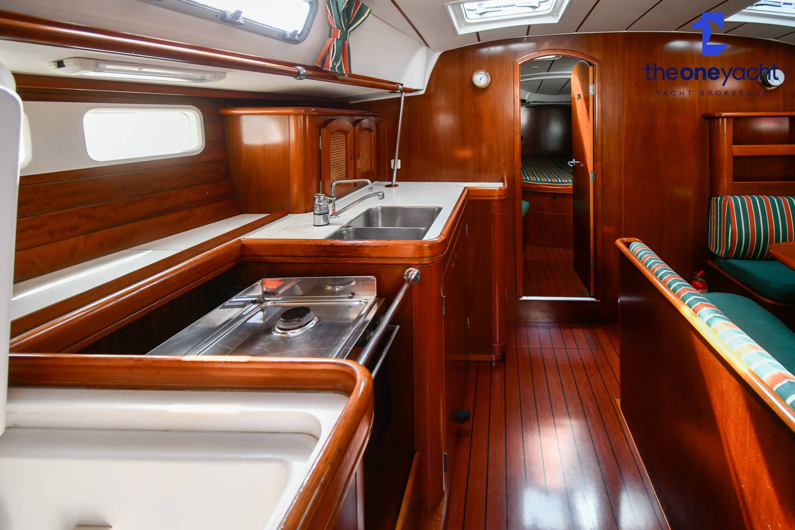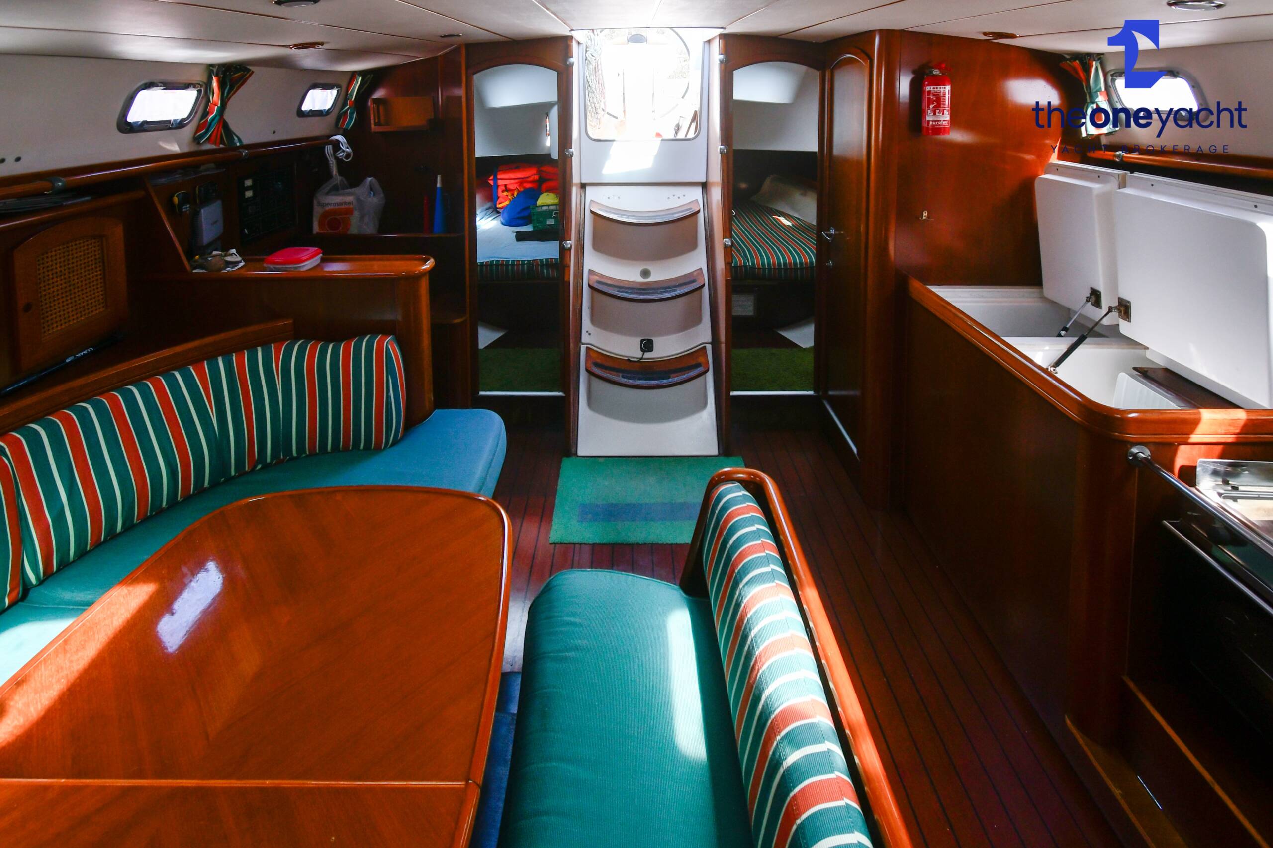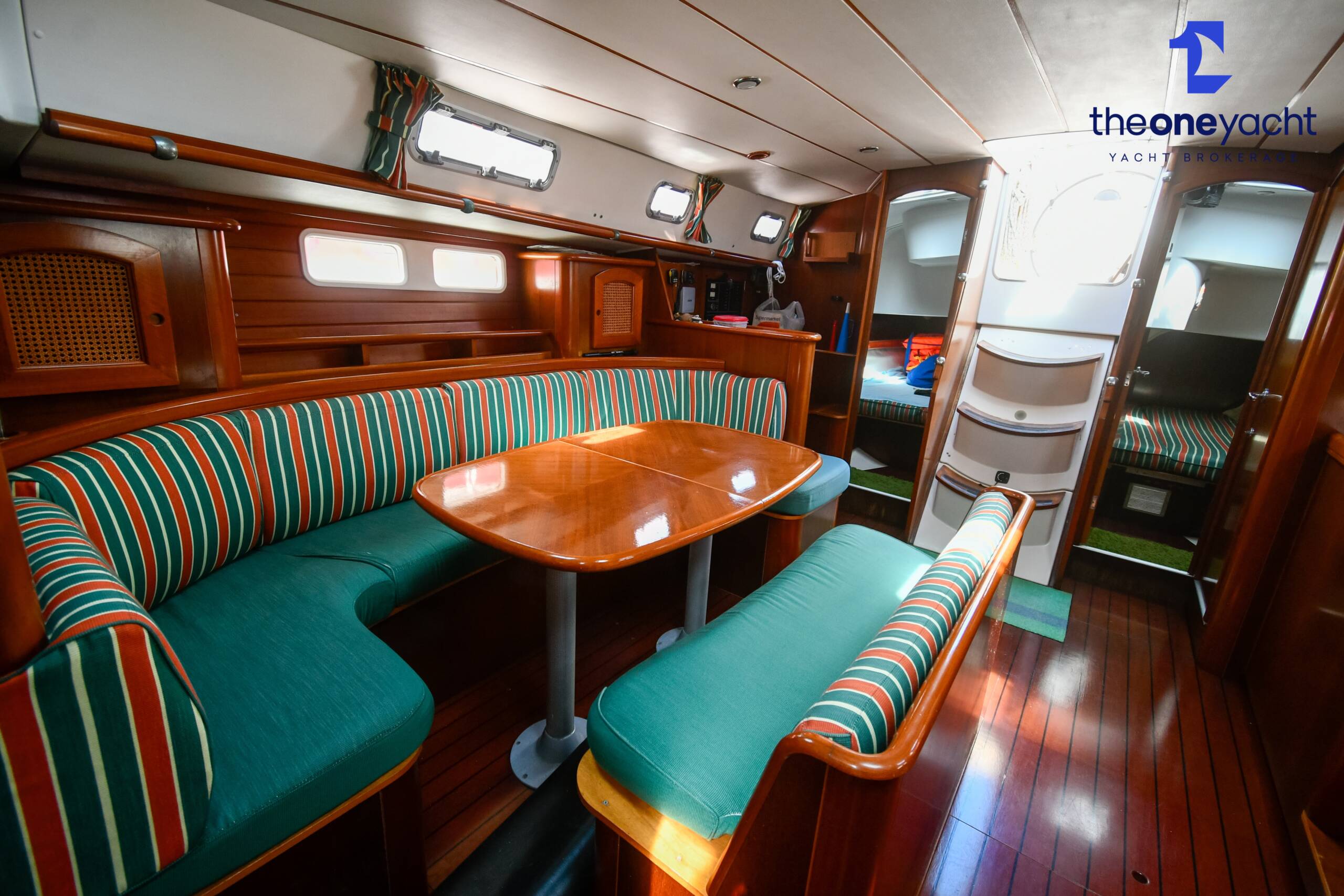 The Beneteau Oceanis 461 offers a spacious and intelligently arranged three-cabin layout, providing excellent comfort for family cruising or extended liveaboard stays. Three generous double cabins comfortably accommodate up to six guests, while two well-appointed heads compartments provide excellent convenience for owners and visitors alike. The bright and welcoming saloon offers substantial seating and dining space, creating a sociable central hub below deck, complemented by a dedicated forward-facing chart table positioned at the companionway for practical navigation and passage planning. With excellent internal volume and thoughtful proportions throughout, Hymenium delivers a comfortable and highly functional onboard living environment.