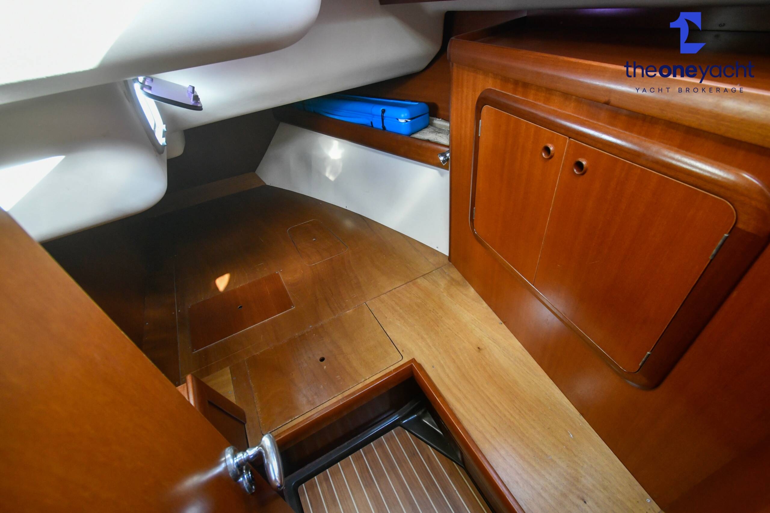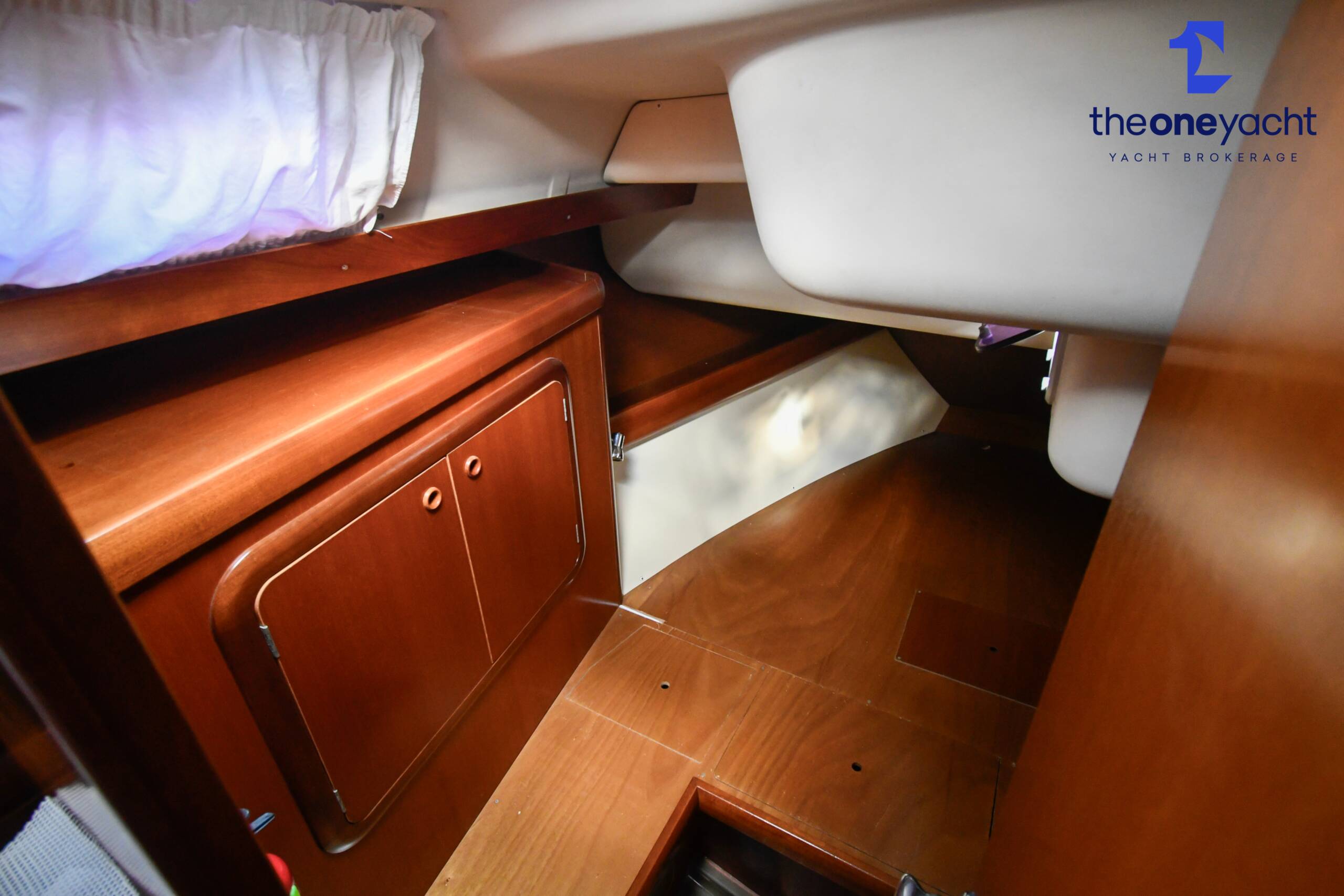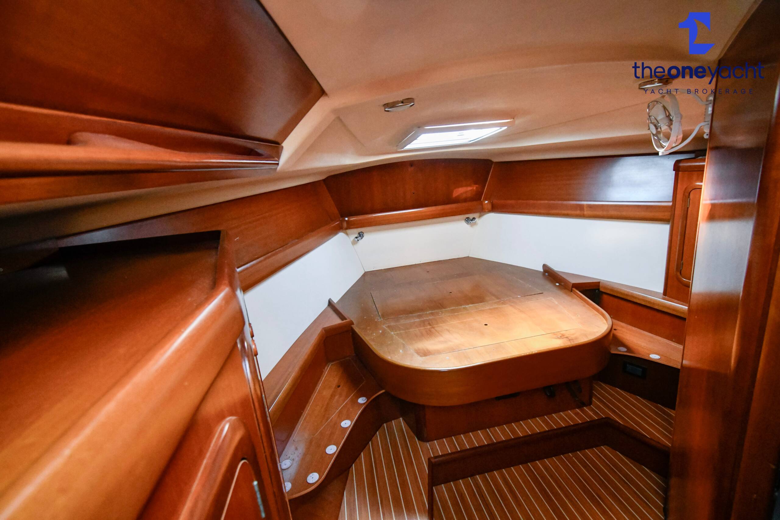 The Grand Soleil 46.3 offers a spacious and intelligently arranged three-cabin layout that perfectly balances offshore practicality with luxurious onboard comfort. Alba Lunare features a generous forward owner’s cabin complete with private ensuite heads and separate shower, creating an impressive owner’s suite ideal for extended cruising or liveaboard use. Two aft double guest cabins provide comfortable accommodation for additional crew or family, while the large central saloon delivers a bright and welcoming social area with ample seating, dining space, and excellent natural light throughout. A well-appointed guest heads and shower serve the aft cabins, while the beautifully finished Corian galley offers abundant workspace and storage for longer passages. With accommodation for six plus an additional two berths in the saloon, the layout is highly versatile and exceptionally practical for both family cruising and entertaining onboard.