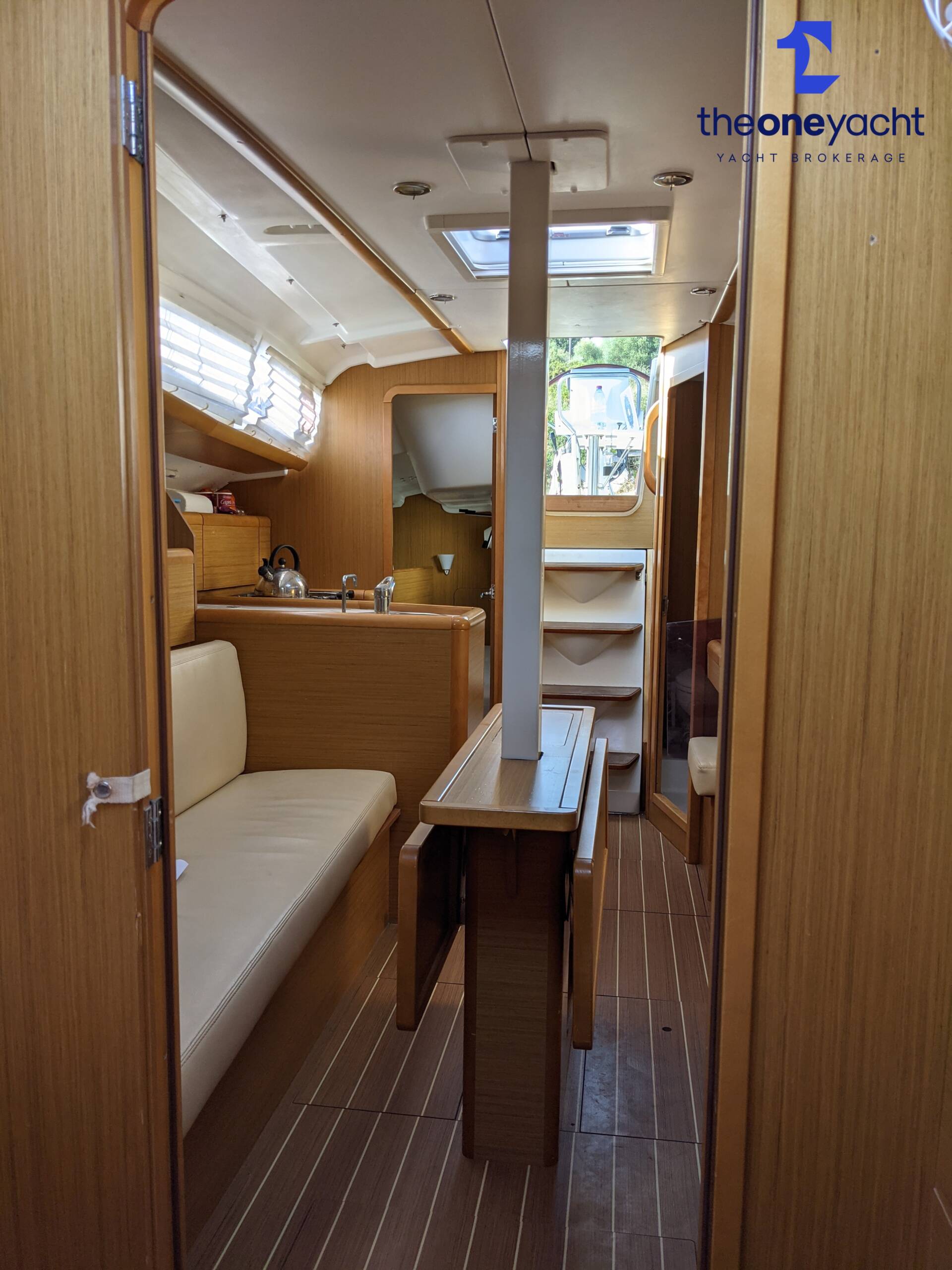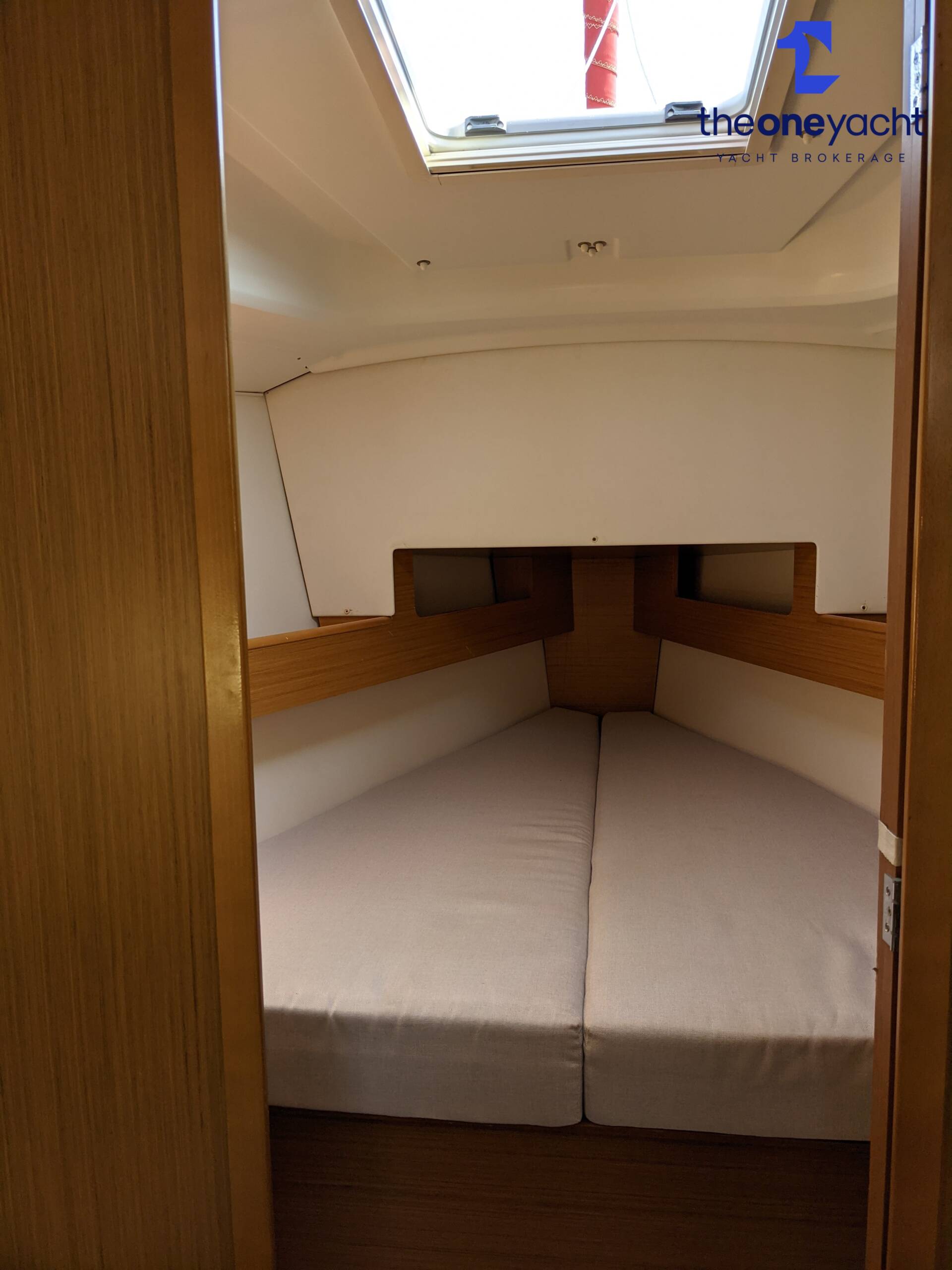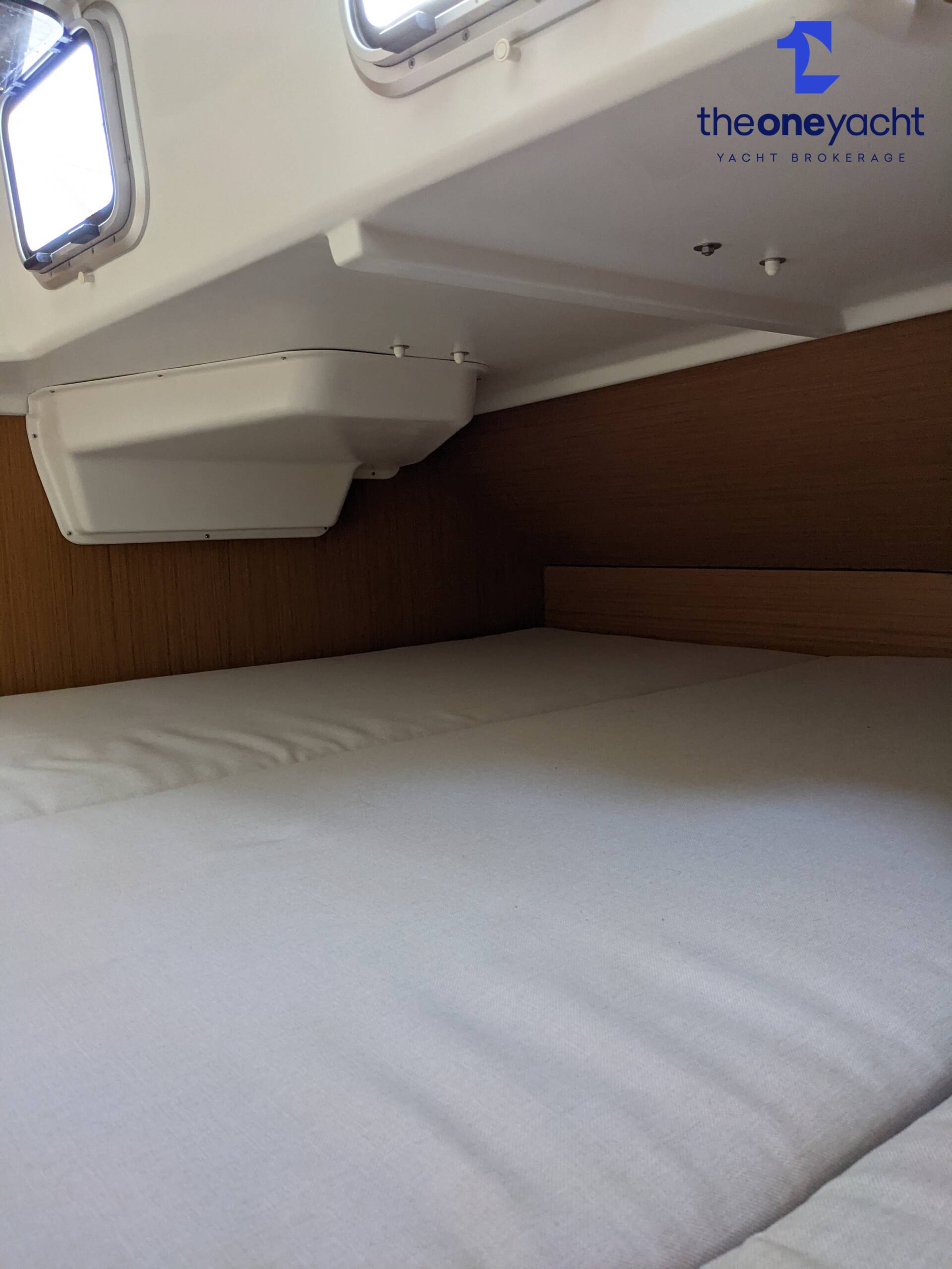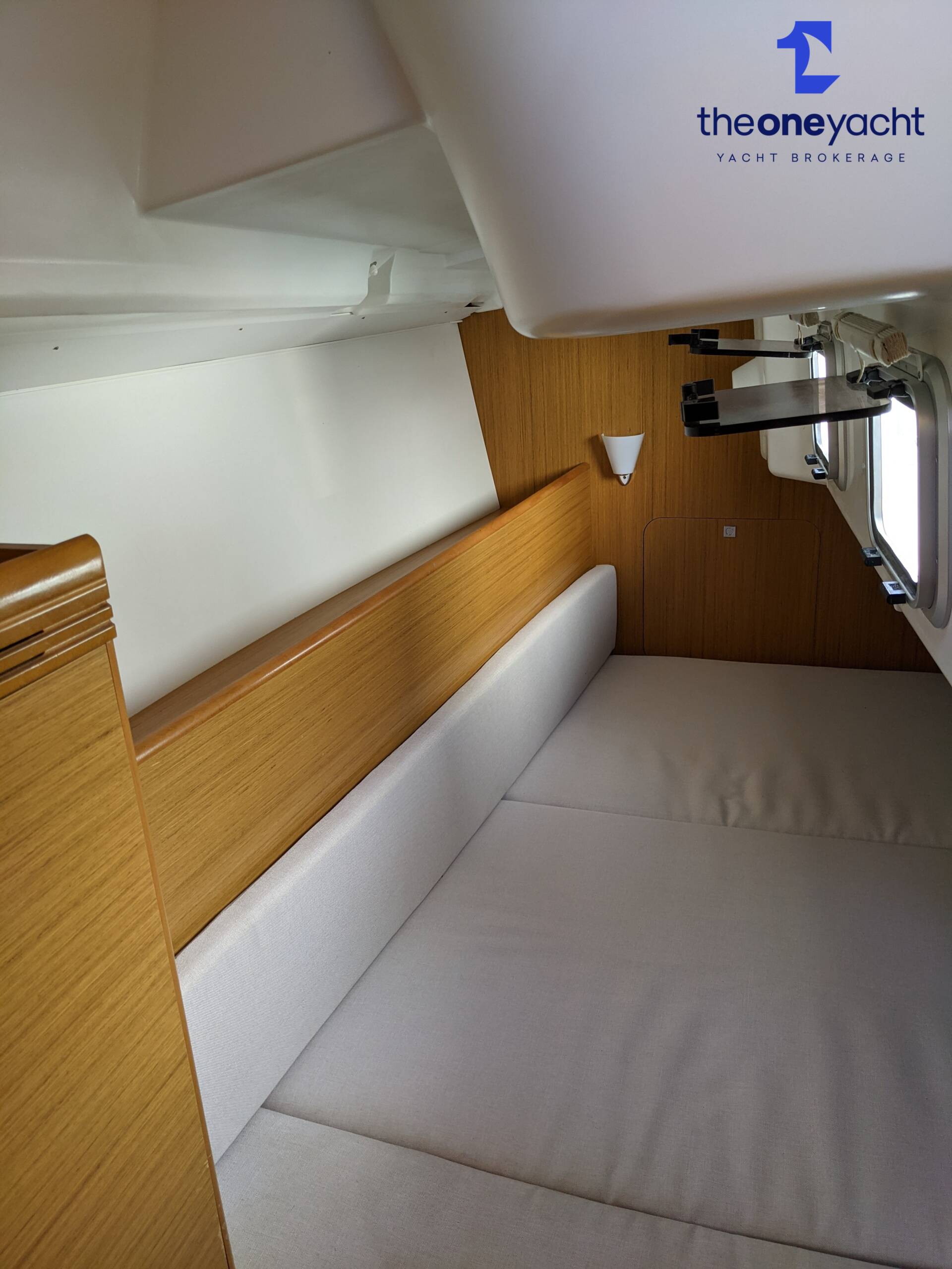 The Jeanneau Sun Odyssey 33i offers a bright and intelligently designed two-cabin layout, ideal for couples, small families, or guests seeking comfort during extended cruising. The forward owner’s cabin provides a spacious double berth with excellent natural light and storage, while the aft double cabin offers comfortable guest accommodation. The saloon features generous U-shaped seating around a folding dining table, creating a welcoming social space with additional occasional berths if required. A practical L-shaped galley and separate heads compartment with shower complete the layout, delivering an excellent blend of comfort and functionality for a yacht of this size.