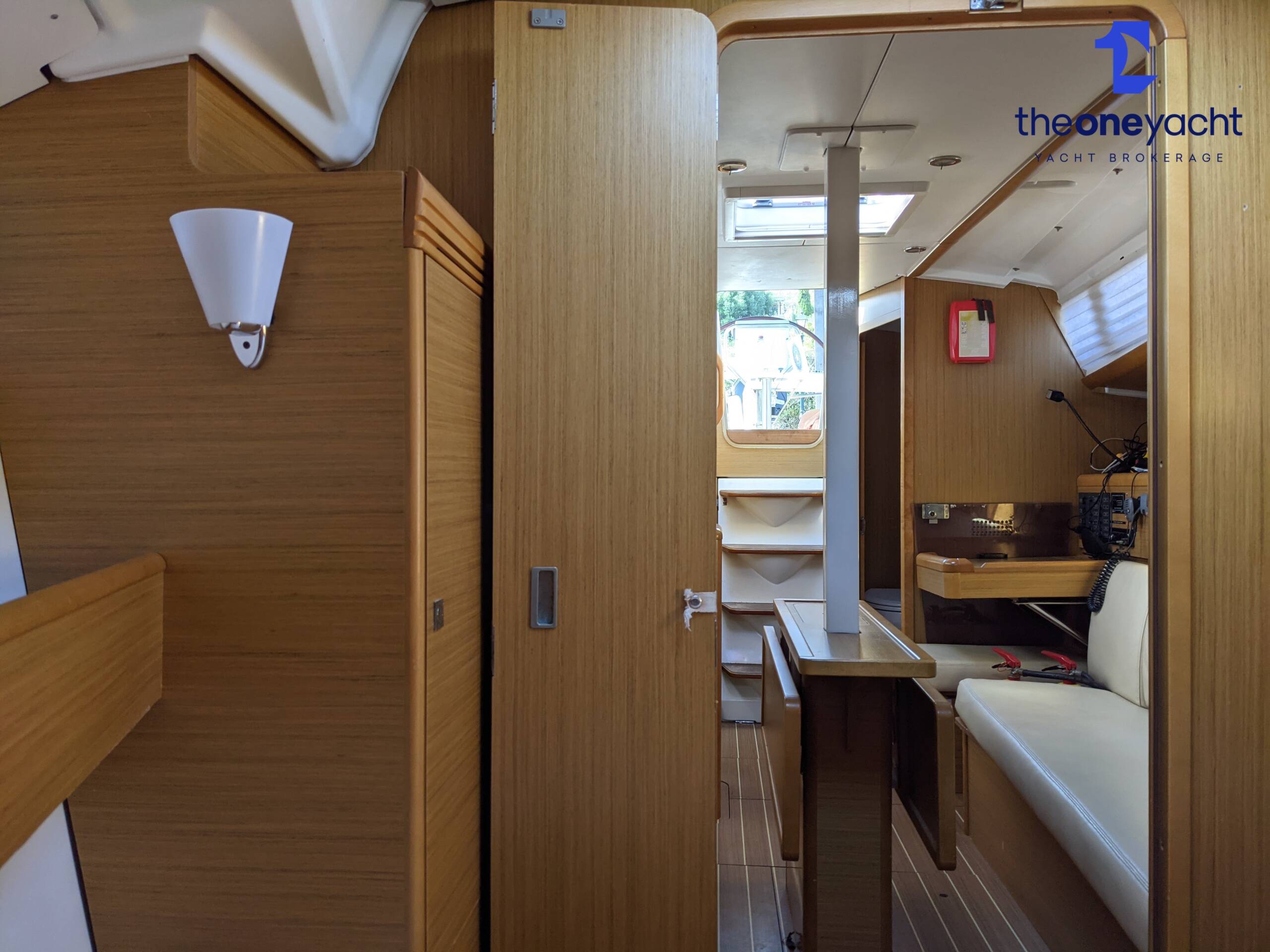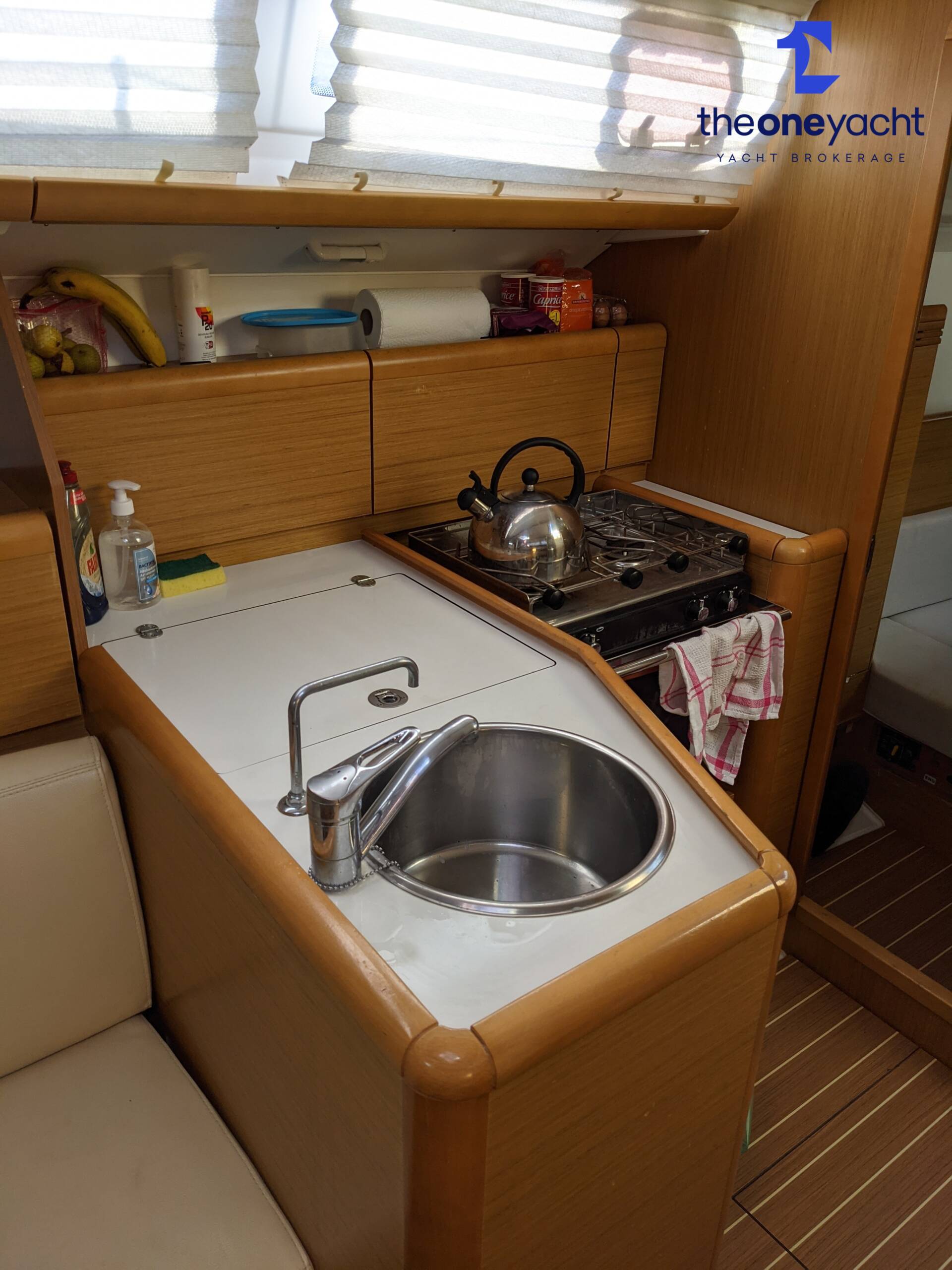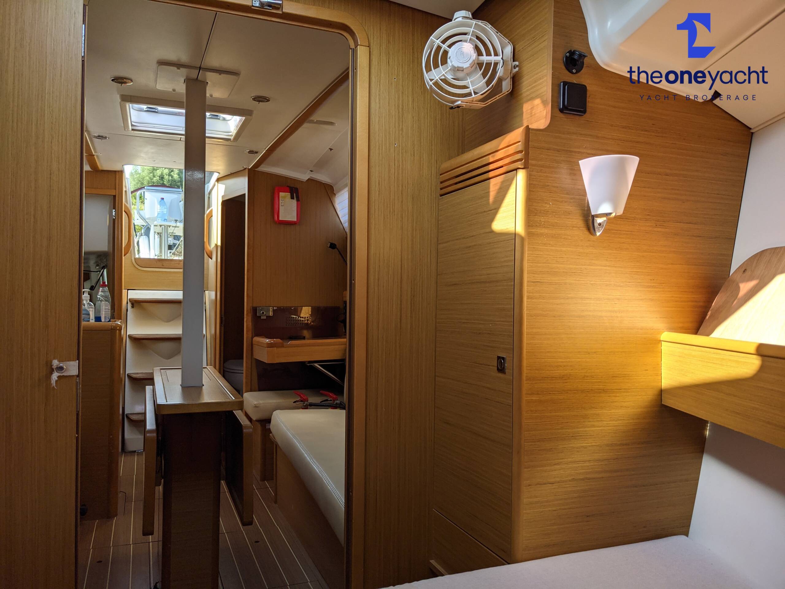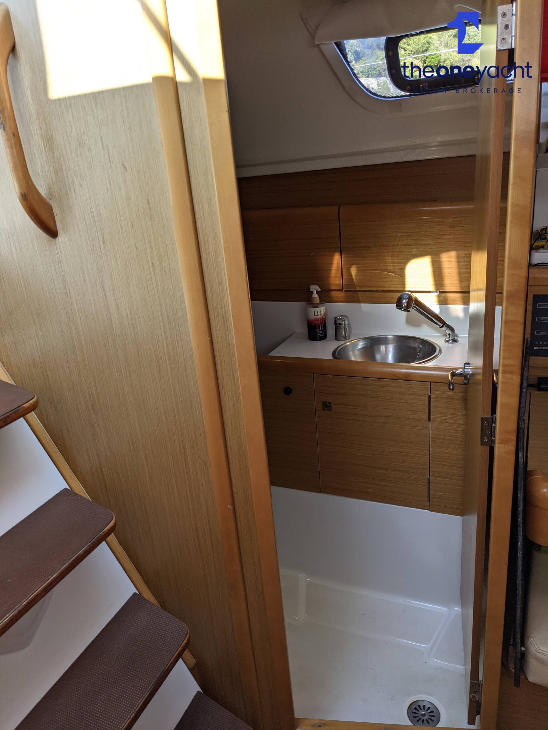 The Jeanneau Sun Odyssey 33i offers a bright and intelligently designed two-cabin layout, ideal for couples, small families, or guests seeking comfort during extended cruising. The forward owner’s cabin provides a spacious double berth with excellent natural light and storage, while the aft double cabin offers comfortable guest accommodation. The saloon features generous U-shaped seating around a folding dining table, creating a welcoming social space with additional occasional berths if required. A practical L-shaped galley and separate heads compartment with shower complete the layout, delivering an excellent blend of comfort and functionality for a yacht of this size.