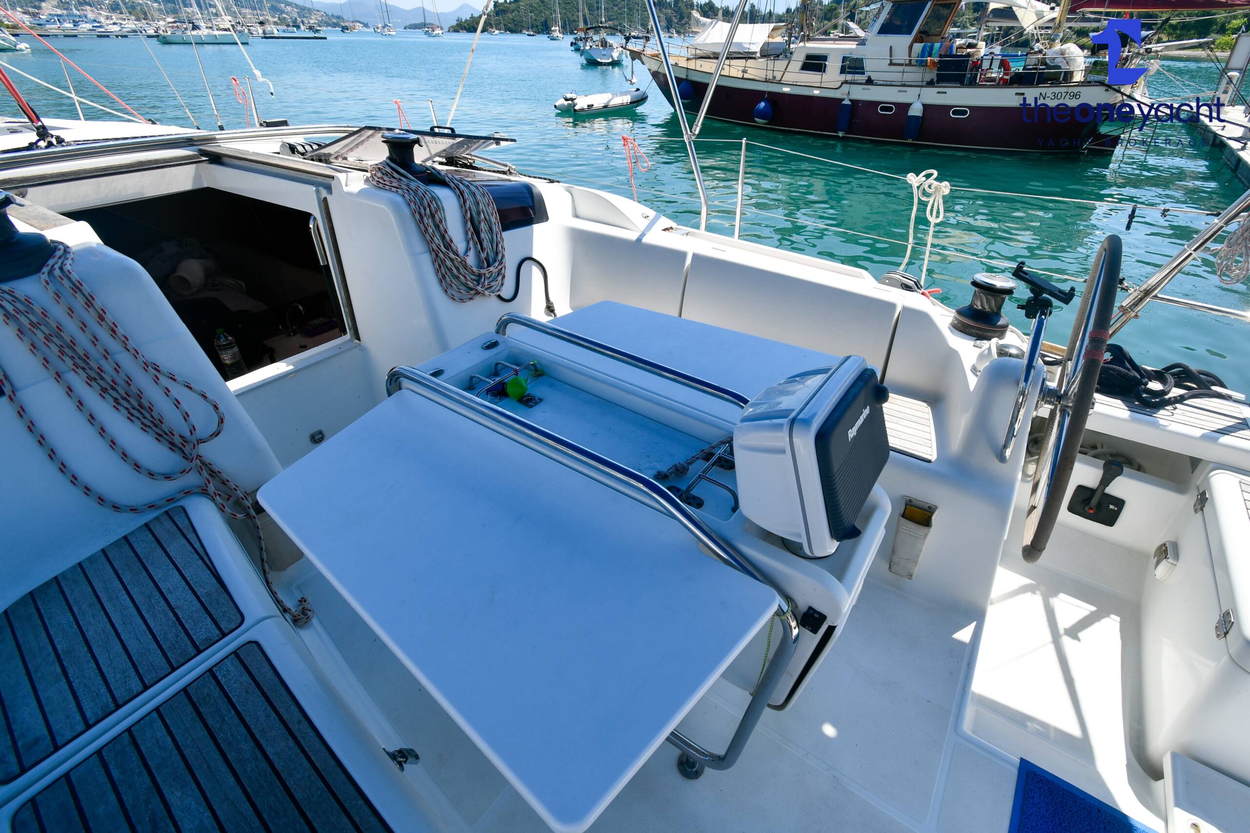 Smile Big features a bright and intelligently arranged interior designed to maximise both comfort and practicality for extended cruising. She offers three spacious double cabins with generous storage throughout, comfortably accommodating family and guests, alongside two well-appointed heads for convenience onboard. The saloon is open, airy, and filled with natural light, providing a welcoming central living area with comfortable seating and dining space for relaxing after a day on the water. Her practical galley is thoughtfully positioned for safe use underway and fitted with ample workspace and storage, while above deck the large cockpit with folding table creates an excellent social space for entertaining, dining, and enjoying time at anchor.