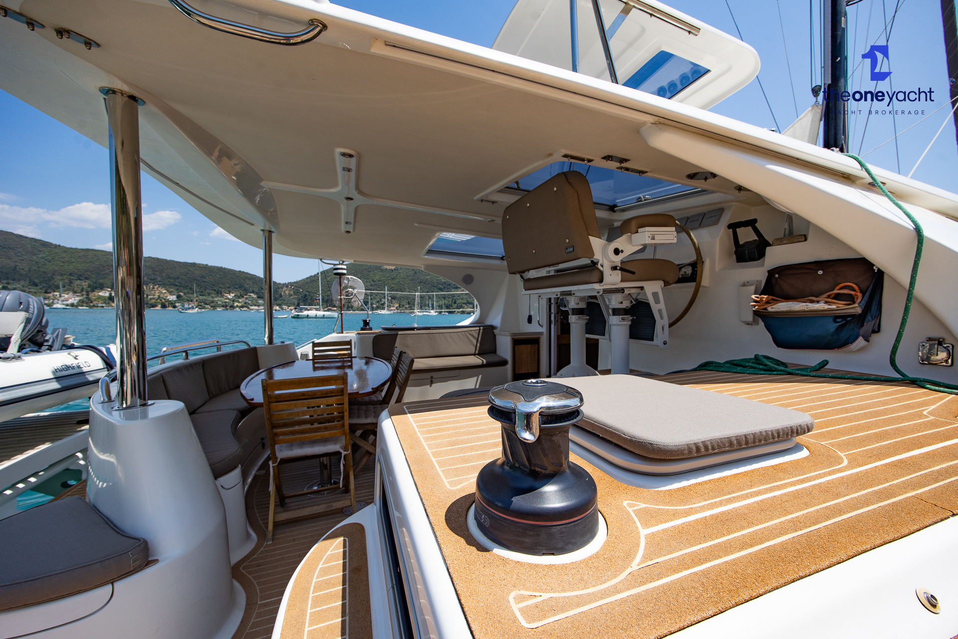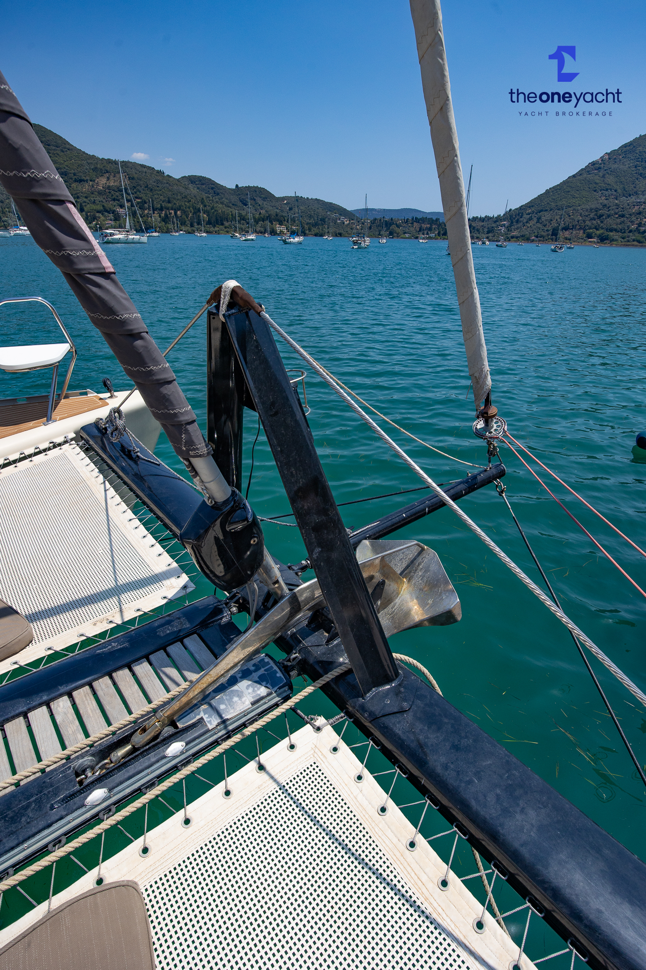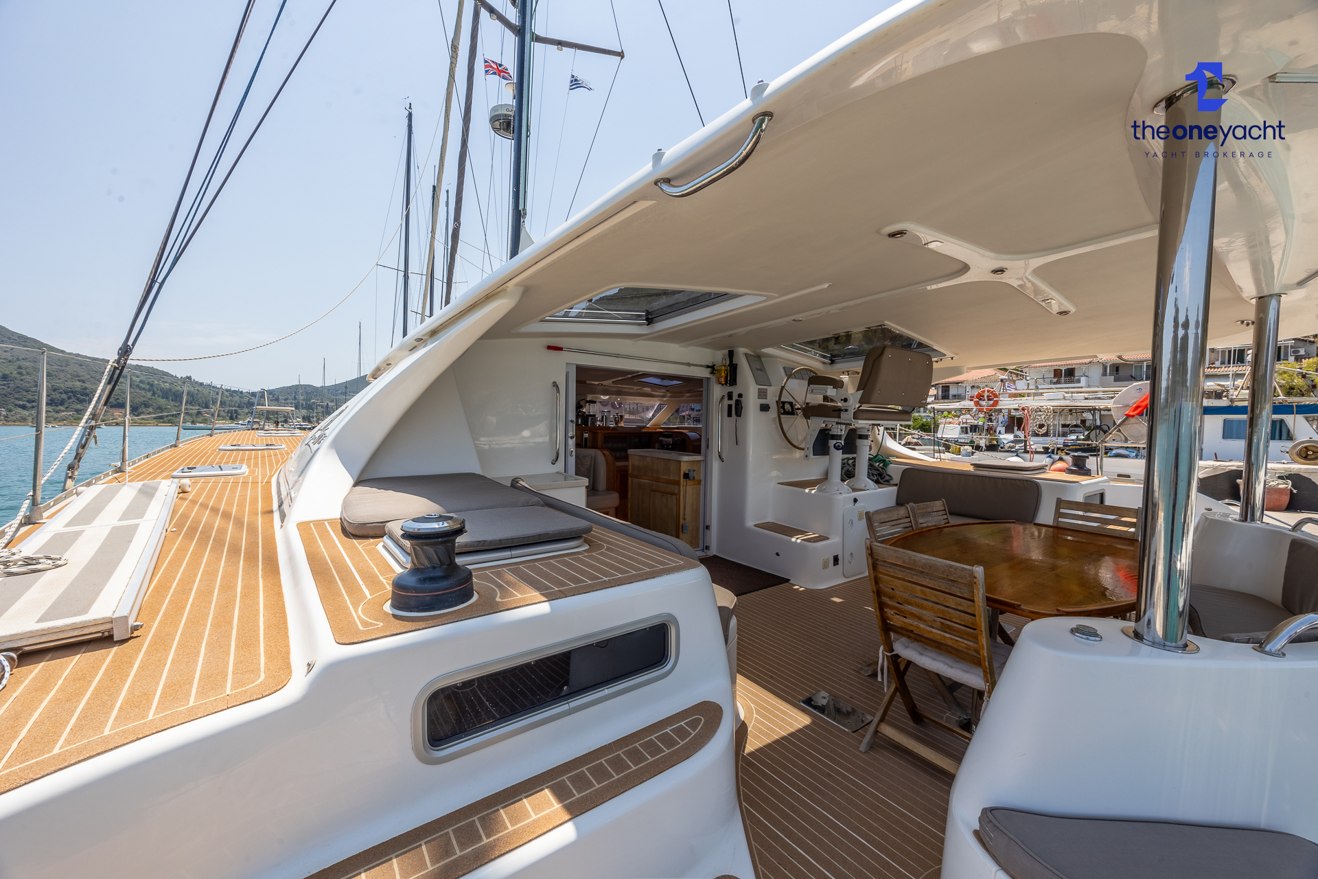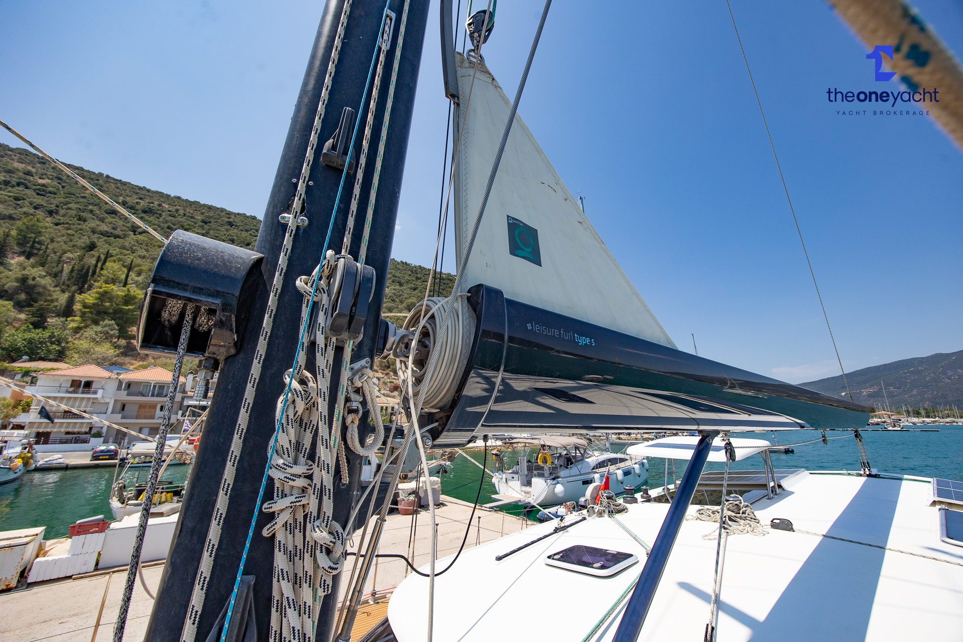 The Knysna 500SE features a premium performance sail package with Leisure Furl Type S in-boom furling system and Hydranet radial mainsail renewed in 2021. Additional sail inventory includes Quantum M Fusion Genoa sails, Code Zero, and asymmetrical spinnaker, offering exceptional versatility and performance across all sailing conditions. Sail handling is supported by twin Harken electric primary winches, additional Harken secondary winches, and premium deck hardware, making sail management highly efficient despite the yacht’s size.