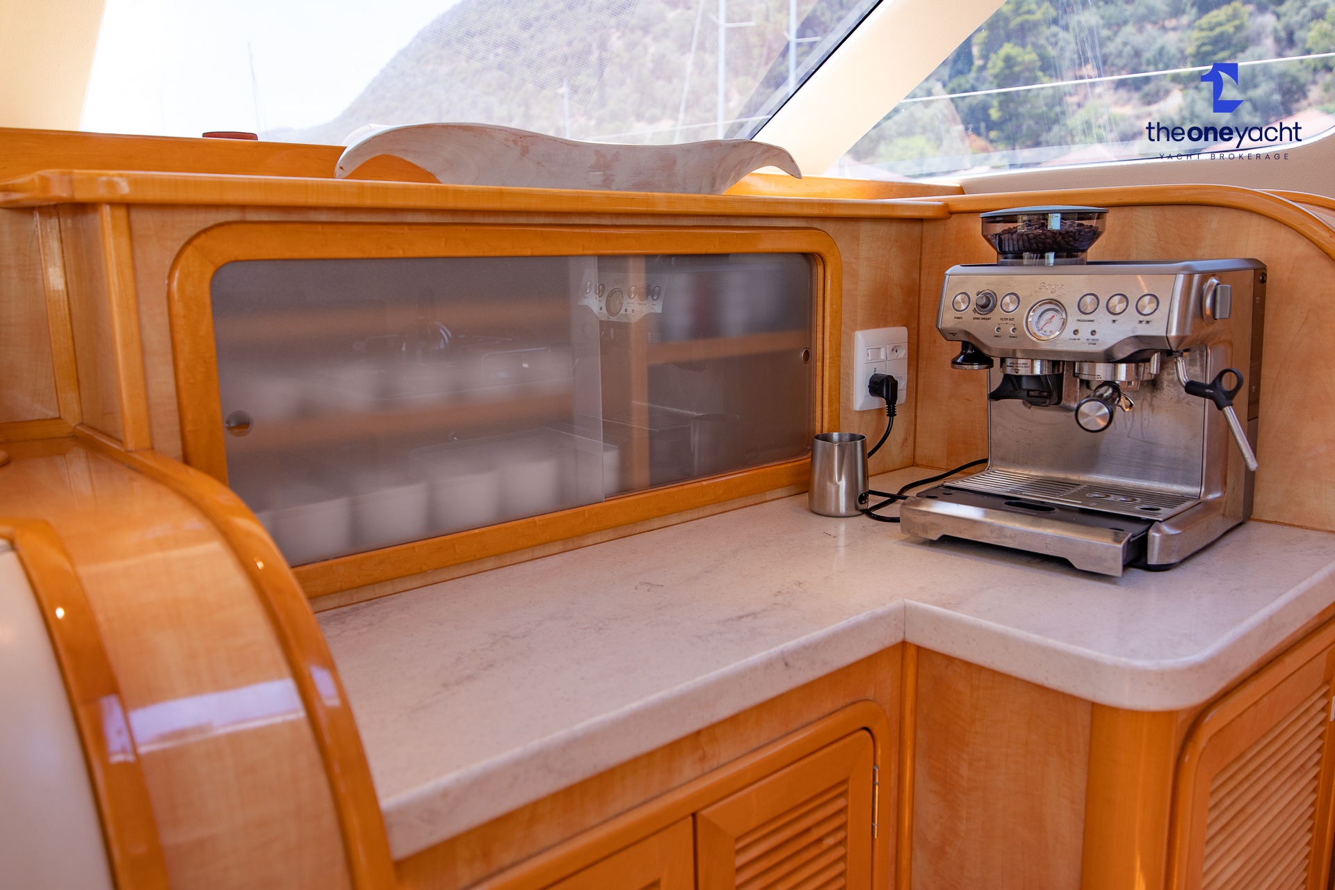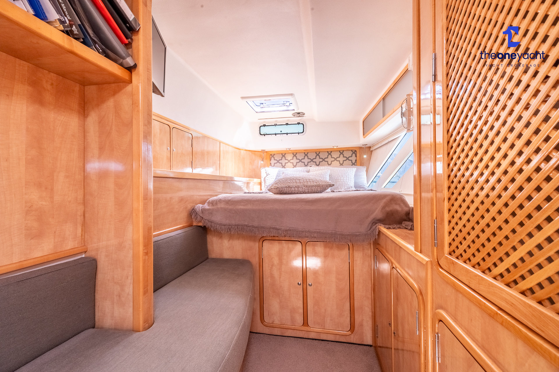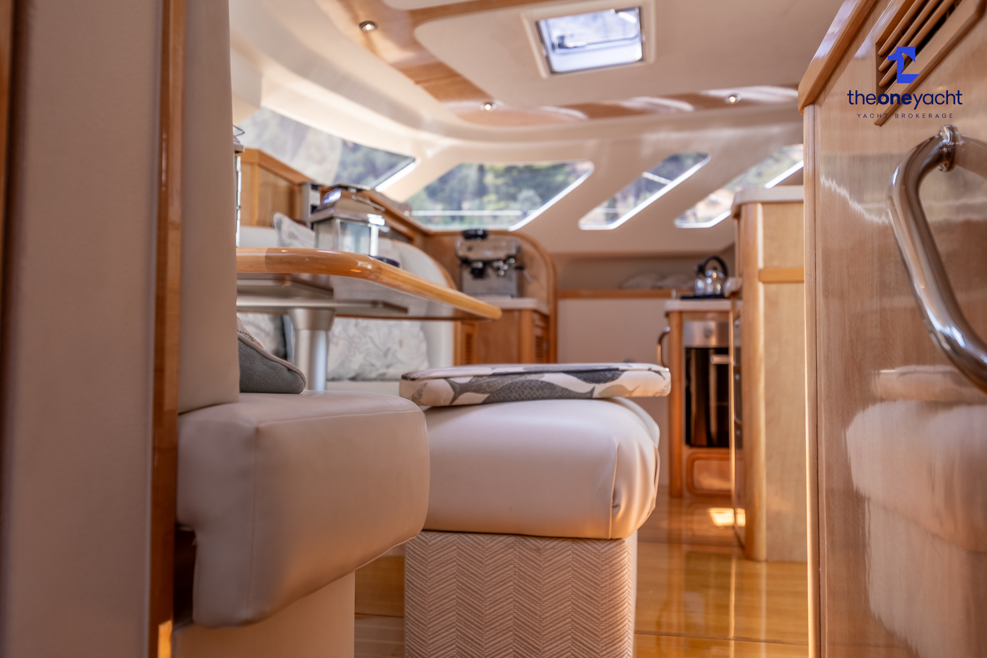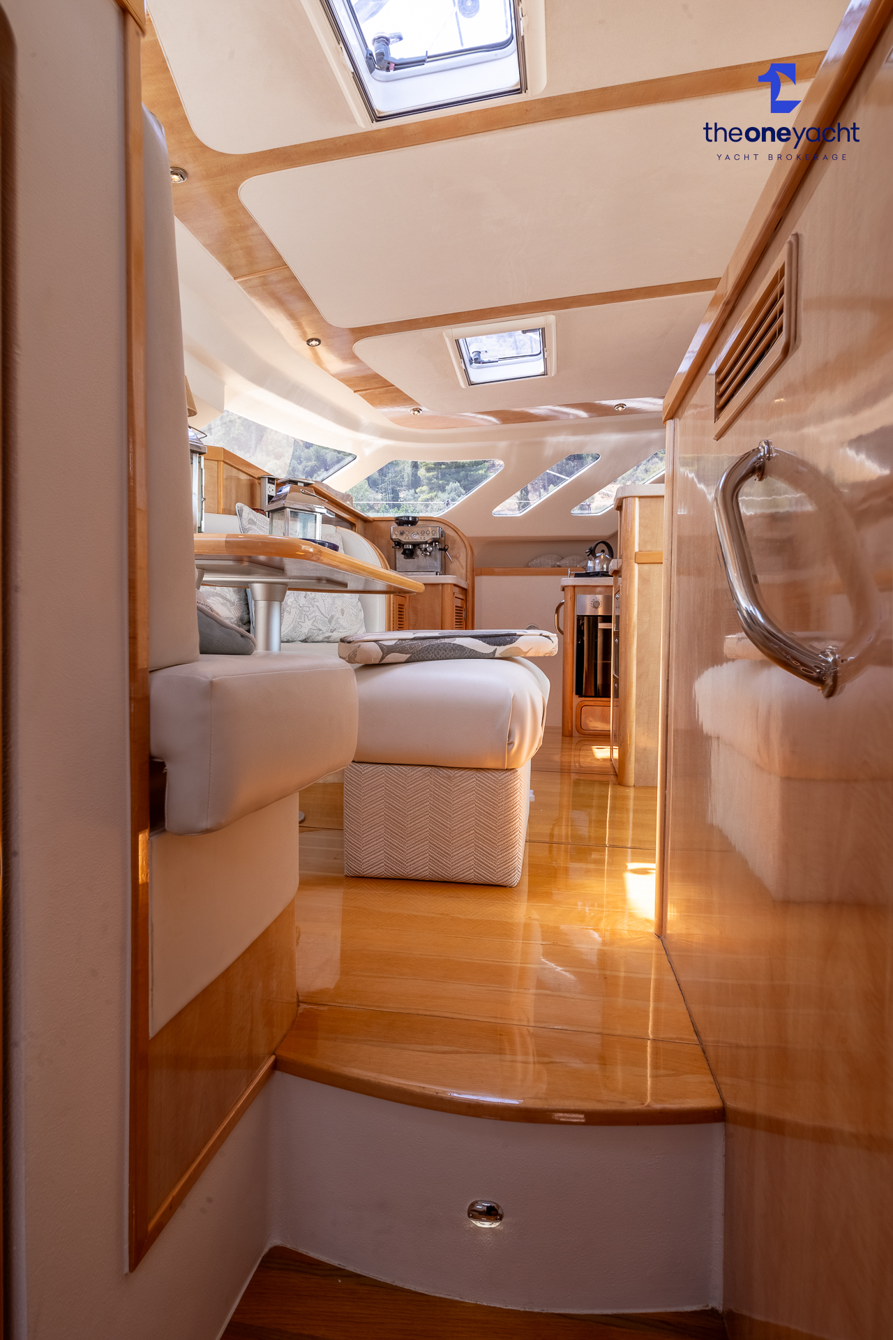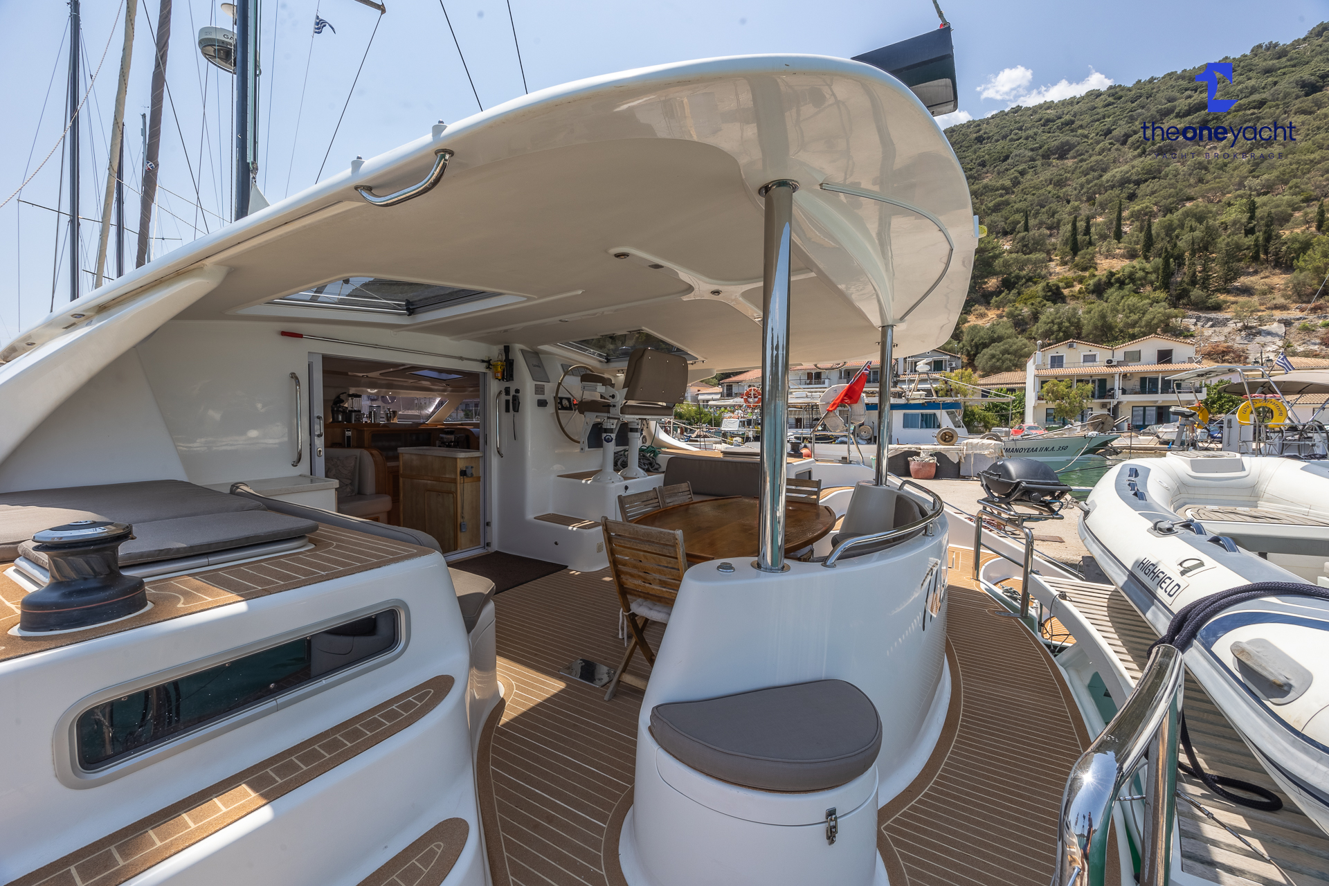 The Knysna 500SE features a premium performance sail package with Leisure Furl Type S in-boom furling system and Hydranet radial mainsail renewed in 2021. Additional sail inventory includes Quantum M Fusion Genoa sails, Code Zero, and asymmetrical spinnaker, offering exceptional versatility and performance across all sailing conditions. Sail handling is supported by twin Harken electric primary winches, additional Harken secondary winches, and premium deck hardware, making sail management highly efficient despite the yacht’s size.